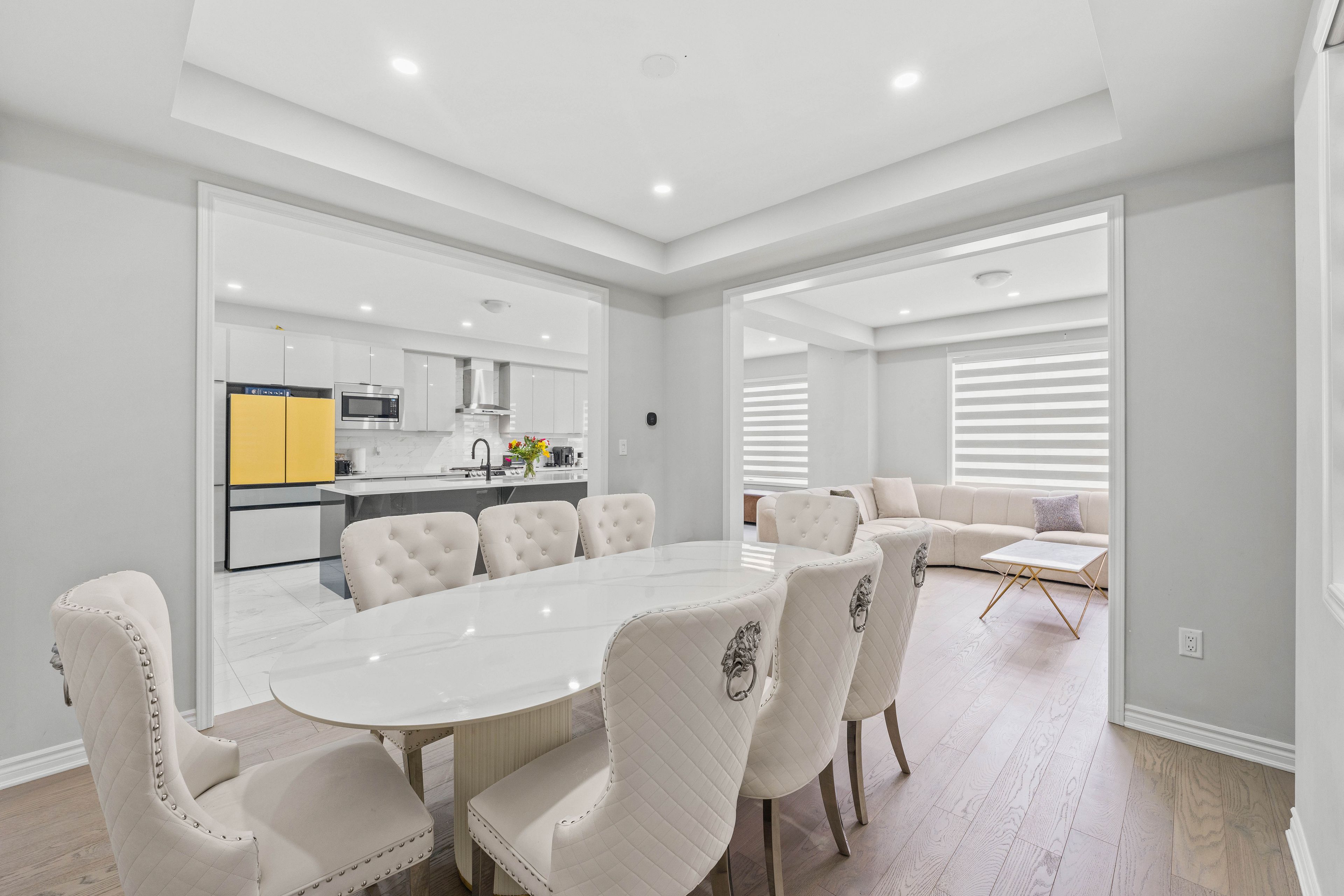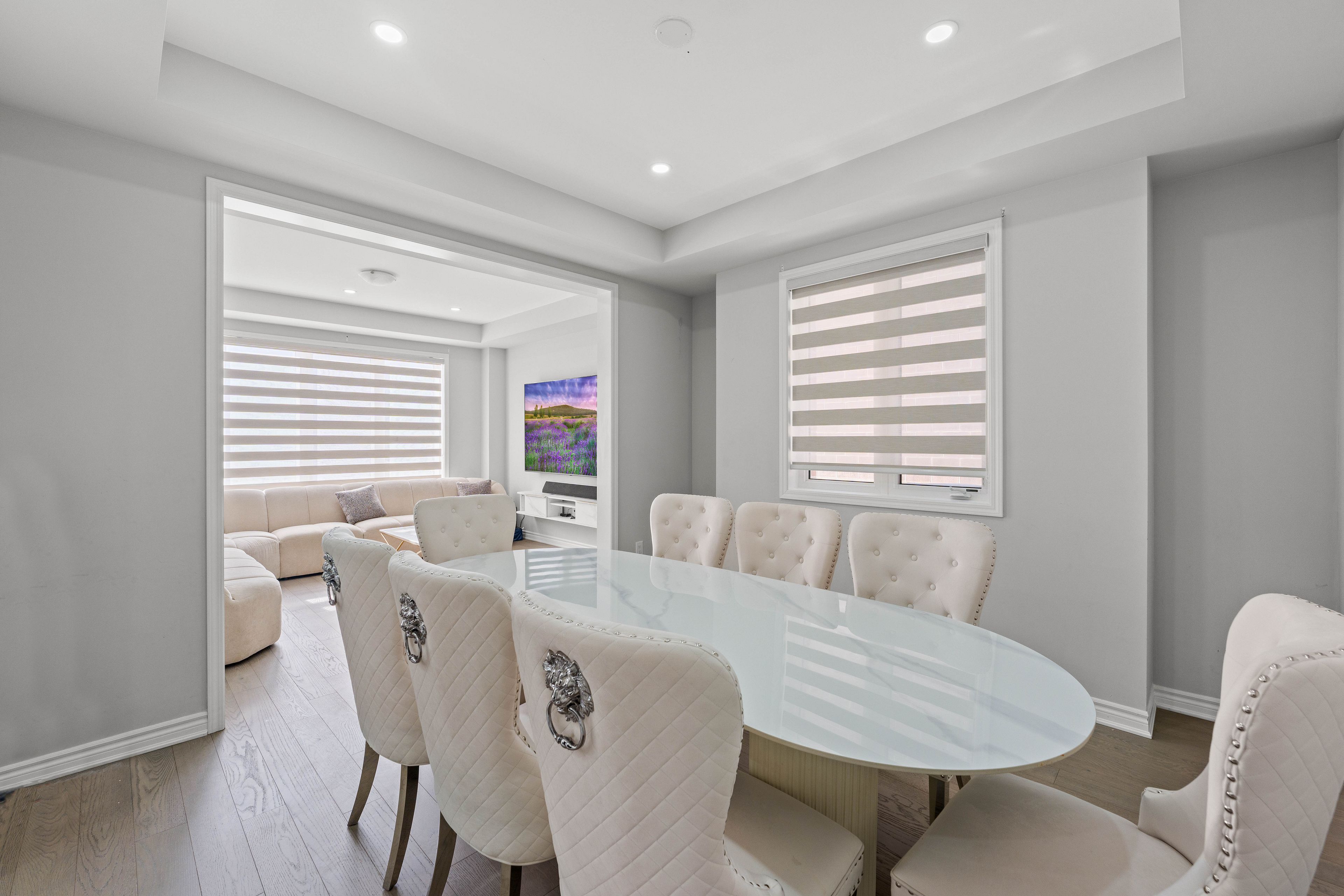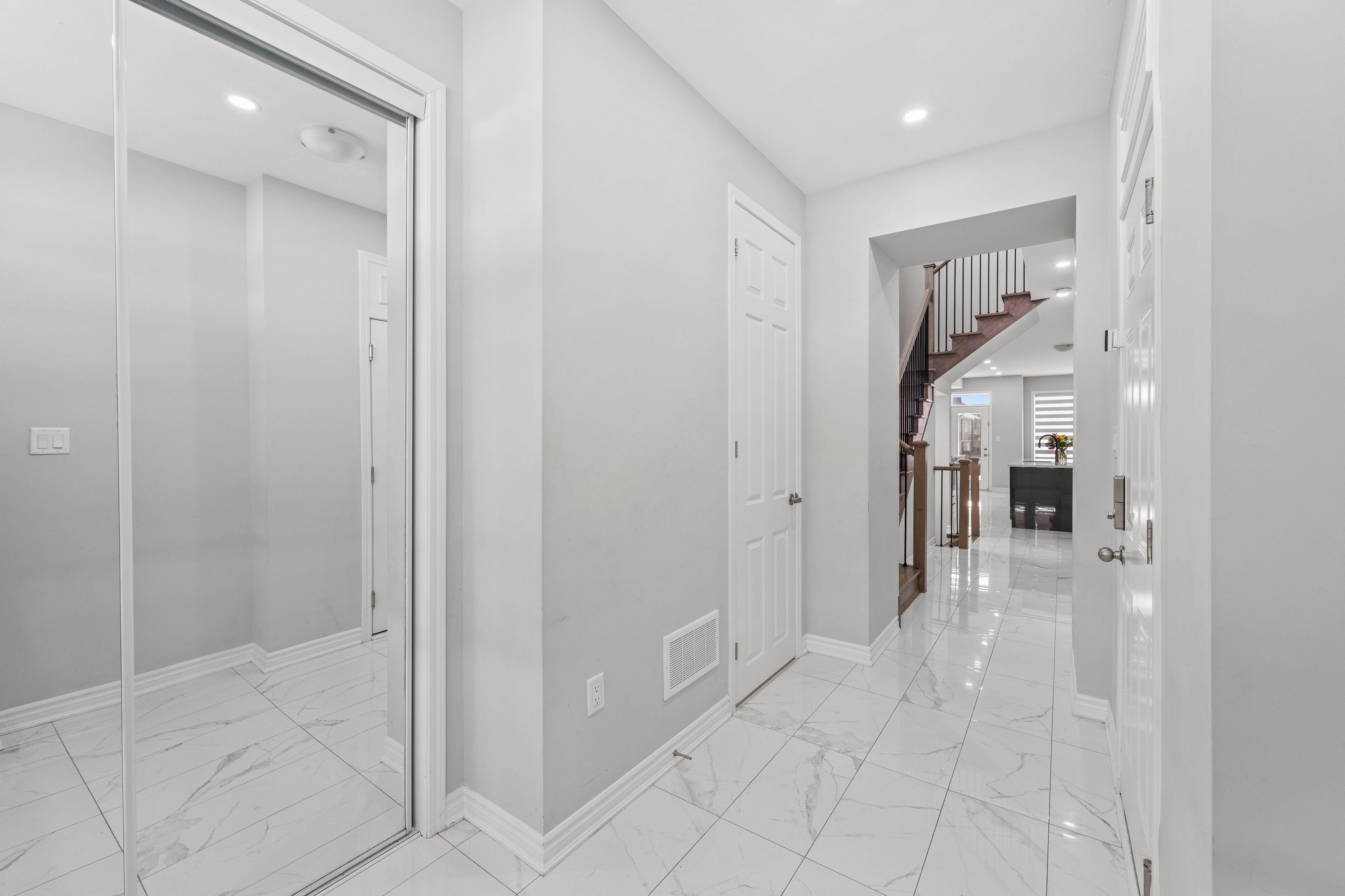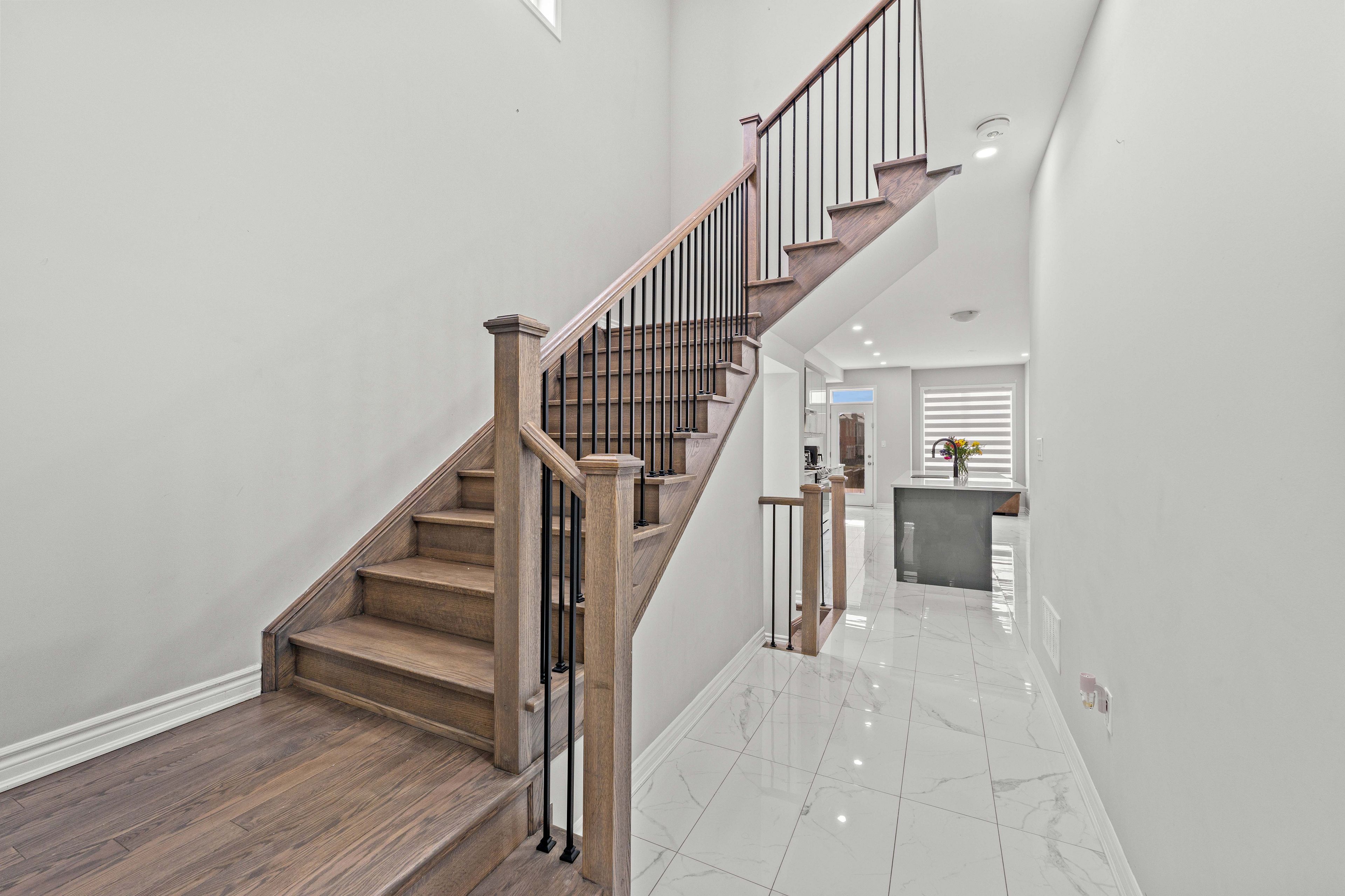Welcome to mattamy's highly sought-after valleyview model in the prestigious north seaton community of whitevale. This beautifully designed detached home offers a double car garage, 4 spacious bedrooms, 3. 5 bathrooms, and 2,691 sq. Ft. Of above ground living space. Thoughtfully crafted with modern finishes and functional design, the main floor features an expansive great room, bright breakfast area, and formal dining space. Premium upgrades include newly installed pot lights and custom window blinds throughout the main level, along with 12" x 24" tile flooring, elegant hardwood floors, oak staircases with metal pickets, smooth ceilings, and oversized windows that fill the home with natural light. The chef-inspired kitchen is equipped with upgraded samsung bespoke/sthainless steel appliances, quartz countertops, and a large centre island perfect for entertaining and everyday living. Upstairs, the luxurious primary retreat features a walk-in closet and a sleek glass-enclosed stand-up shower. A shared bathroom with dual stand alone sinks and granite countertops, along with a convenient upper-level laundry room, completes the second floor. This home comes with the tarion new home warranty, plus additional appliance warranty for added peace of mind. Ideally located just minutes from highways 407, 401, and 412, as well as the pickering go station, offering excellent connectivity for commuters. Walking distance to the proposed new elementary school and surrounded by future-forward community planning, this is a perfect opportunity to own in one of pickering's most desirable new neighbourhoods.