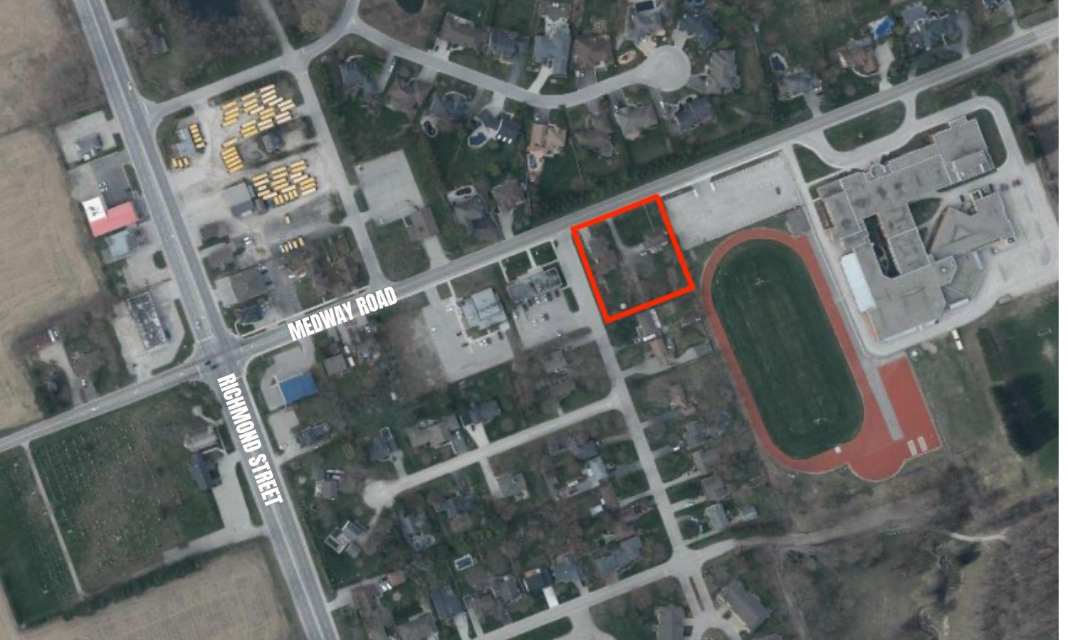 A rare chance to secure infill land in the rapidly growing community of arva, bordering north london. This ideal corner site, providing multiple access points, is currently zoned residential (townhouses) and borders village commercial properties providing potential for alternate uses. Ideally located along the medway road corridor, adjacent to medway high school and blocks away from a major proposed development adding approximately 900 residential units to the area. Now is the time to invest in a community showing strong momentum. Great location, solid potential-contact us for all inquiries.