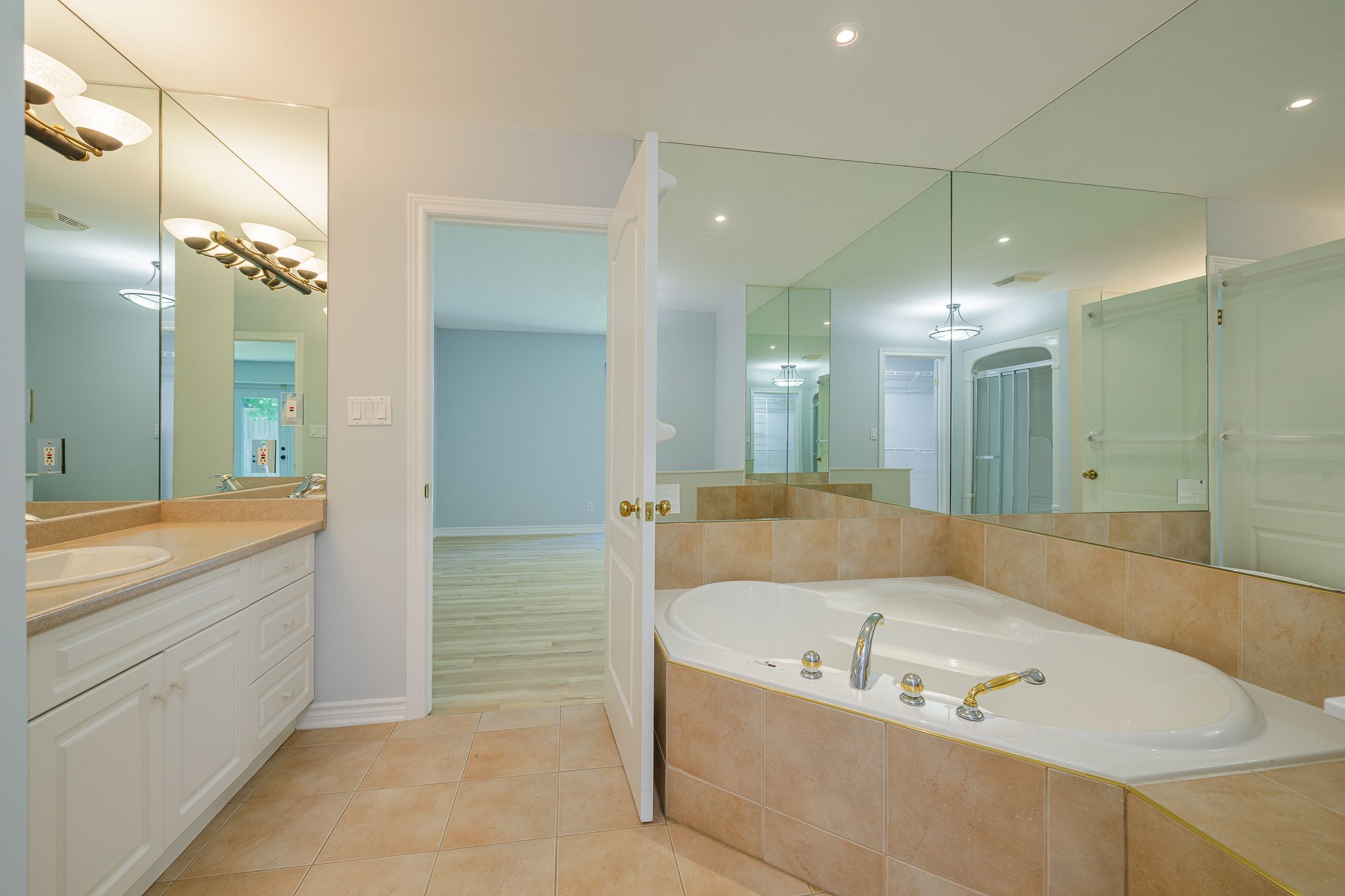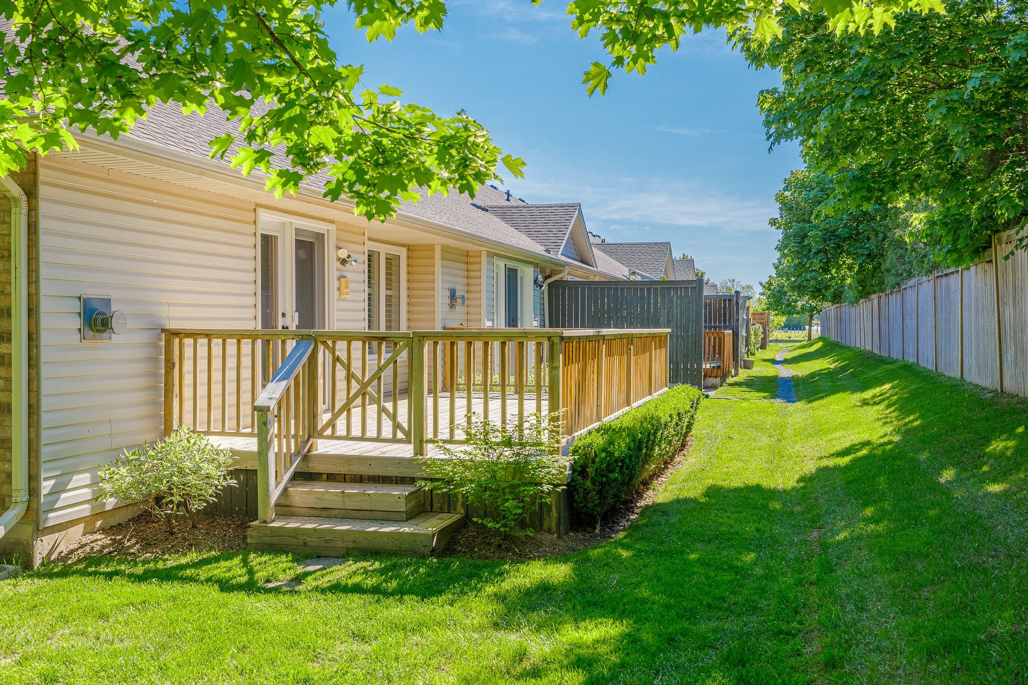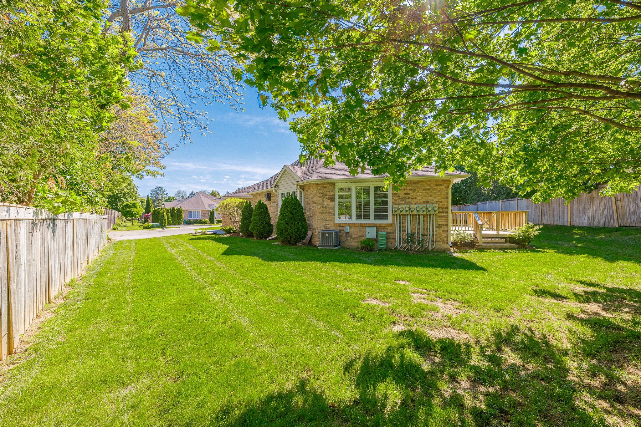 Welcome to glen brooke estates, a quiet enclave of meticulously maintained centrally located bungalow townhomes. This desirable end unit offers 1360 sf of bright open plan living space. Enter the foyer and you are greeted by a unique kitchen with plenty of storage and prep space with all solid custom maple cabinets. There is an expansive living area with vaulted ceilings and gas fireplace. The living area has a walkout to the a large private deck and yard. The huge primary bedroom has walkout to the back yard and a gas fireplace with a walk-in closet and a private 4-piece ensuite. There is also a convenient 2-piece bathroom and laundry just off the kitchen. The large full two car garage with has direct access to the the living area. The lower level is unfinished and provides opportunity to add additional living space and all of your storage needs.. Great opportunity for those looking to downsize and simplify living while having access to all the amenities and what niagara has to offer.