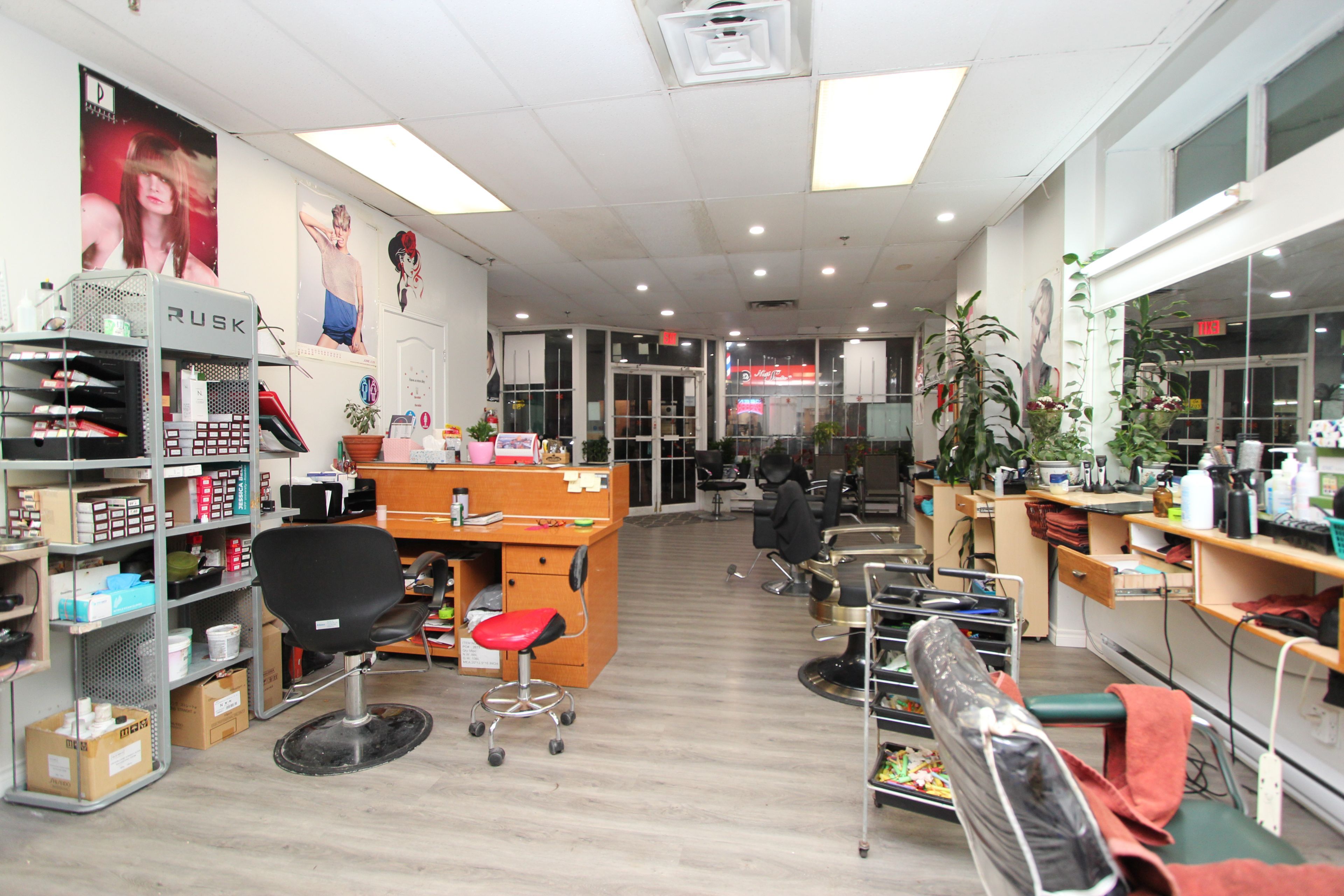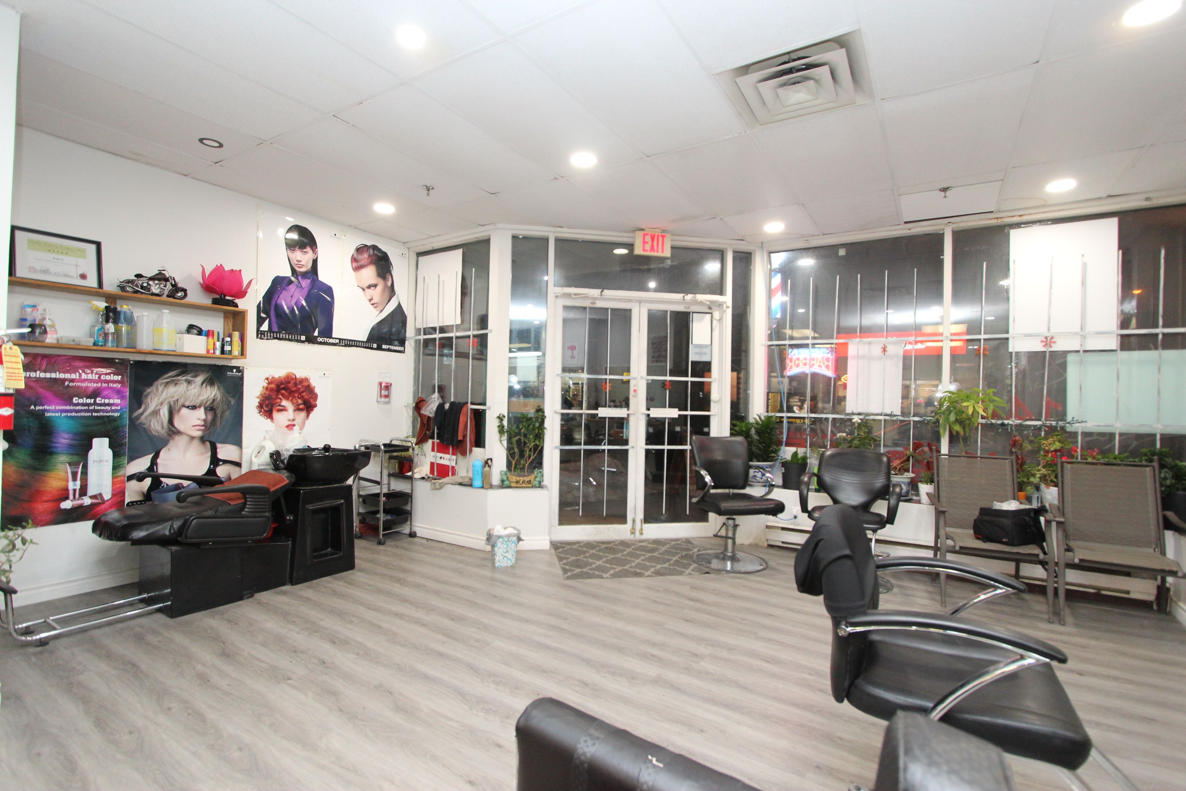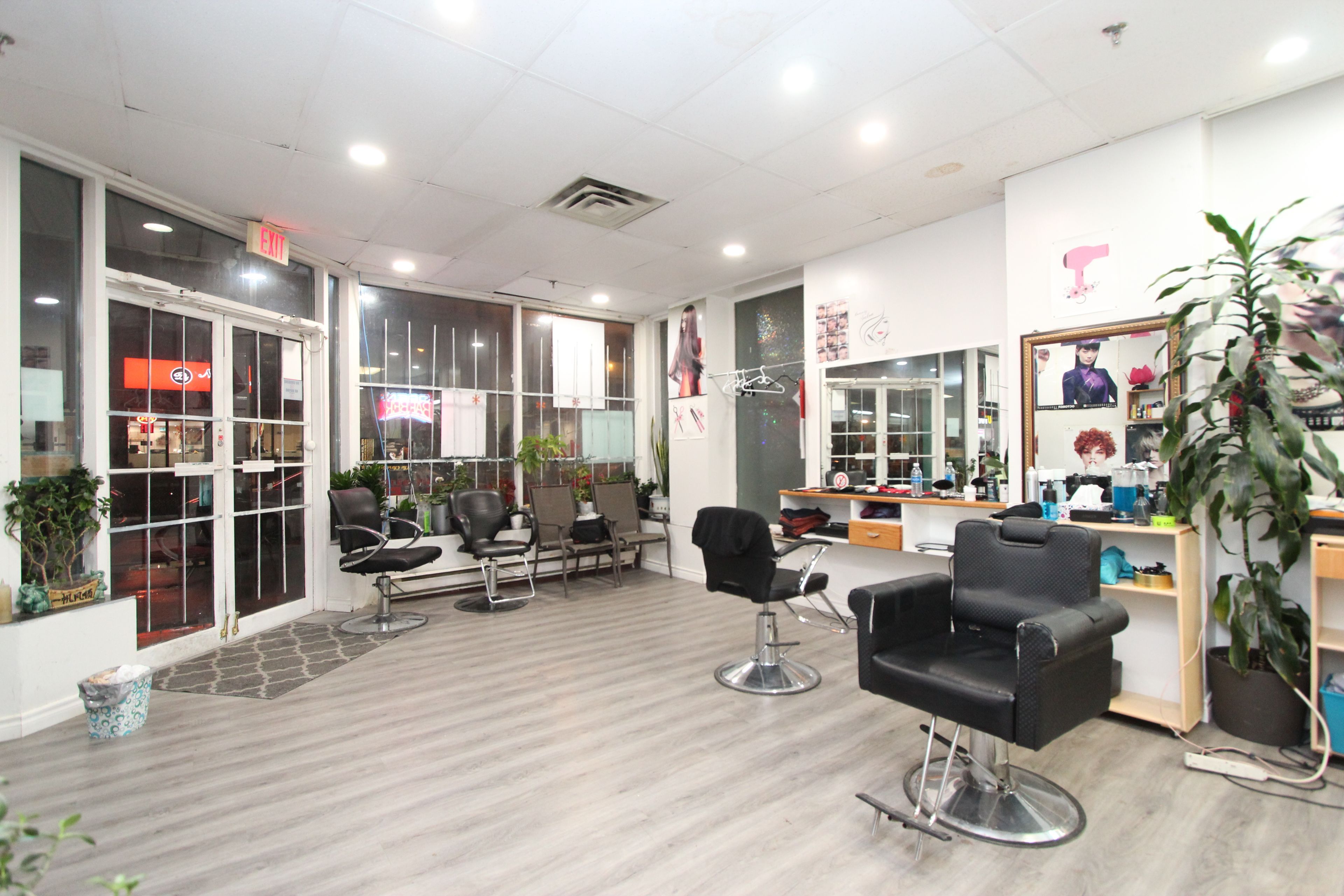 Excellent location near major street, easy access, prominent location, wider frontage, appoxi. 900 square feet, currently used as a hair salon. Spacious layout, bright, large windows, double entrance doors, two rooms at the back, 1 washroom. This is a lease assignment.