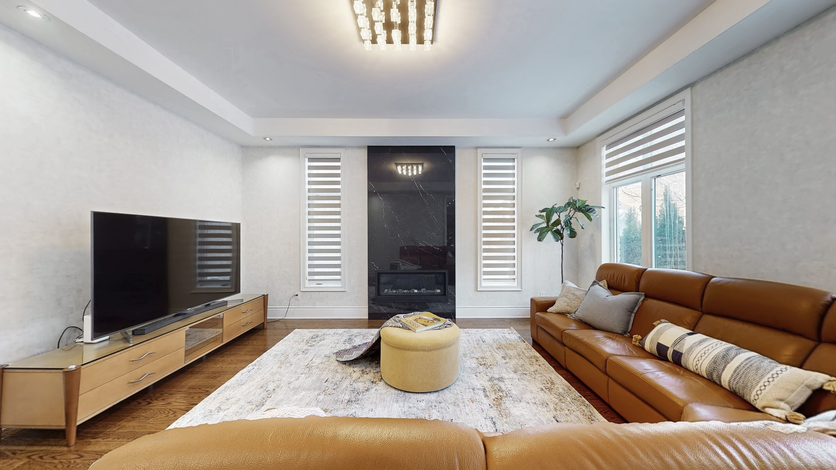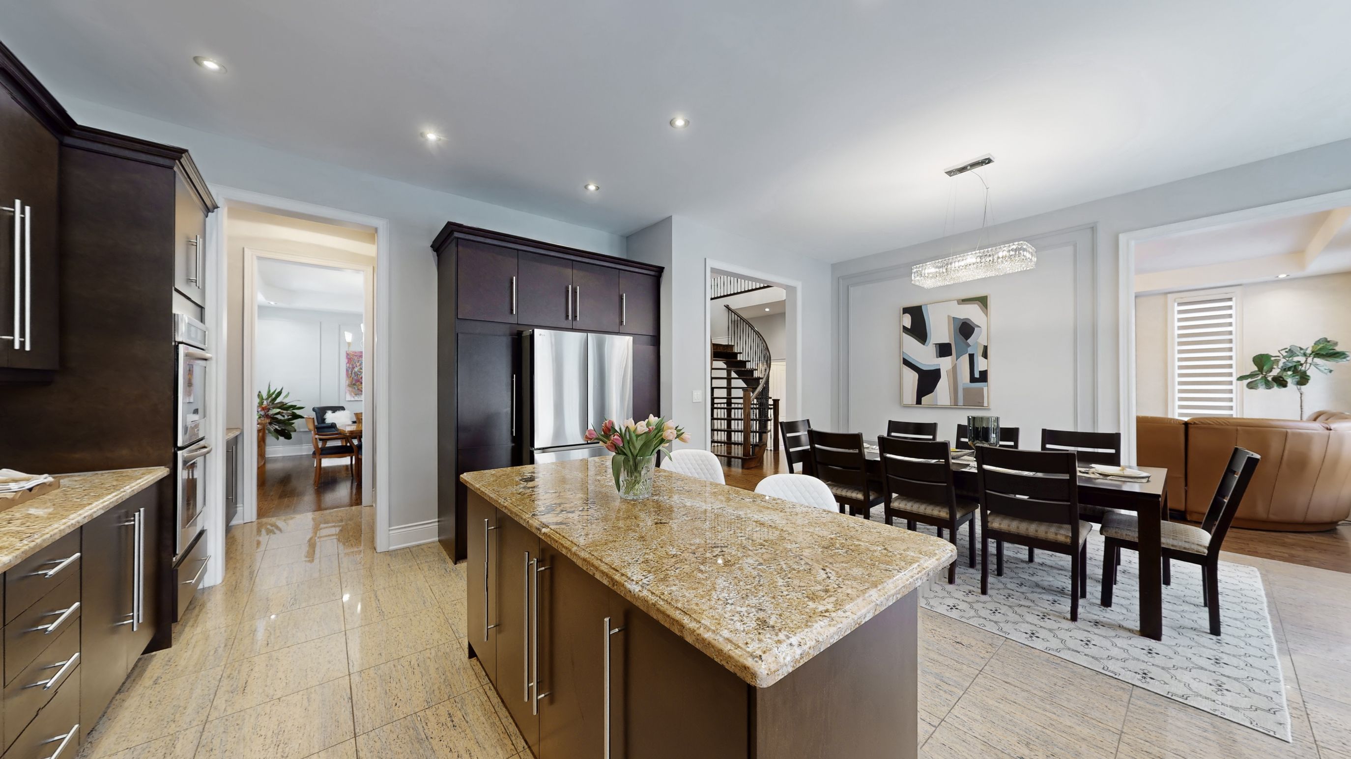 Welcome to this exceptional italian custom-built 5 bedroom residence in the prestigious mill pond community. Meticulously maintained by its original owner, this magnificent home showcases timeless craftsmanship and elegant finishes throughout. Striking south-facing stucco exterior with extra-wide double garage and 3-car driveway. Bright main floor with 9 ft ceilings, rich hardwood floors, wainscoting and designer wallpaper. Functional, well-designed layout featuring private office with double french doors, elegant living/dining areas, a chef-inspired kitchen with gas stove, smeg range hood, walk-in pantry and large centre island. Cozy family room with high-end stone fireplace wall - perfect for entertaining. Over $100k invested in professionally stone-paved backyard offering privacy and outdoor enjoyment. Upper level features 5 generous size bedrooms ,two bedrooms with ensuites. Primary retreat includes heated spa-like ensuite and custom walk-in closet. Convenient upper-level laundry with miele washer/dryer. Upgraded zebra blinds throughout. Updates: furnace (2020), hwt (2024), washer (2025). Located on a prestigious street close to top school : st. Theresa catholic high school, carville community centre, parks, go station and all amenities. See 3d walk through