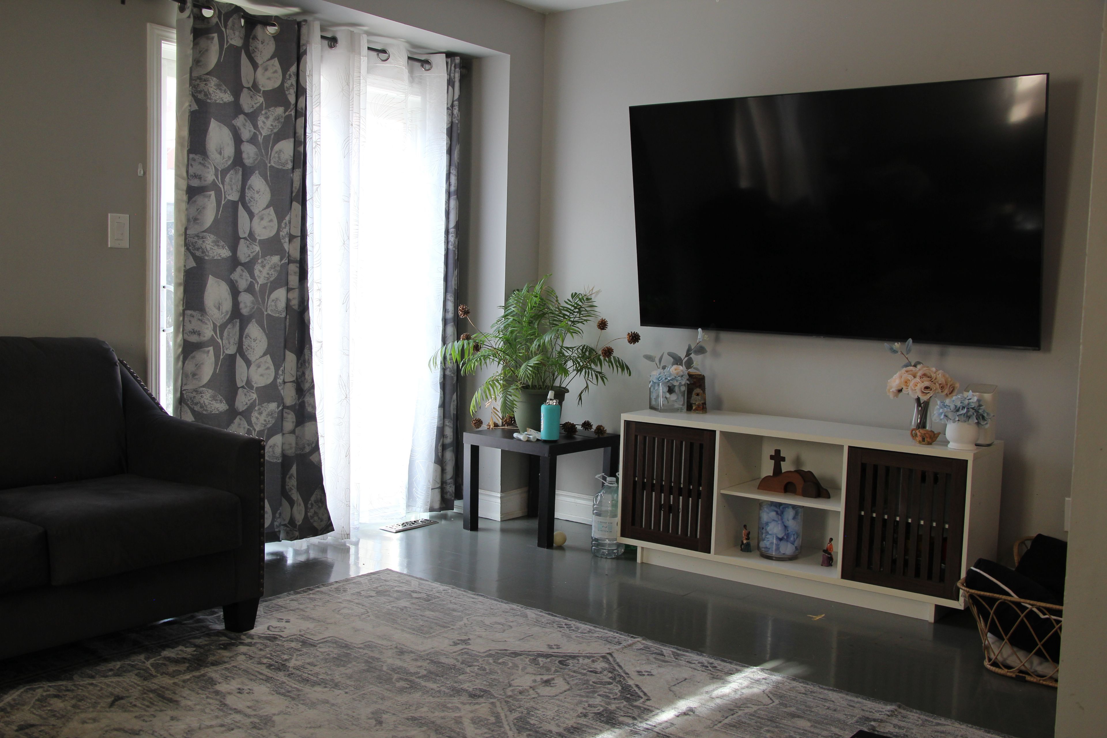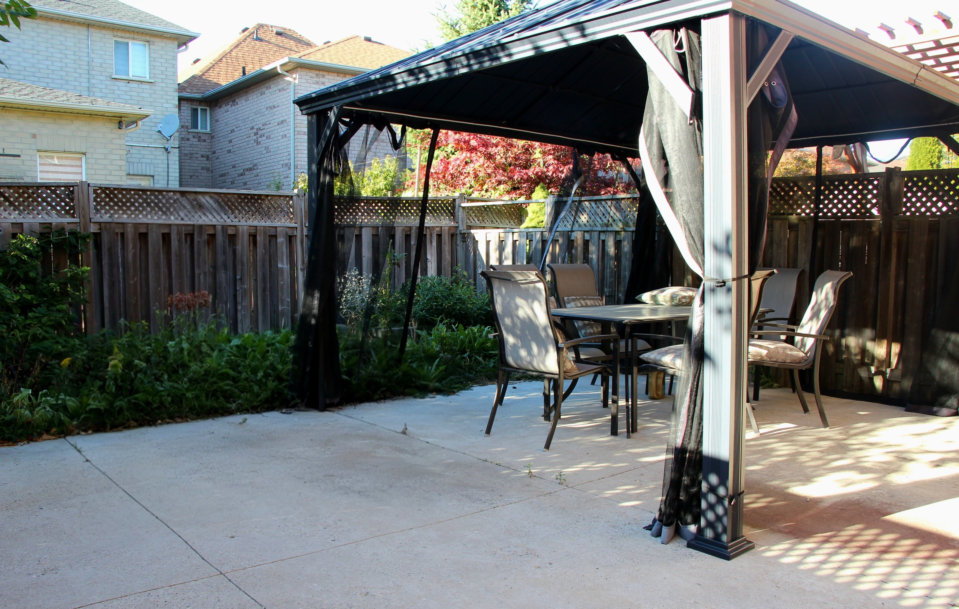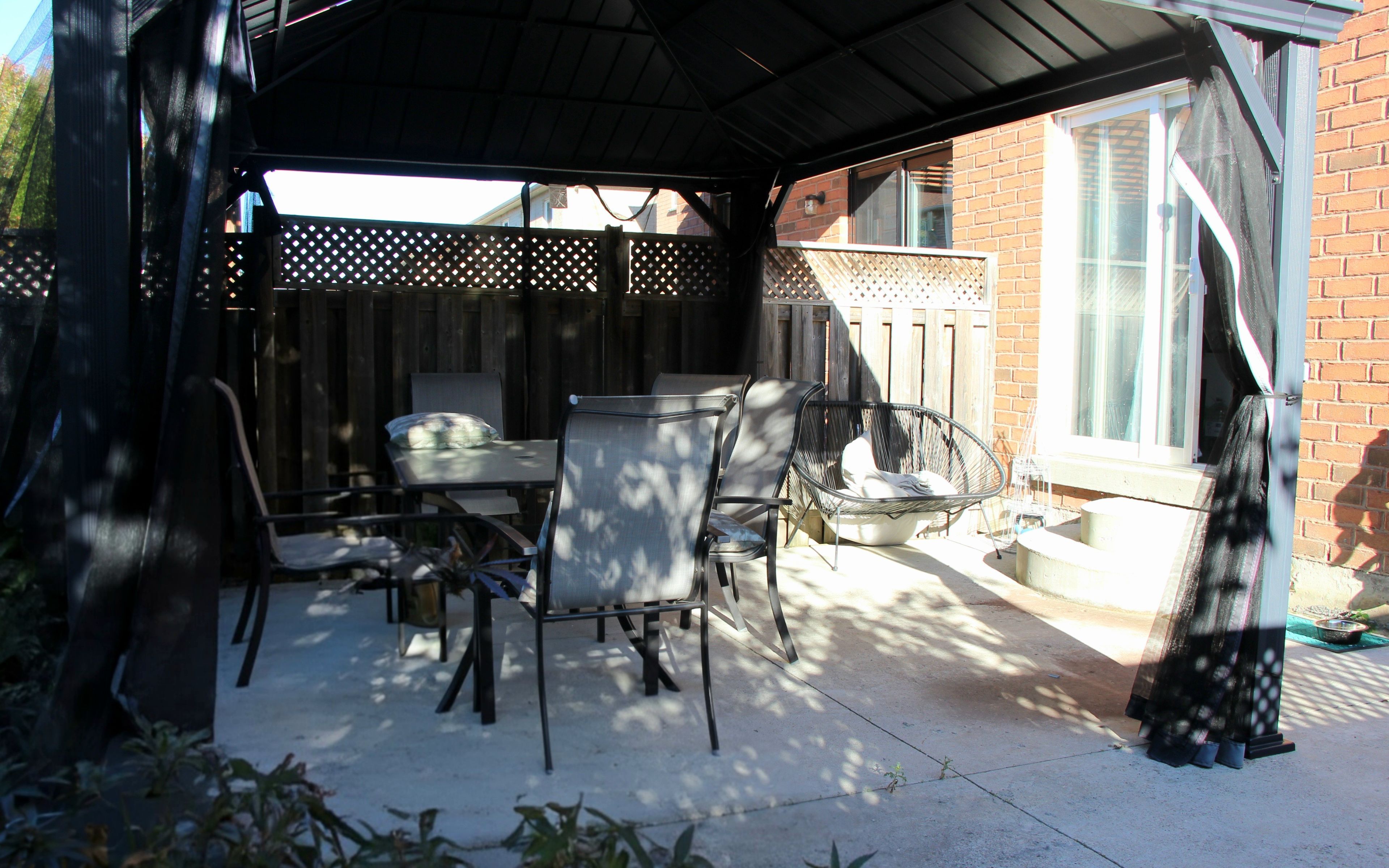 Beautiful all-brick semi-detached home with 4 bedrooms and 4 bathrooms, including a full bath in the finished basement. Modern open-concept layout with no carpet and hardwood flooring. Updated kitchen with quartz countertops and large centre island. 4-car driveway plus 1-car garage with built-in entrance. Basement features a separate side entrance and space for a full bedroom with bathroom setup. Gazebo right outside sliding patio glass door. Newer washer and dryer, freshly painted, oak staircase, and ready to move in. Close to schools, parks, rec centre, shopping, and transit.