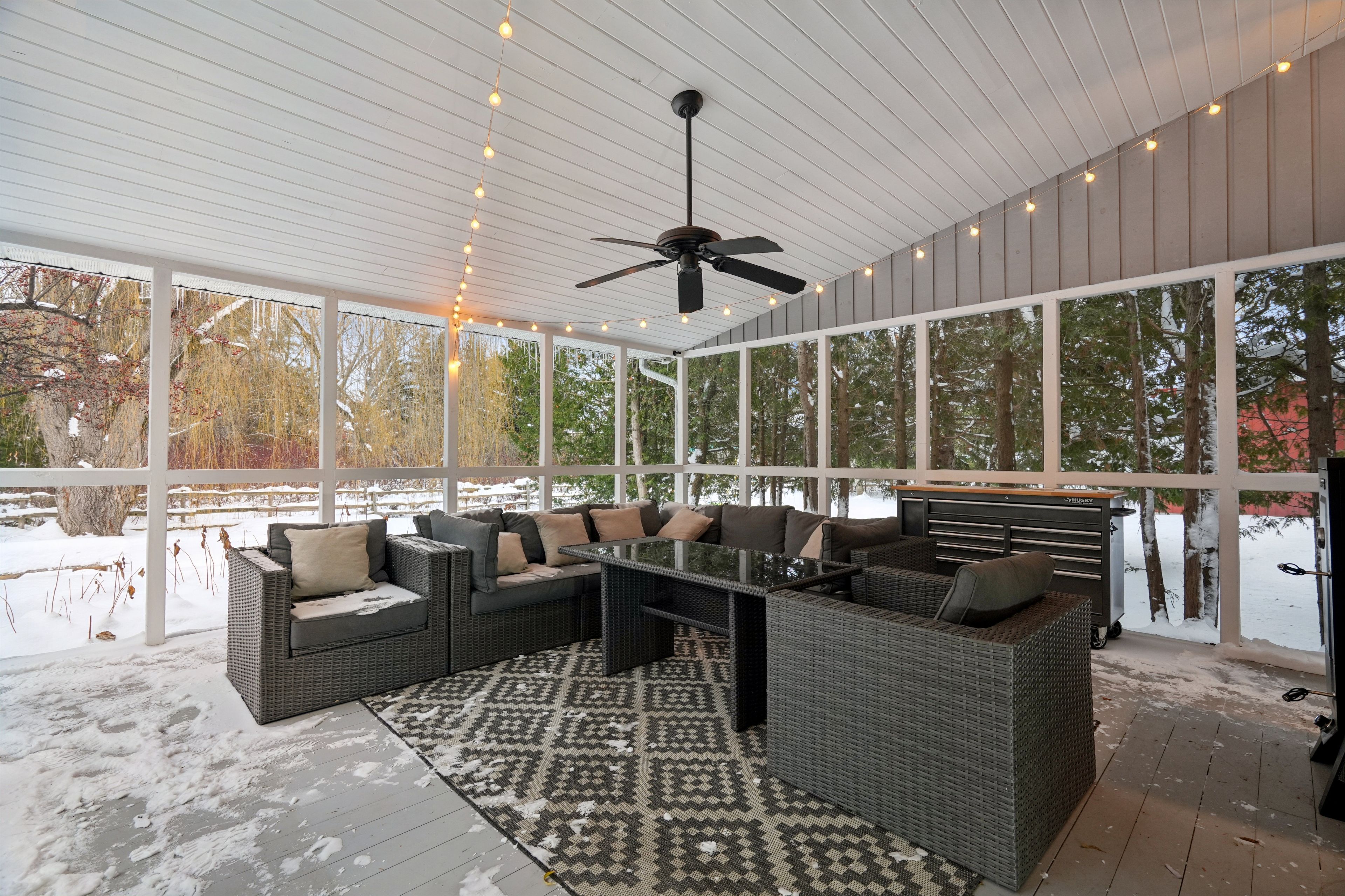 Tucked into one of the most walkable, family-friendly pockets of the blue mountains, this beautifully updated 2-storey home delivers the rare combination of ski-hill views, privacy, and everyday livability. From the moment you arrive, the double-wide driveway offers parking for 6 vehicles, making hosting friends and family effortless. Inside, the home opens to warm, light-filled living spaces designed for connection and comfort. The main living room frames views of the blue mountain ski hills, a daily reminder that adventure is right outside your door. A separate sitting room overlooks the expansive backyard, while the family room features a cozy fireplace and a cleverly integrated murphy bed. The kitchen was updated in 2024, showcasing quartz countertops, modern cabinetry, pot lighting, and a clean, timeless aesthetic. Whether it's weekday breakfasts or après-ski gatherings, this kitchen anchors the home beautifully. Upstairs, four well-proportioned bedrooms provide space for growing families or weekend guests. The primary suite offers calm and comfort, while 2. 5 bathrooms ensure smooth mornings and relaxed hosting. The finished basement adds another layer of lifestyle value, with a fireplace, laundry area, storage, and a private sauna. The basement was professionally waterproofed in 2025 and includes a new drainage system and sump pump. Outdoor living is just as compelling. A screened-in porch extends the living space and invites long summer evenings, while the 60 x 114 ft lot offers a large yard with no immediate rear neighbours. Major updates include a roof in 2020, air conditioning in 2020, a new furnace in 2025, and an on-demand water heater, making this home as efficient as it is inviting. Located within walking distance to blue mountain village, you're moments from skiing, snowboarding, hiking, restaurants, cafés, shops, and year-round entertainment. This is a home built for families who love the outdoors but appreciate refined comfort at the end of the day.