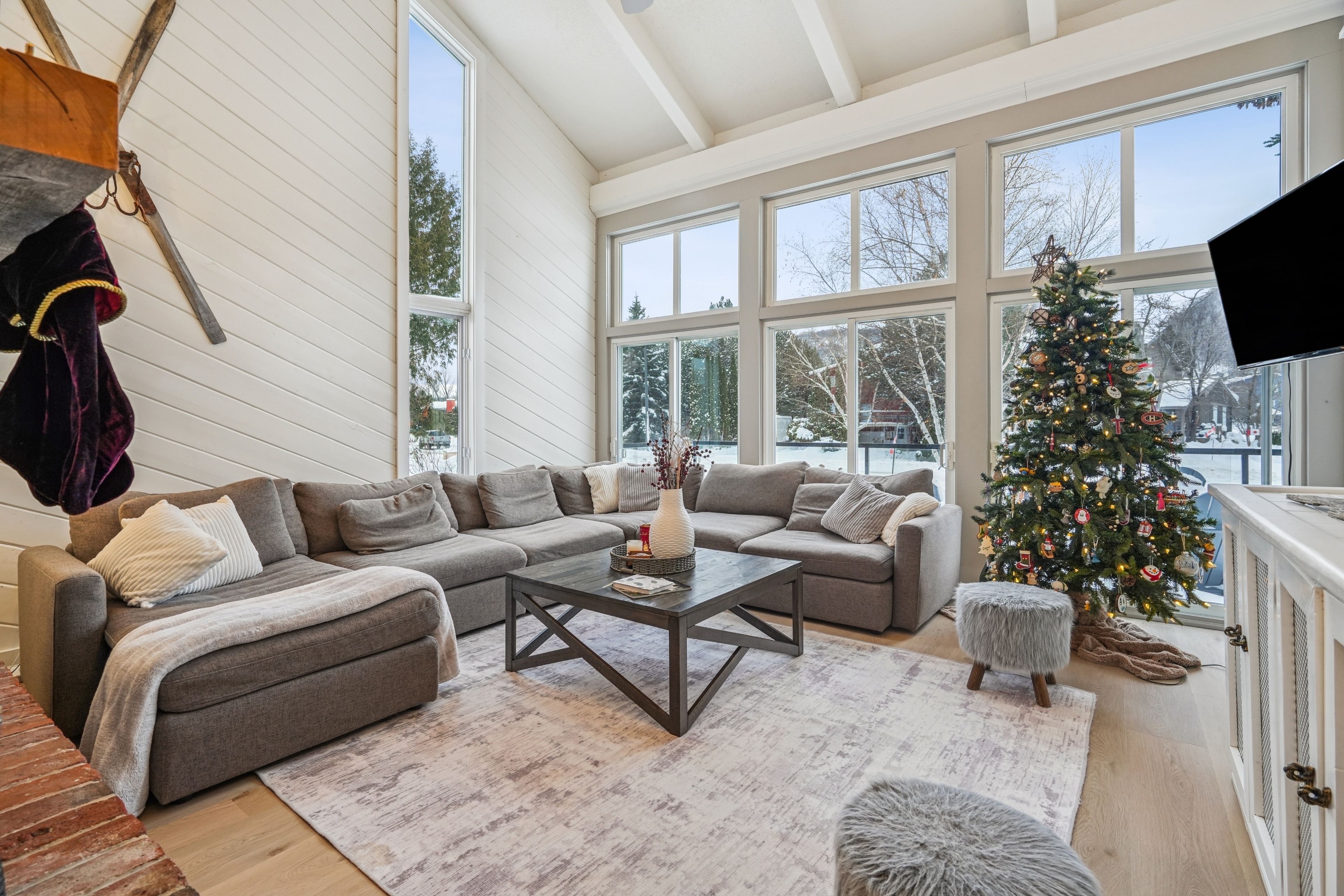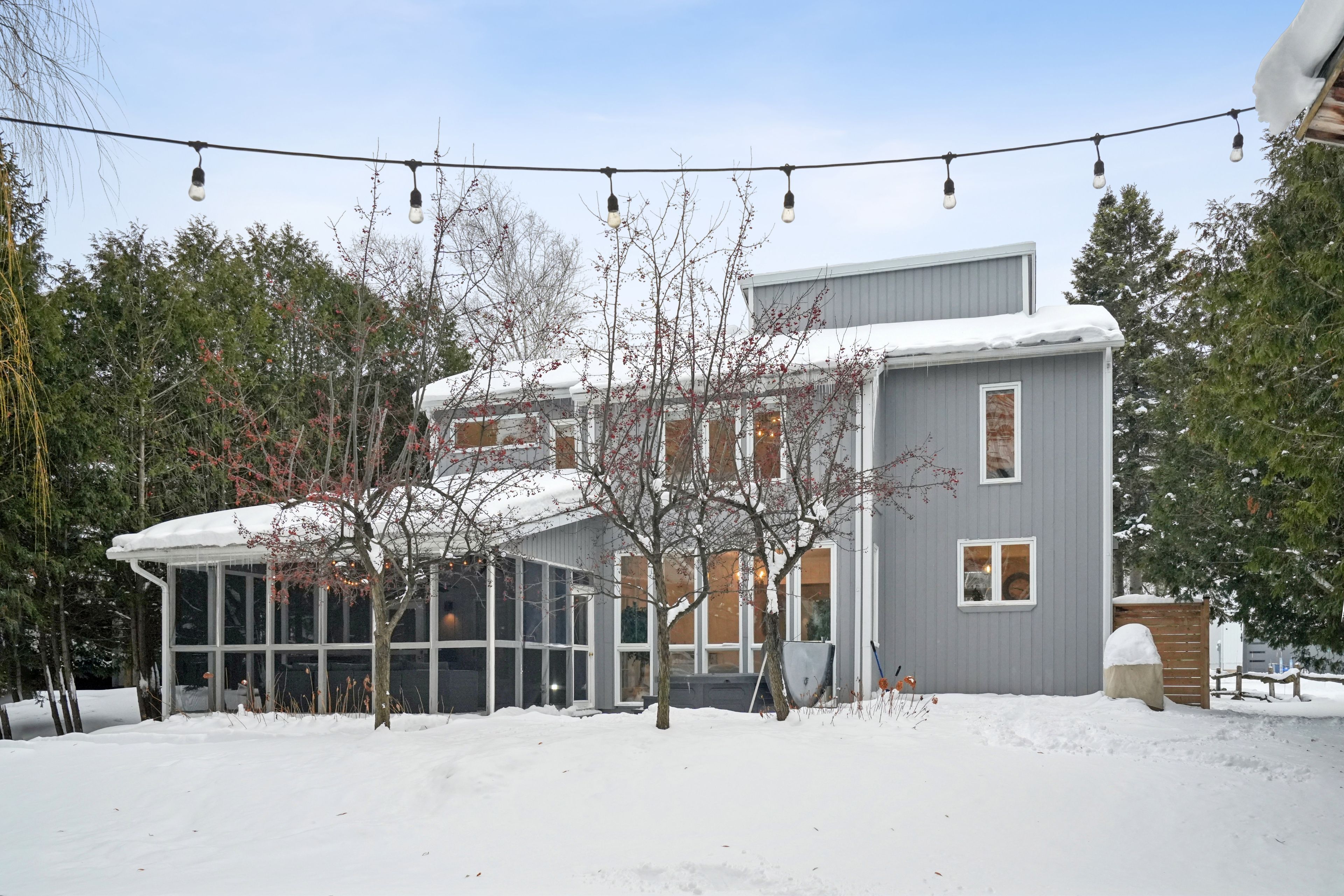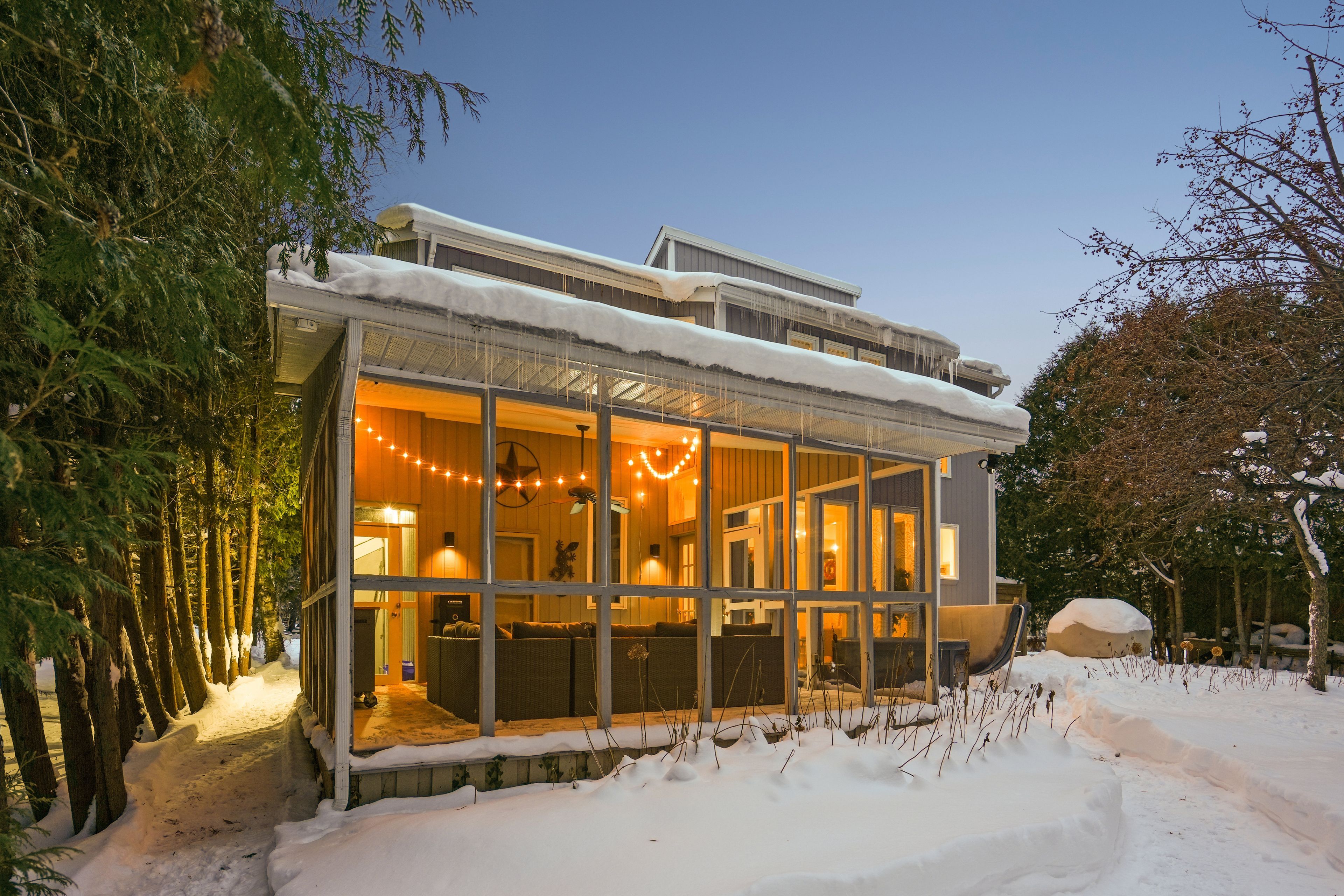 Tucked into one of the most walkable, family-friendly pockets of the blue mountains, this beautifully updated 2-storey home delivers the rare combination of ski-hill views, privacy, and everyday livability. From the moment you arrive, the double-wide driveway offers parking for 6 vehicles, making hosting friends and family effortless. Inside, the home opens to warm, light-filled living spaces designed for connection and comfort. The main living room frames views of the blue mountain ski hills, a daily reminder that adventure is right outside your door. A separate sitting room overlooks the expansive backyard, while the family room features a cozy fireplace and a cleverly integrated murphy bed. The kitchen was updated in 2024, showcasing quartz countertops, modern cabinetry, pot lighting, and a clean, timeless aesthetic. Whether it's weekday breakfasts or après-ski gatherings, this kitchen anchors the home beautifully. Upstairs, four well-proportioned bedrooms provide space for growing families or weekend guests. The primary suite offers calm and comfort, while 2. 5 bathrooms ensure smooth mornings and relaxed hosting. The finished basement adds another layer of lifestyle value, with a fireplace, laundry area, storage, and a private sauna. The basement was professionally waterproofed in 2025 and includes a new drainage system and sump pump. Outdoor living is just as compelling. A screened-in porch extends the living space and invites long summer evenings, while the 60 x 114 ft lot offers a large yard with no immediate rear neighbours. Major updates include a roof in 2020, air conditioning in 2020, a new furnace in 2025, and an on-demand water heater, making this home as efficient as it is inviting. Located within walking distance to blue mountain village, you're moments from skiing, snowboarding, hiking, restaurants, cafés, shops, and year-round entertainment. This is a home built for families who love the outdoors but appreciate refined comfort at the end of the day.