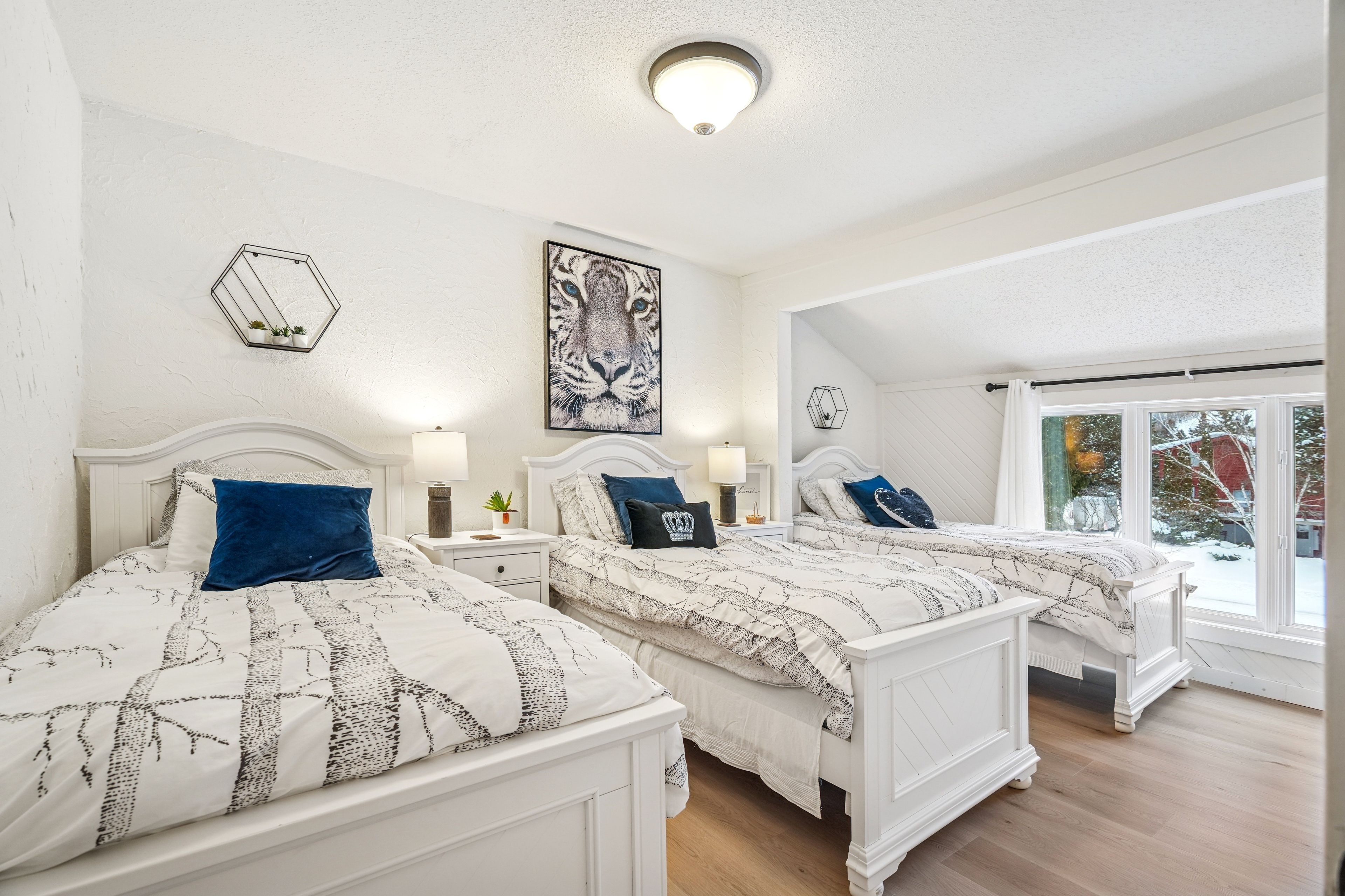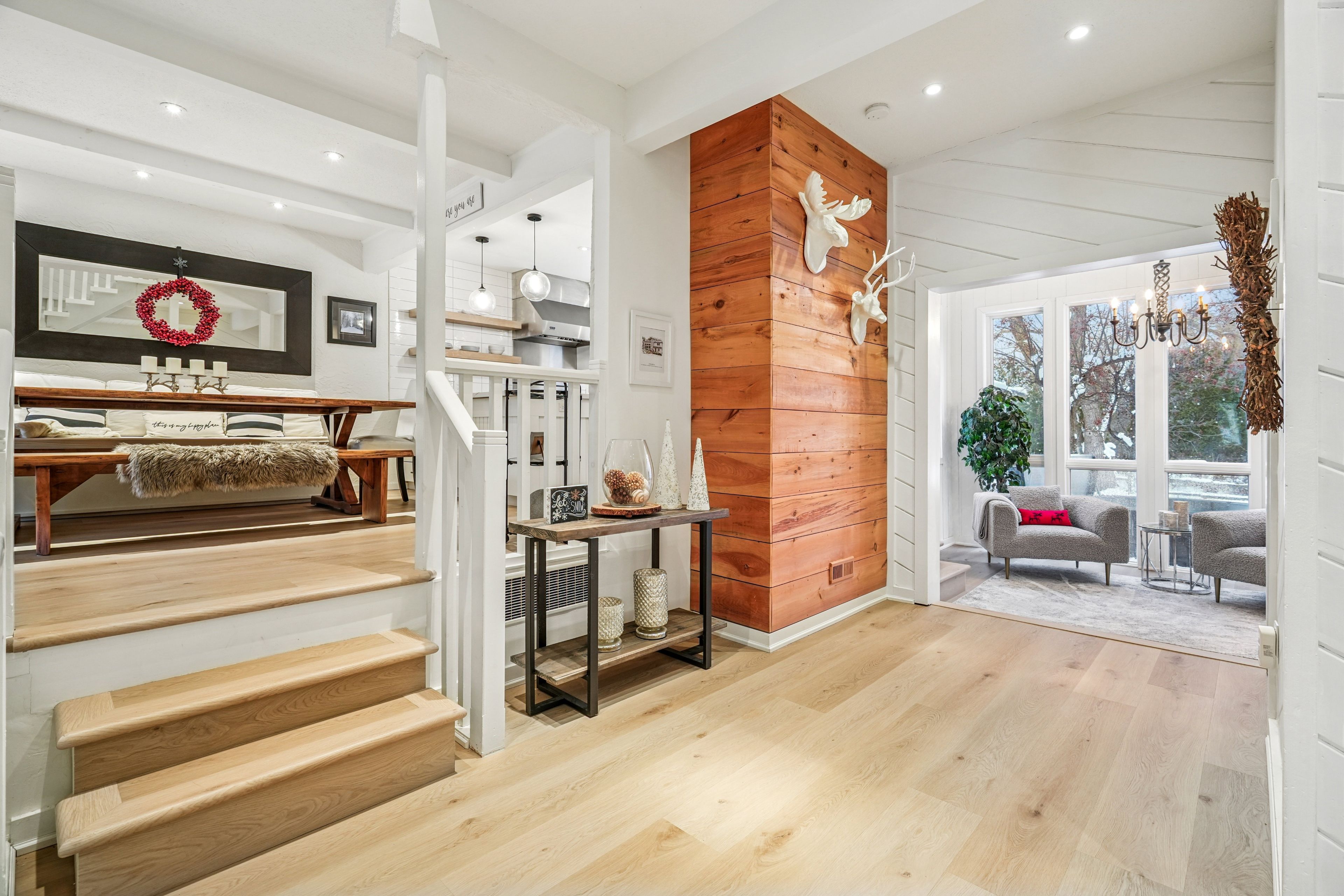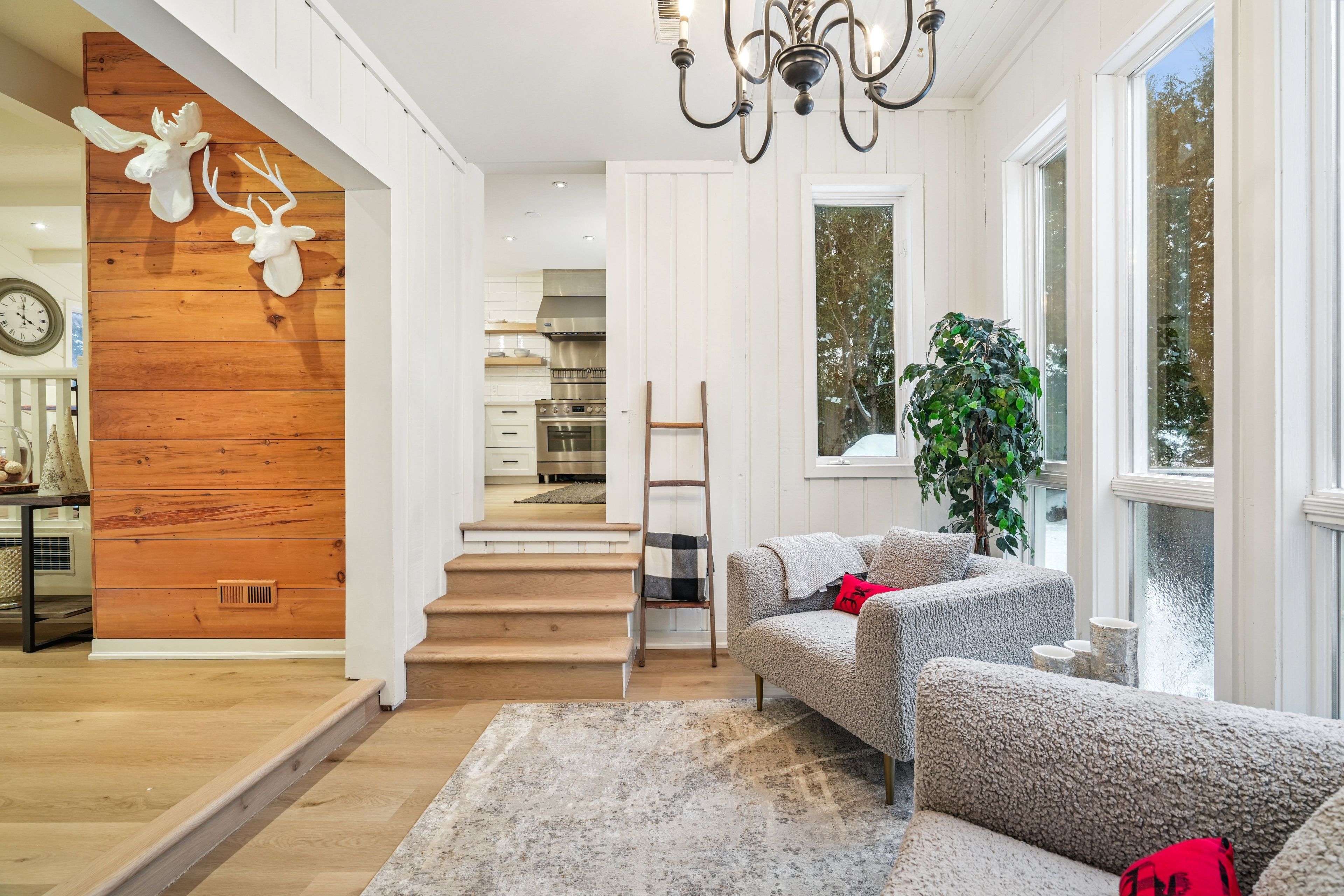 Tucked into one of the most walkable, family-friendly pockets of the blue mountains, this beautifully updated 2-storey home delivers the rare combination of ski-hill views, privacy, and everyday livability. From the moment you arrive, the double-wide driveway offers parking for 6 vehicles, making hosting friends and family effortless. Inside, the home opens to warm, light-filled living spaces designed for connection and comfort. The main living room frames views of the blue mountain ski hills, a daily reminder that adventure is right outside your door. A separate sitting room overlooks the expansive backyard, while the family room features a cozy fireplace and a cleverly integrated murphy bed. The kitchen was updated in 2024, showcasing quartz countertops, modern cabinetry, pot lighting, and a clean, timeless aesthetic. Whether it's weekday breakfasts or après-ski gatherings, this kitchen anchors the home beautifully. Upstairs, four well-proportioned bedrooms provide space for growing families or weekend guests. The primary suite offers calm and comfort, while 2. 5 bathrooms ensure smooth mornings and relaxed hosting. The finished basement adds another layer of lifestyle value, with a fireplace, laundry area, storage, and a private sauna. The basement was professionally waterproofed in 2025 and includes a new drainage system and sump pump. Outdoor living is just as compelling. A screened-in porch extends the living space and invites long summer evenings, while the 60 x 114 ft lot offers a large yard with no immediate rear neighbours. Major updates include a roof in 2020, air conditioning in 2020, a new furnace in 2025, and an on-demand water heater, making this home as efficient as it is inviting. Located within walking distance to blue mountain village, you're moments from skiing, snowboarding, hiking, restaurants, cafés, shops, and year-round entertainment. This is a home built for families who love the outdoors but appreciate refined comfort at the end of the day.