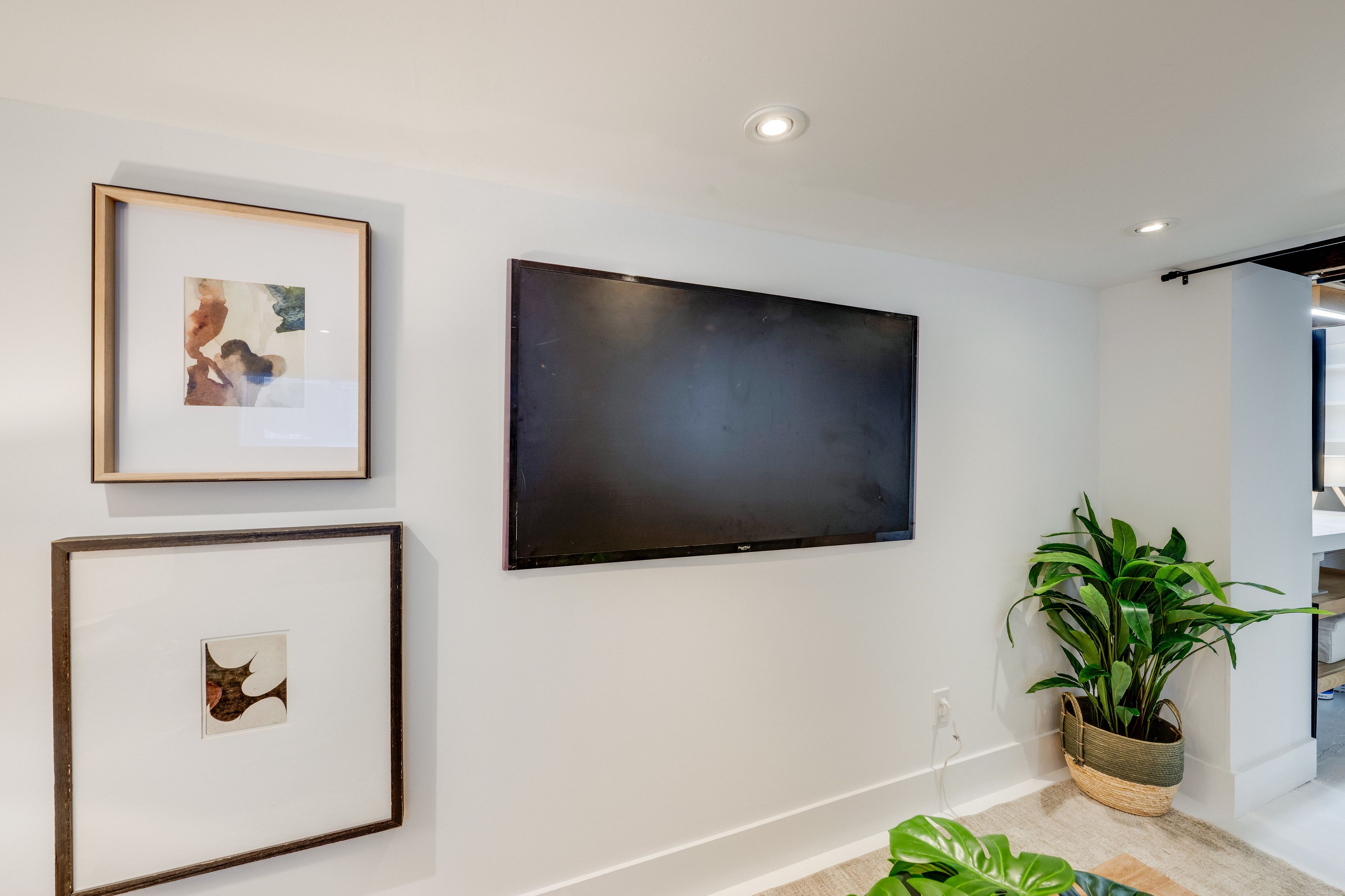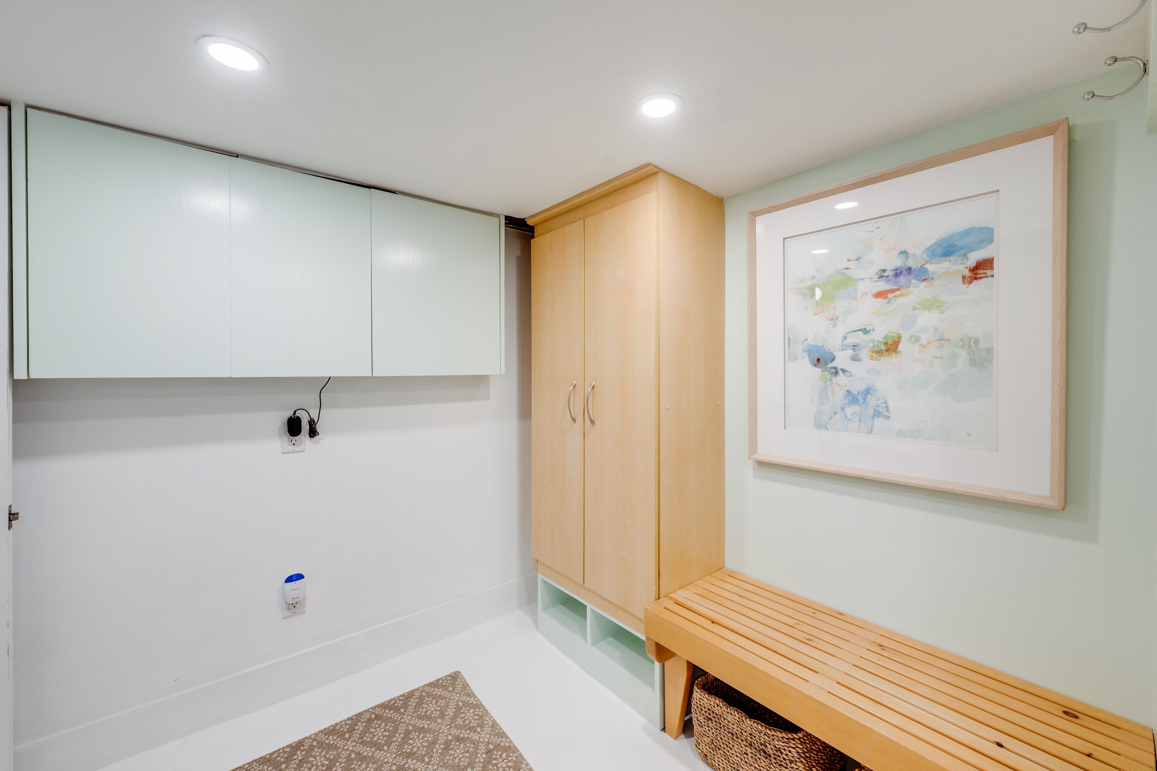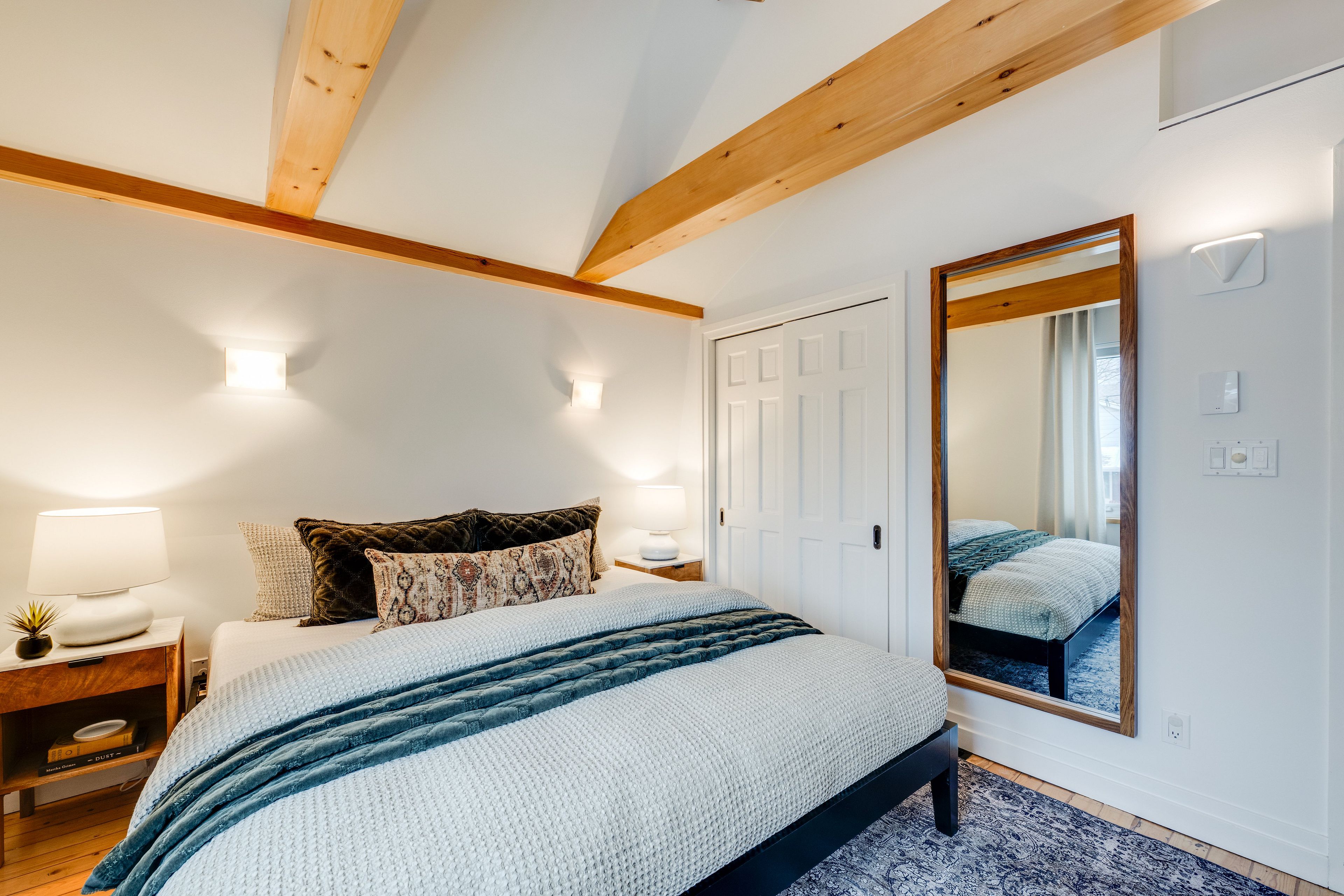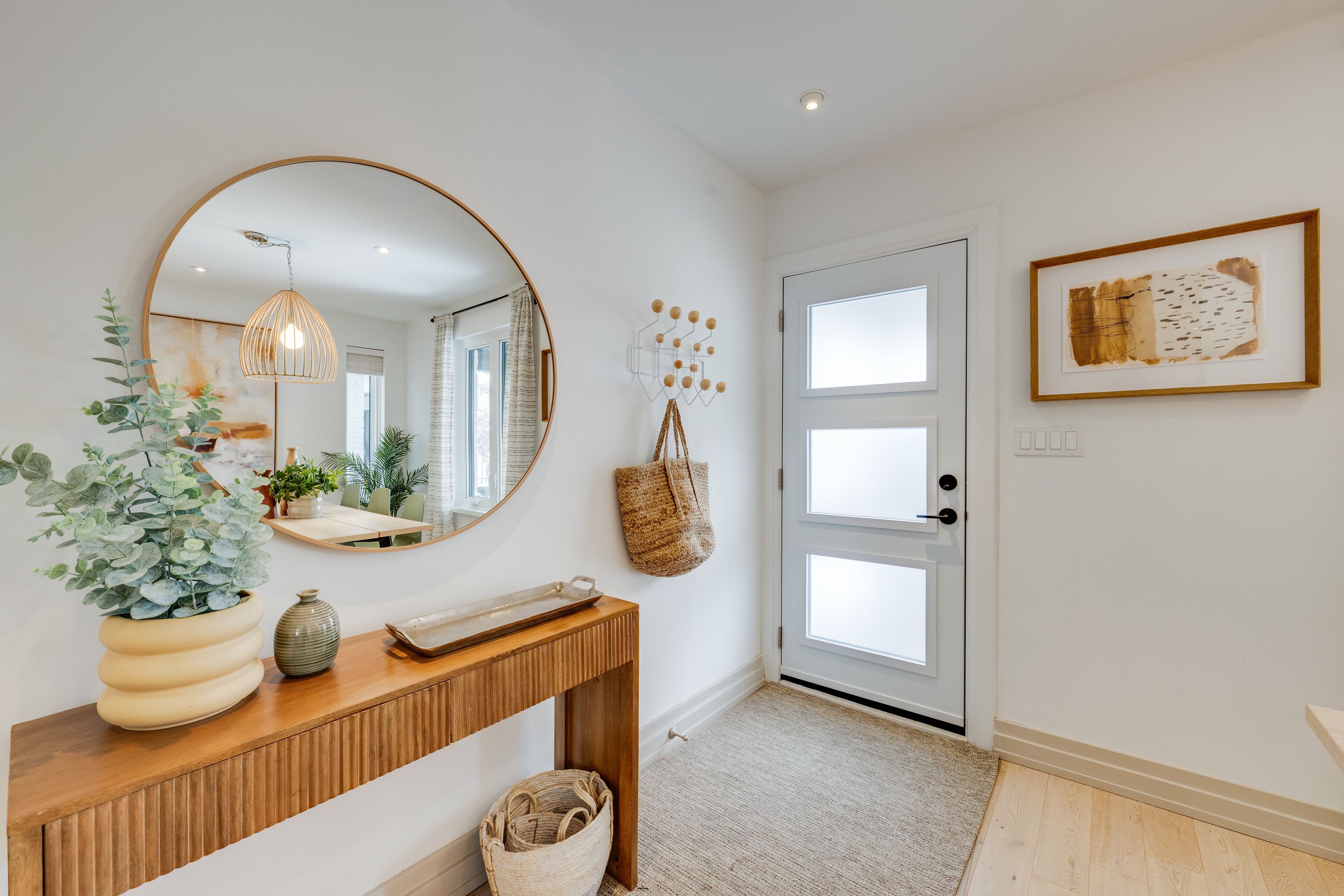 • Open-concept living and dining area with serene oak plank floors.