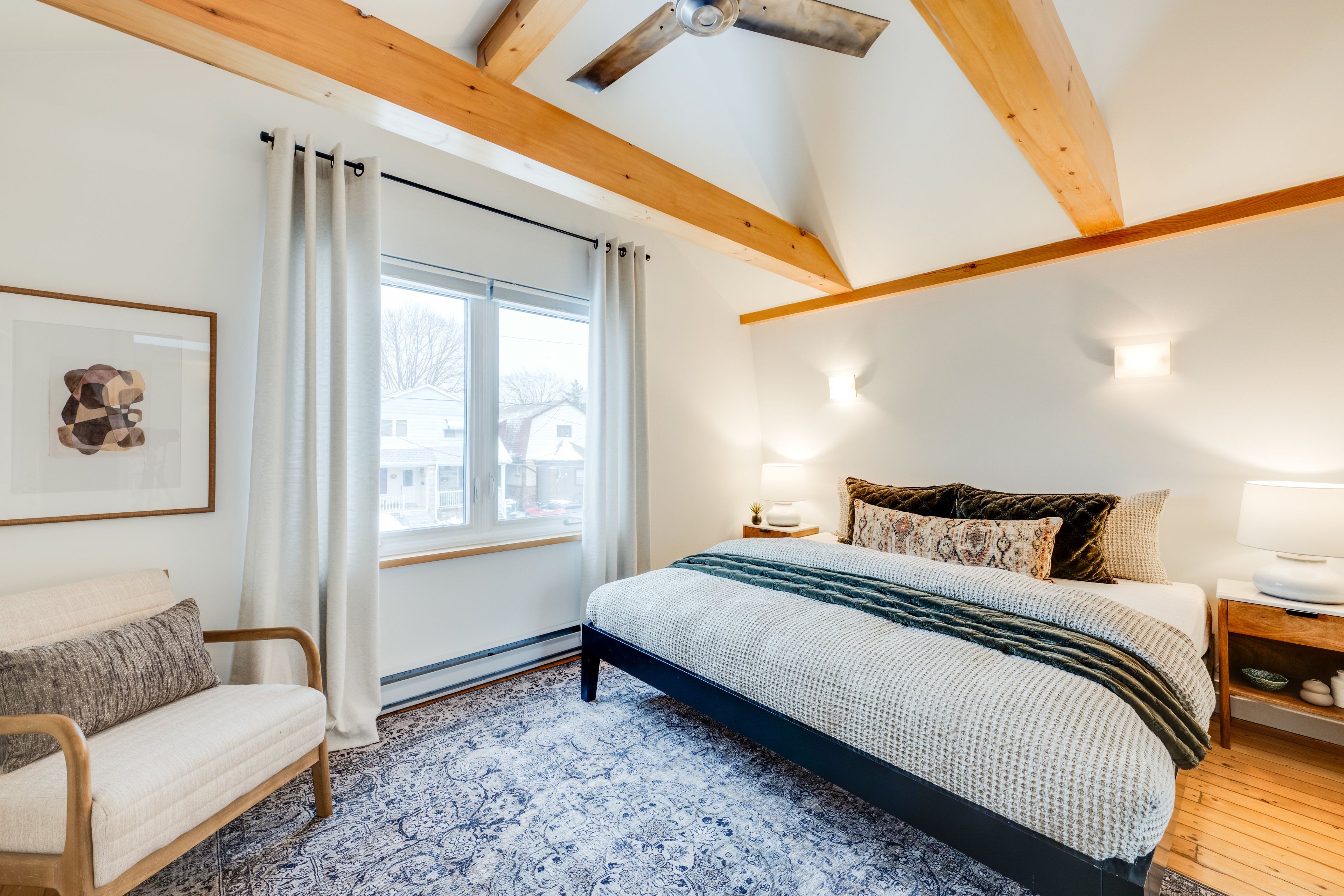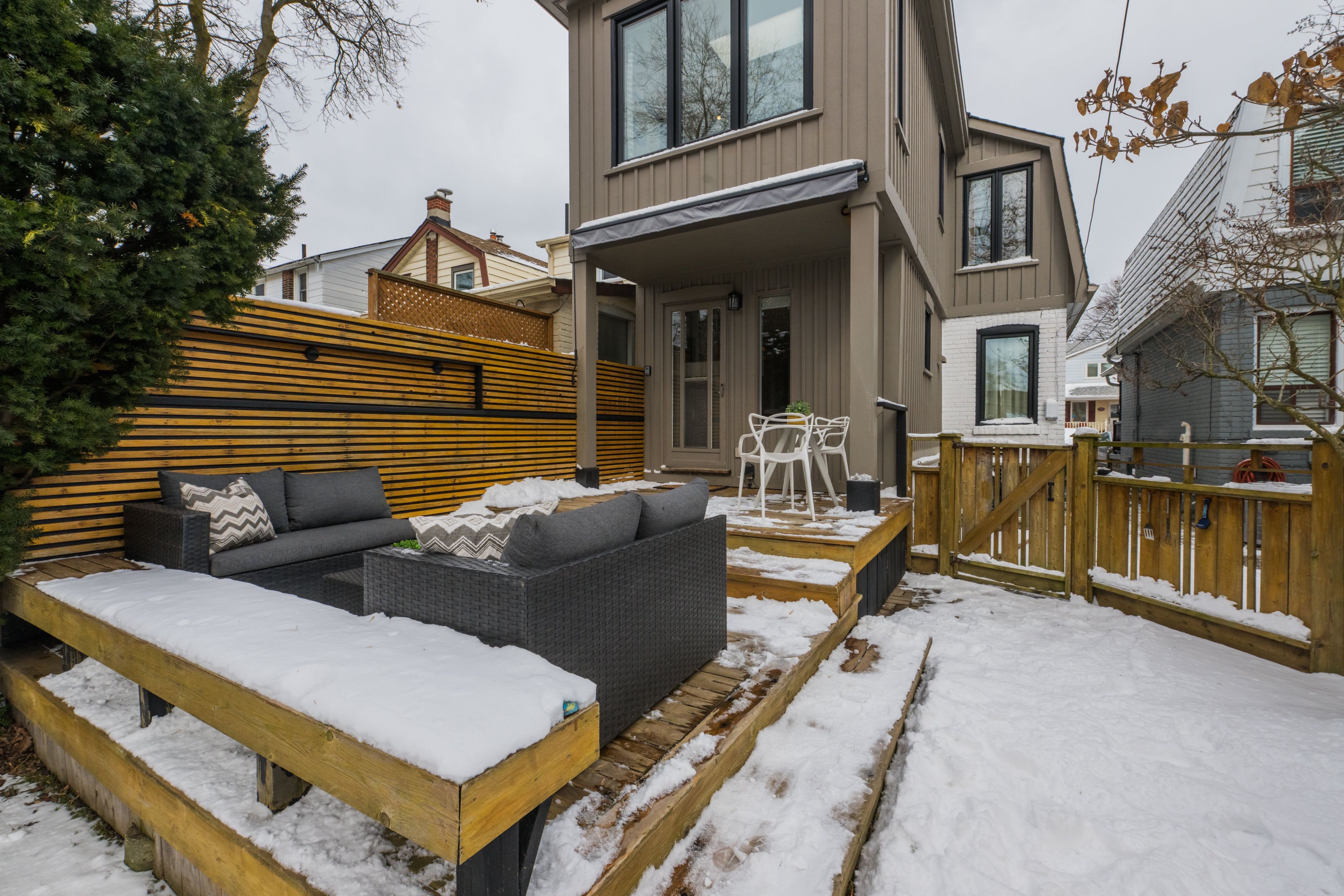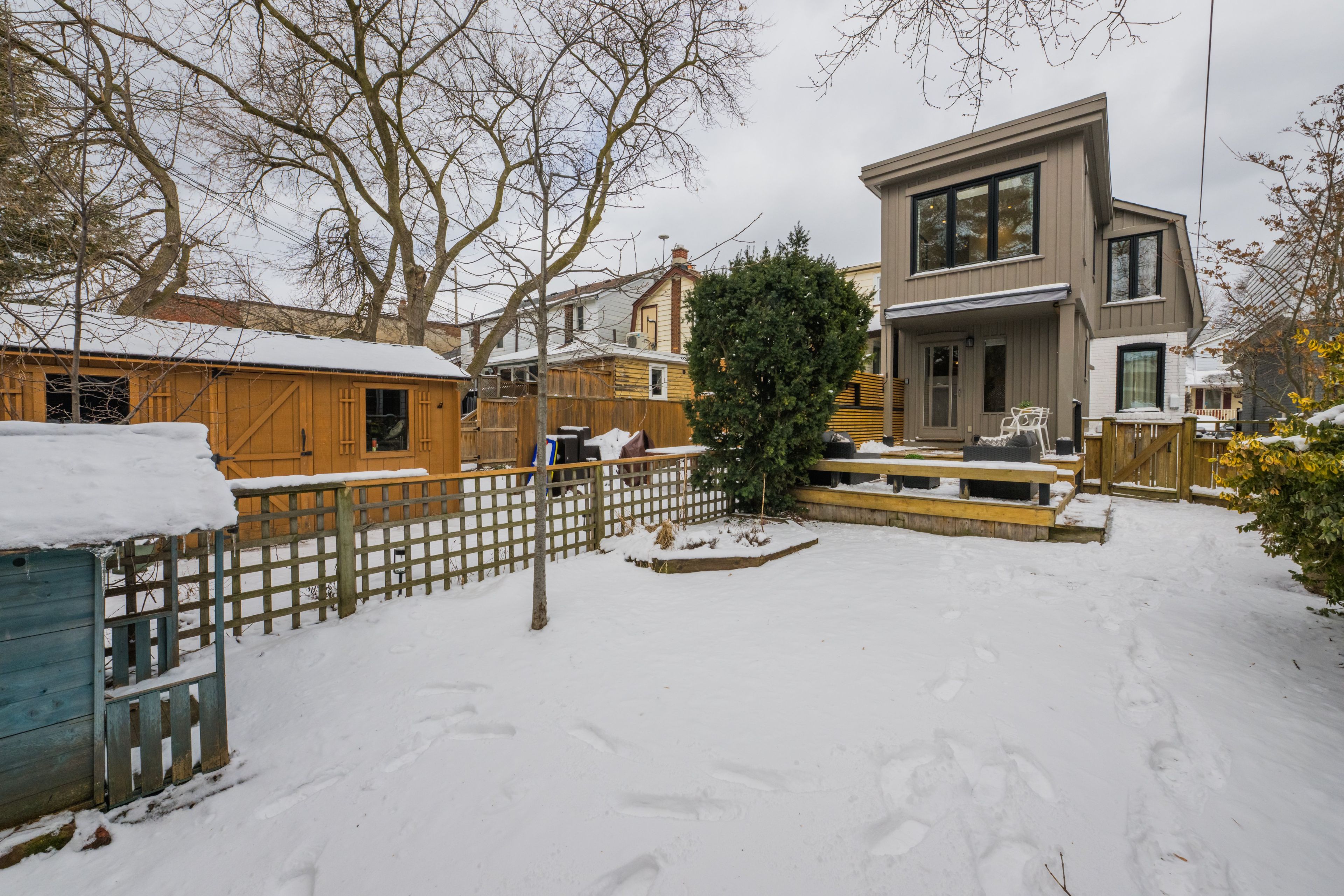 Modern farmhouse warmth blends seamlessly with scandinavian calm in this fully reimagined detached home in the coveted mcgregor school district. Renovated top to bottom with energy efficiency at the forefront-resulting in impressively low energy costs (total $1,421 for 2025!!!) and an exceptionally small carbon footprint-the home offers a clean, contemporary aesthetic enriched by natural materials and thoughtful design. The open-concept living and dining rooms feature wide tundra oak plank floors that set a serene tone throughout the main level. A beautifully renovated eat-in kitchen showcases soft sage slim-line shaker cabinetry, stainless steel appliances, sleek stone-slab tile, and a walk-out to a fenced, west-facing perennial garden with a tiered deck, creating an effortless indoor-outdoor flow. Upstairs, three generous bedrooms include a stunning primary retreat with vaulted ceilings, while the european-inspired main bathroom delivers spa-like simplicity with refined, modern lines. The finished basement adds valuable living space with a comfortable recreation room, a three-piece bathroom, and a spacious laundry area. Thoughtful upgrades were completed with sustainability in mind, culminating in an outstanding energy audit score that reflects the home's commitment to efficiency and environmental responsibility. All of this sits just steps from the coxwell subway, the shops and dining of the danforth, east york memorial arena and michael garron hospital, offering a rare combination of style, comfort, and convenience in one of the east end's most desirable pockets.