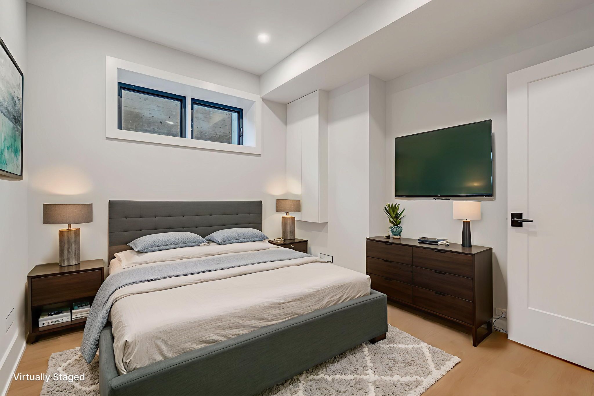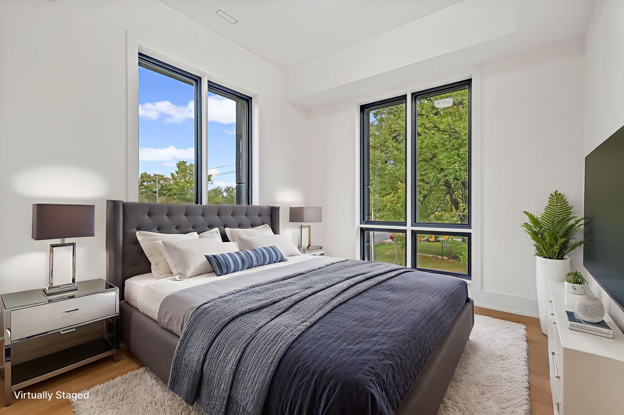 • Abundant natural light through floor-to-ceiling windows brightens the space.