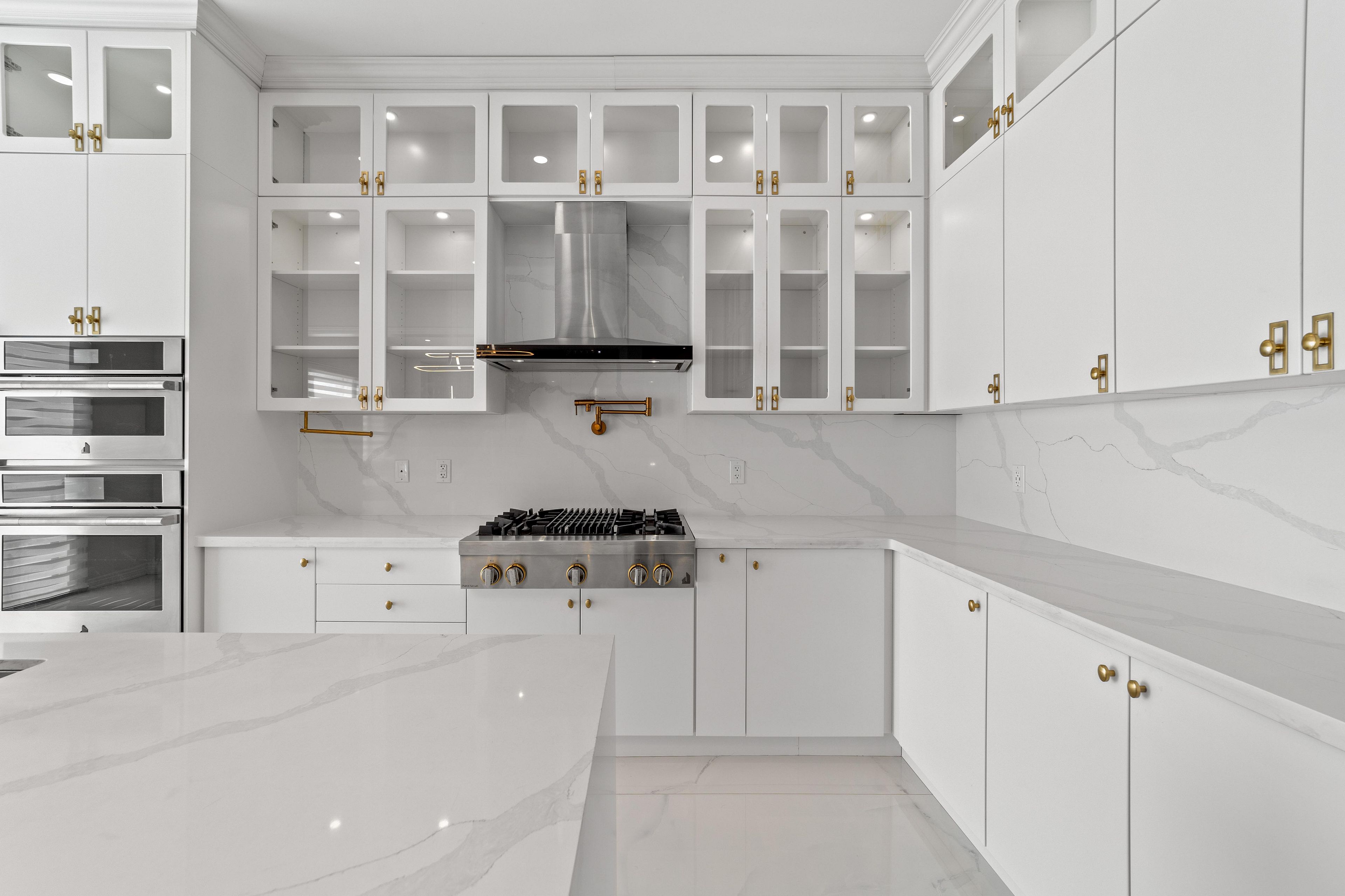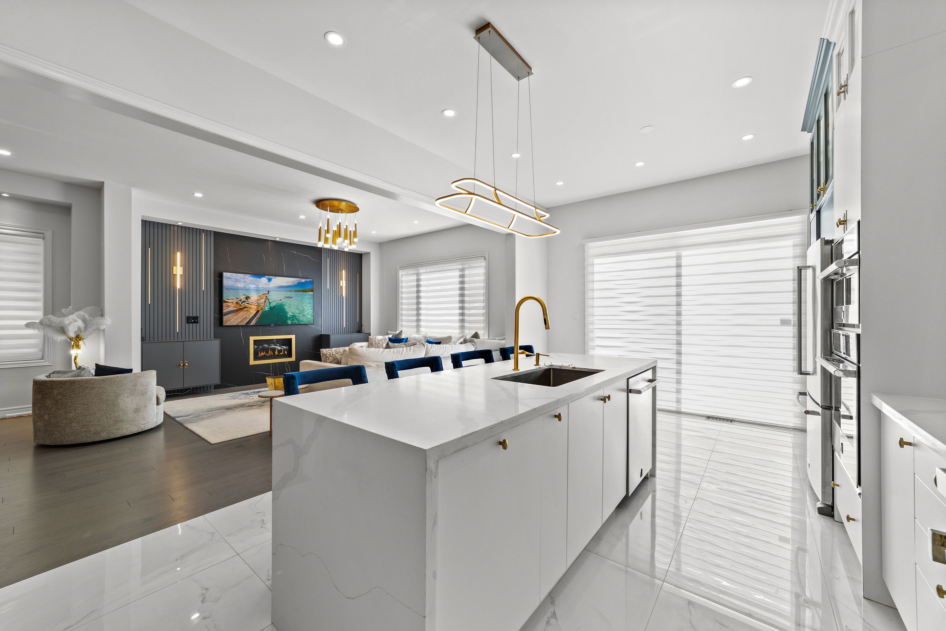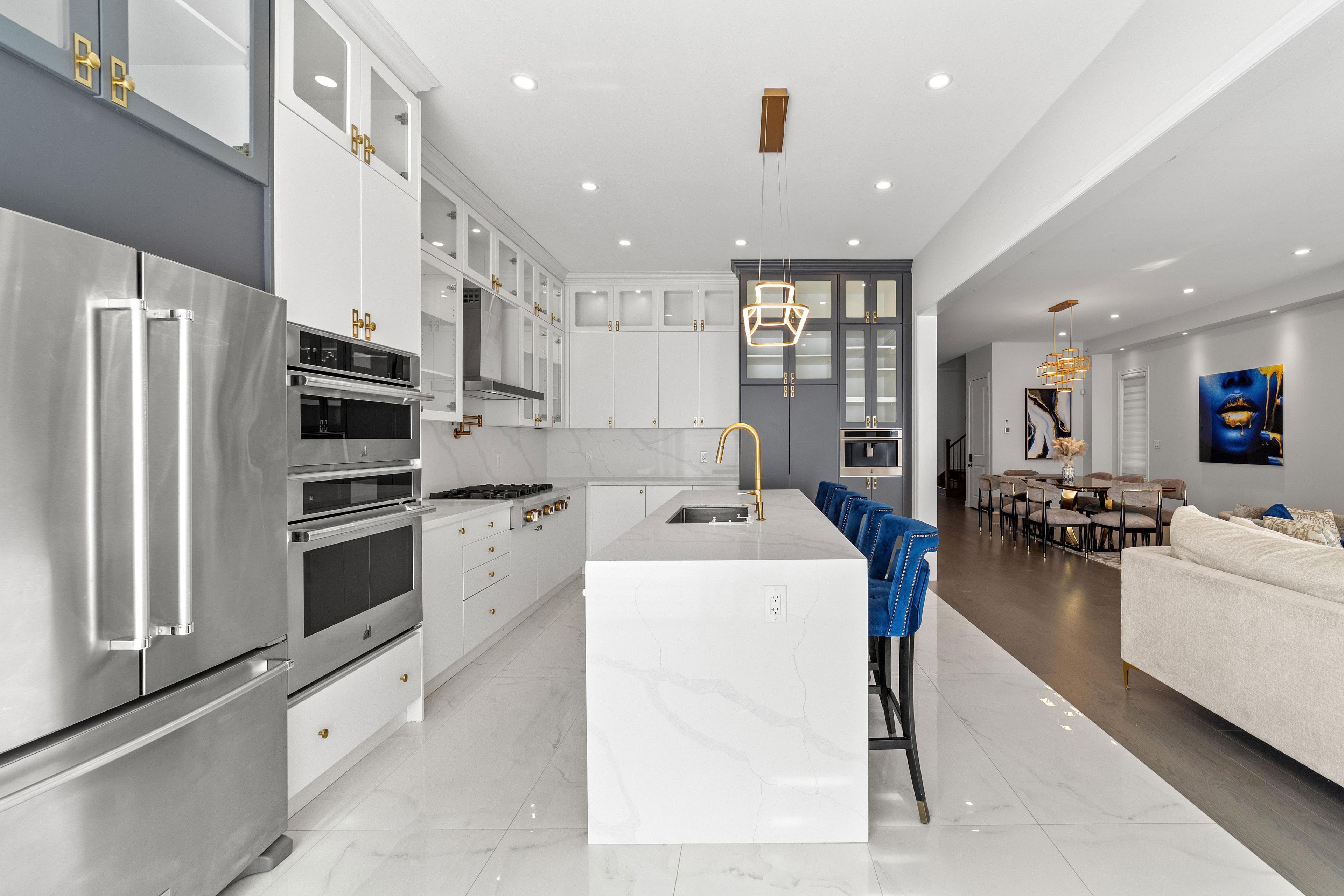 • Sun-filled gourmet kitchen features high-end appliances for cooking.
