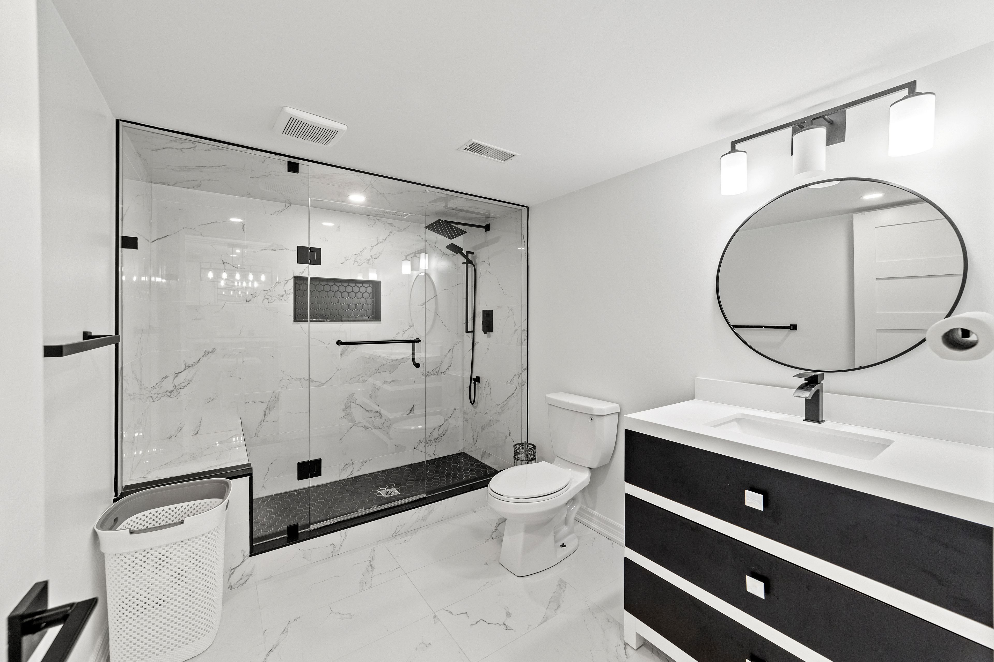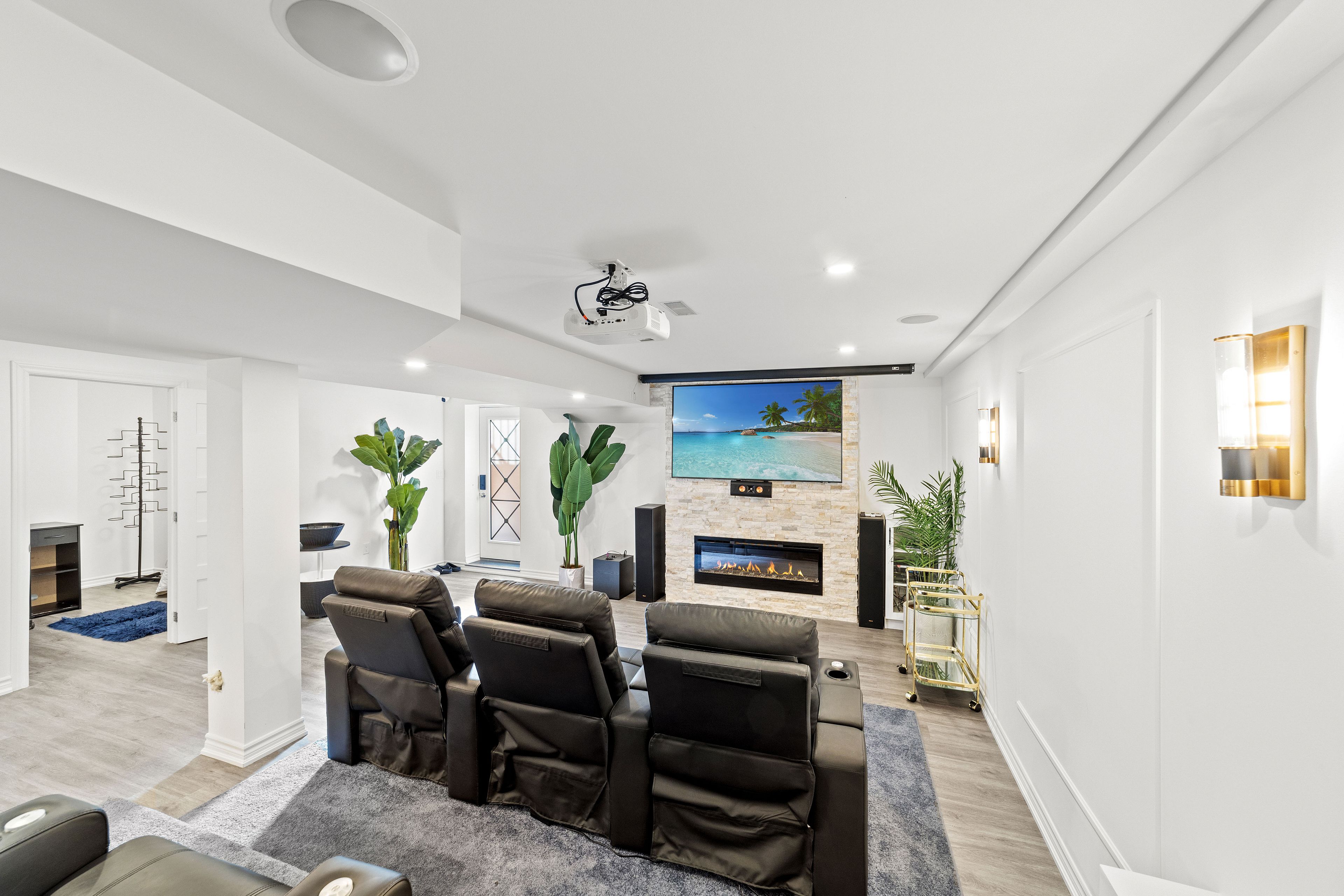 • Fully finished walk-up basement includes cinema, kitchen, and extra laundry.