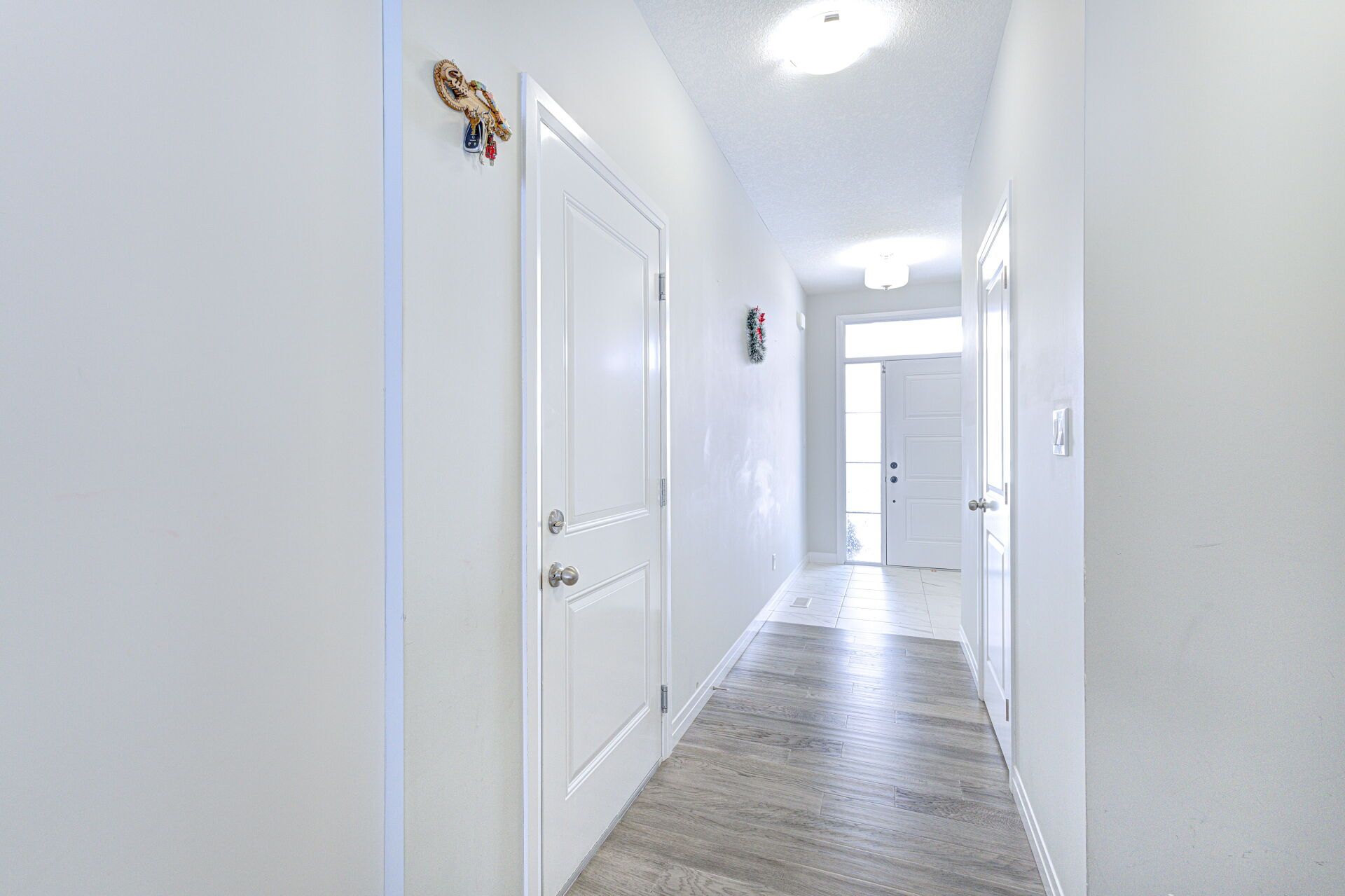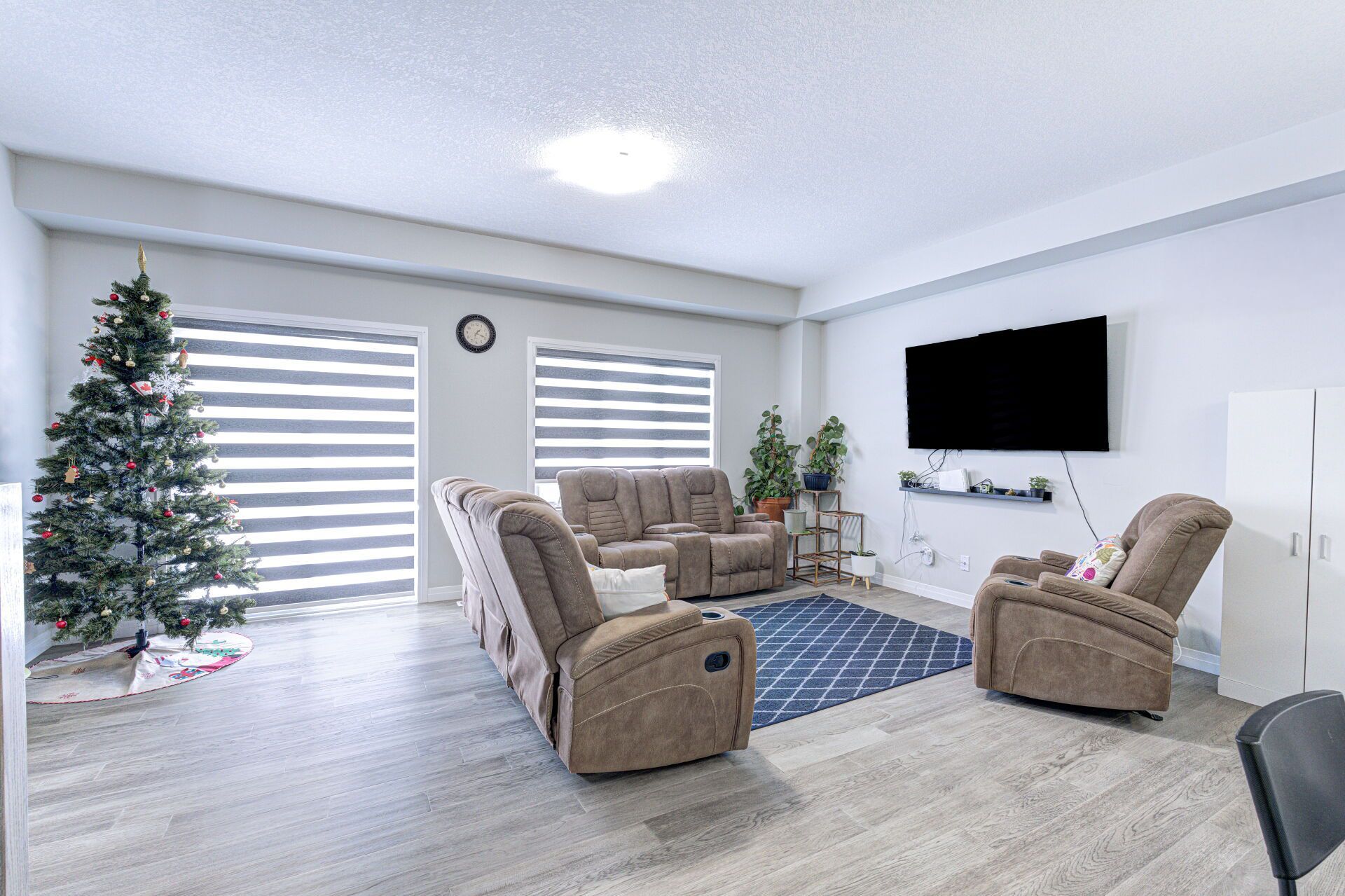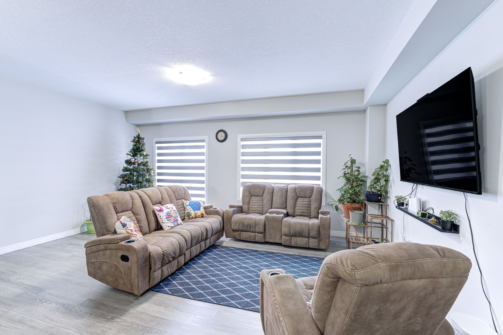 "open house: december 13th from 1:00 to 4:00 pm for any questions or to book a private showing, please call 647-779-9484" this beautifully designed freehold townhome is located in the highly desirable westwood village community. It comes with the added benefit of no condo fees. The main floor offers an open-concept layout with engineered hardwood and tile flooring, creating a smooth flow between the living, dining, and kitchen areas. The modern kitchen features a large island, quartz countertops, and expansive windows that fill the space with natural light. The second floor includes three spacious bedrooms. The primary suite offers a walk-in closet and a luxurious ensuite with double sinks and a glass walk-in shower. The convenience of second-floor laundry adds to the functionality of the home. Built by ridgeview homes, an award-winning builder, this property reflects quality craftsmanship and premium finishes throughout. The community is thoughtfully planned with access to local shops, restaurants, downtown cambridge amenities, parks, scenic trails, and a proposed future school.