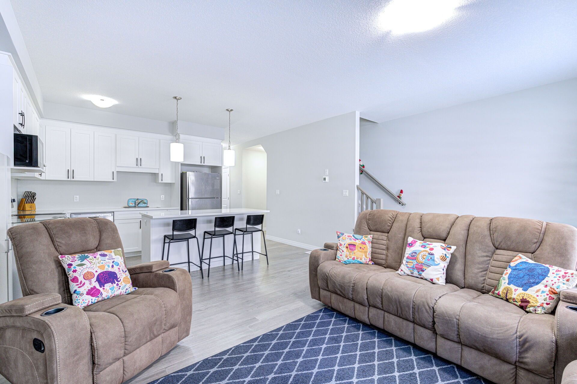 • Open-concept main floor with hardwood and tile flooring for easy flow.