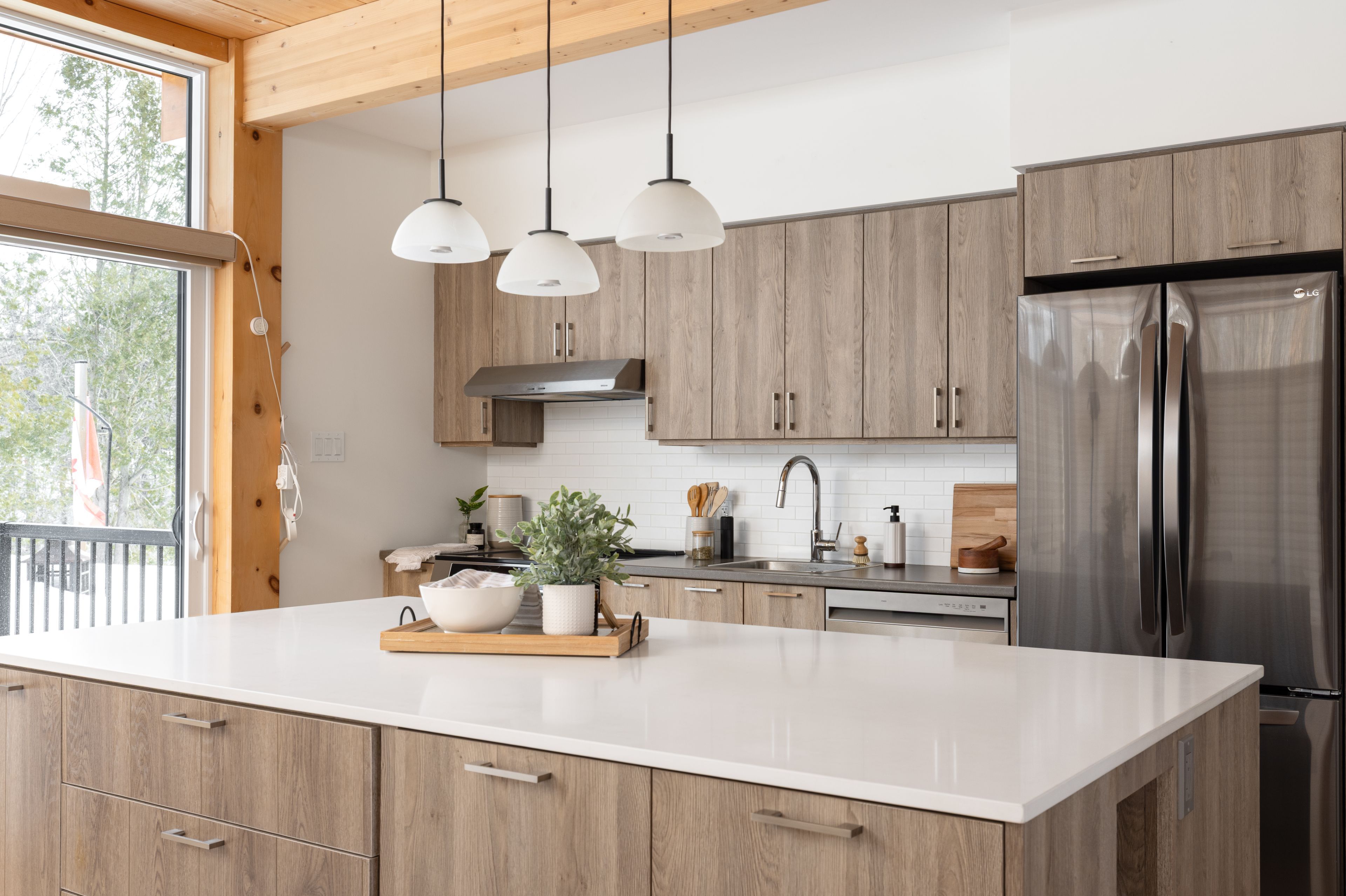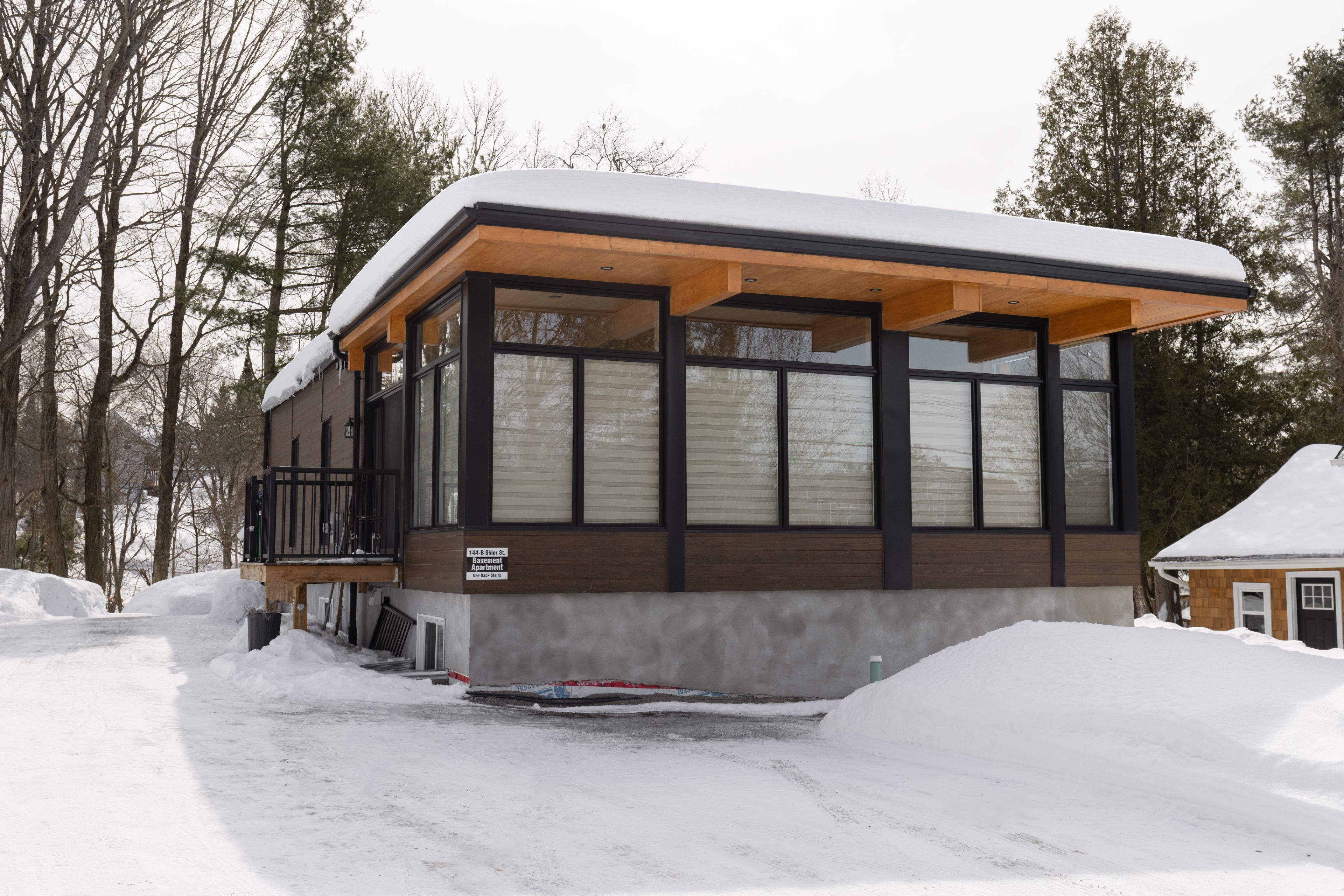 Morning light pours through the wall of windows, stretching across the main living space as the rhythm of the day begins outside. Across the street, the park fills with early dog walkers and the soft pop of a pickleball rally echoes from the nearby courts. A short walk away, the river moves steadily after flowing over the falls in the heart of bracebridge. At 144 shier street, you're close to everything that makes downtown living so appealing, yet just far enough away that home still feels calm. Completed in 2025, the architecture brings a unique and modern presence that stands out in this established neighborhood. Clean lines, durable materials, and large windows define the design, creating bright open spaces that feel connected to the outdoors. The primary suite includes its own private deck, an ideal place to start the morning or end the evening, overlooking the canopy of trees and the natural ravine beyond. This backdrop is municipal green space, a natural ravine that adds privacy and a sense of quiet rarely found this close to town. Inside, the layout offers flexibility that works for modern lifestyles. The home is thoughtfully arranged across two levels, each with its own kitchen, laundry and three bedrooms. The lower level could become an income suite, a guest space for visiting friends, or a private area for extended family. For those who value walkable downtown living, modern design, and the potential for added income, this property offers something rare. Downtown restaurants, shops, trails, and the riverfront are all within walking distance, placing the best of bracebridge just moments from your door. And when the day winds down, you return home to a quieter corner of town, where the park, the trees, and the steady sound of the nearby river remind you why this location feels so special.