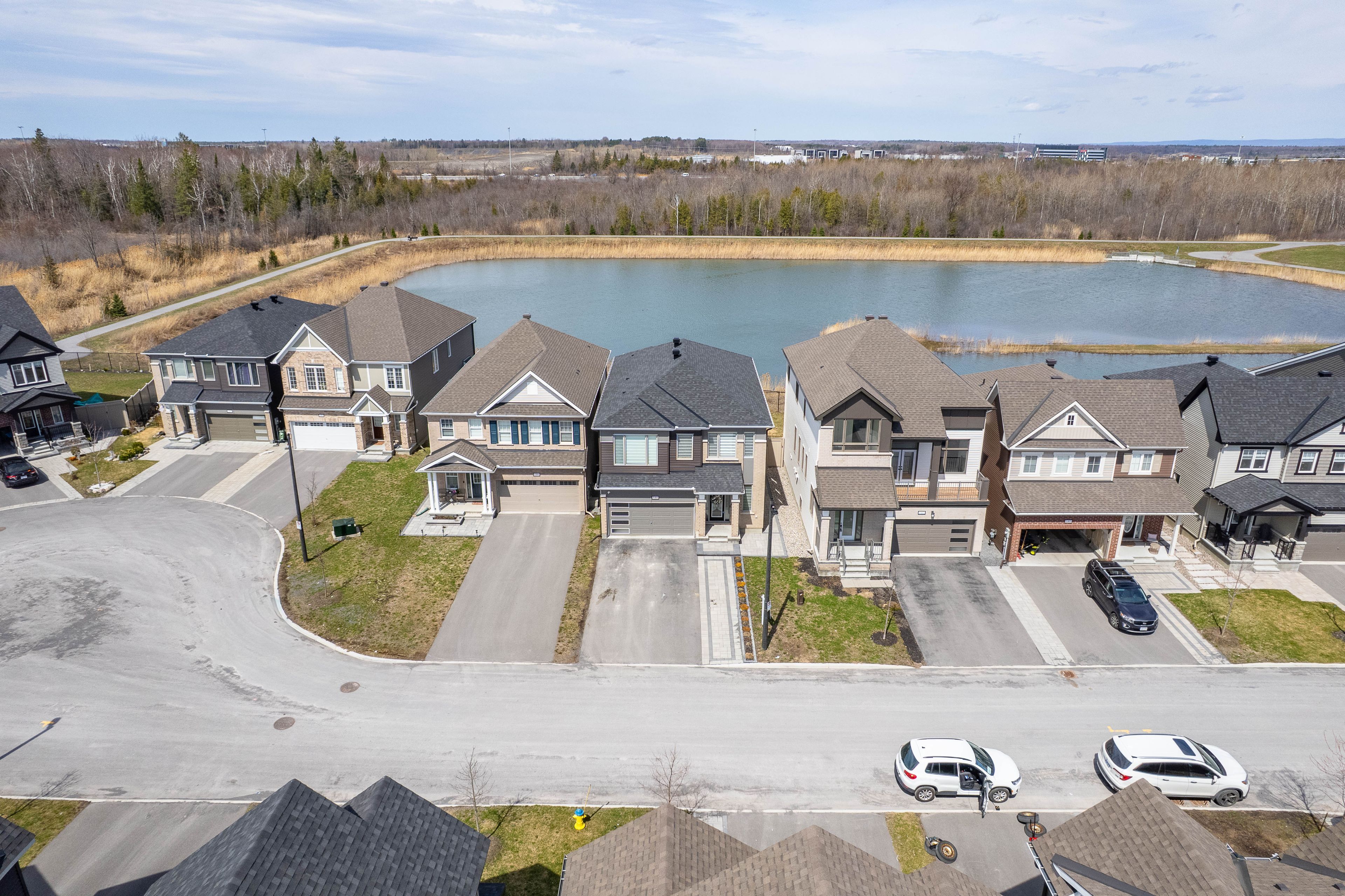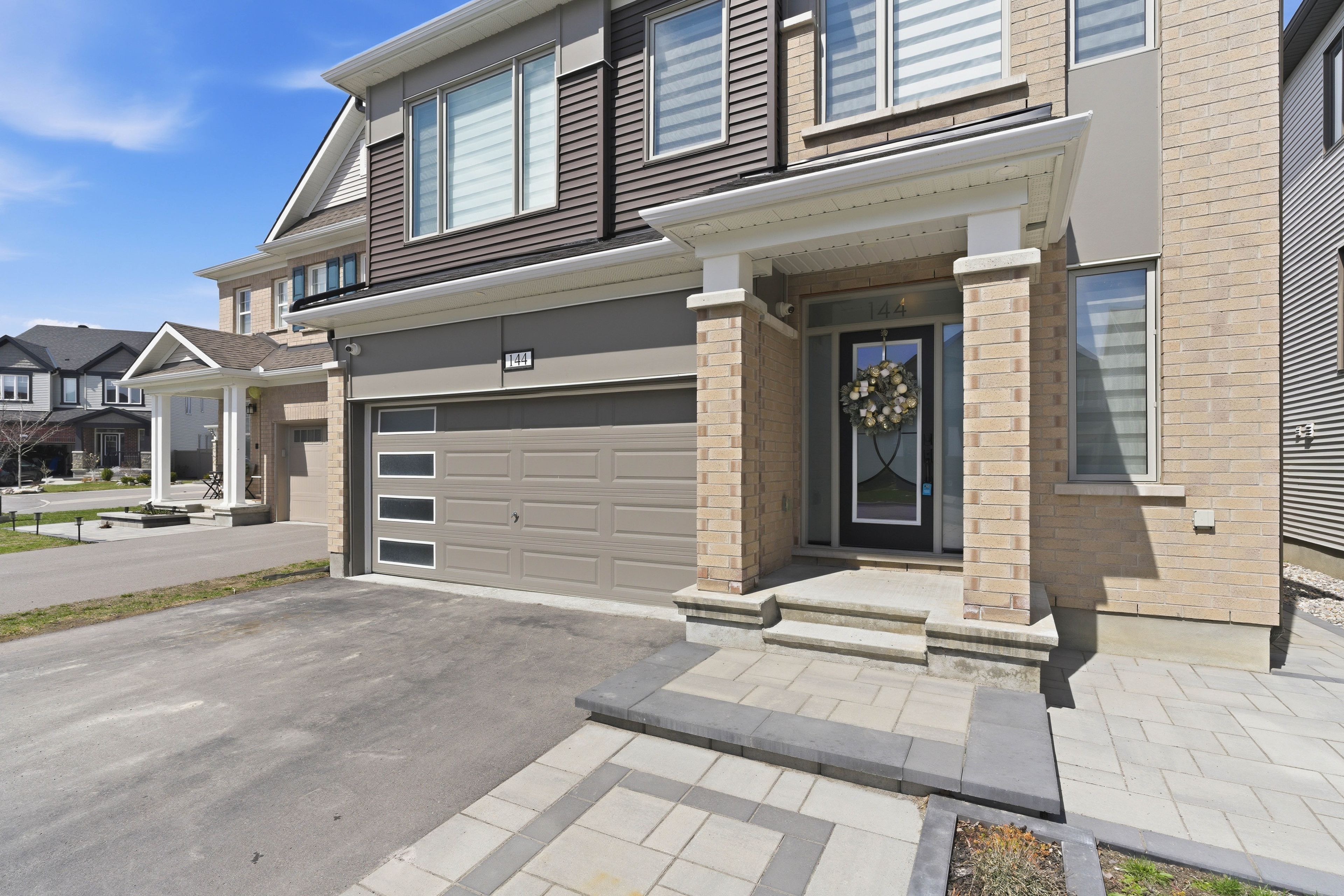 Welcome to 144 unity place, a beautifully upgraded mattamy parkside model set on an impressive 36 ft x 127 ft lot in the heart of stittsville. With over $155k in builder upgrades, a premium lot upgrade, and 9-foot ceilings on the main and upper level, this four-bedroom, five-bathroom home offers exceptional space, thoughtful design, and high-end finishes across every level. The main floor features a flexible den or office at the front of the home that works perfectly as a bonus room. The kitchen is a standout with floor-to-ceiling upgraded cabinetry with crown mouldings, a waterfall quartz island, gas burner cooktop, built-in oven and microwave, chimney-style hood fan, and pot lighting throughout. Waffle ceilings and a fireplace with a masonry upgrade add warmth and architectural detail. A functional mudroom with a walk-in closet connects to an upgraded powder room for everyday convenience. Upstairs, hardwood flooring continues throughout, with an oak staircase, upgraded metal spindles, and carpet runners. All four bedrooms are located on this level, including a spacious primary suite with two walk-in closets and an upgraded ensuite. Another bedroom features its own private ensuite, while the other two share a well-designed jack and jill bathroom. An upgraded laundry room and reinforced ceiling support for a statement chandelier complete the level. The finished basement adds valuable living space with a full bathroom and a bar-style kitchen, ideal for entertaining or extended use. Outside, enjoy a deck, pergola, side interlock, exterior pot lighting, and a gas line for bbqs. The four-car driveway offers parking for up to six vehicles total. Additional highlights include 8-foot doors, upgraded trim and casings on all levels, raised countertops, ecowater filtration system, and 125 amp electrical service. This is a home where quality, scale, and attention to detail are felt throughout.