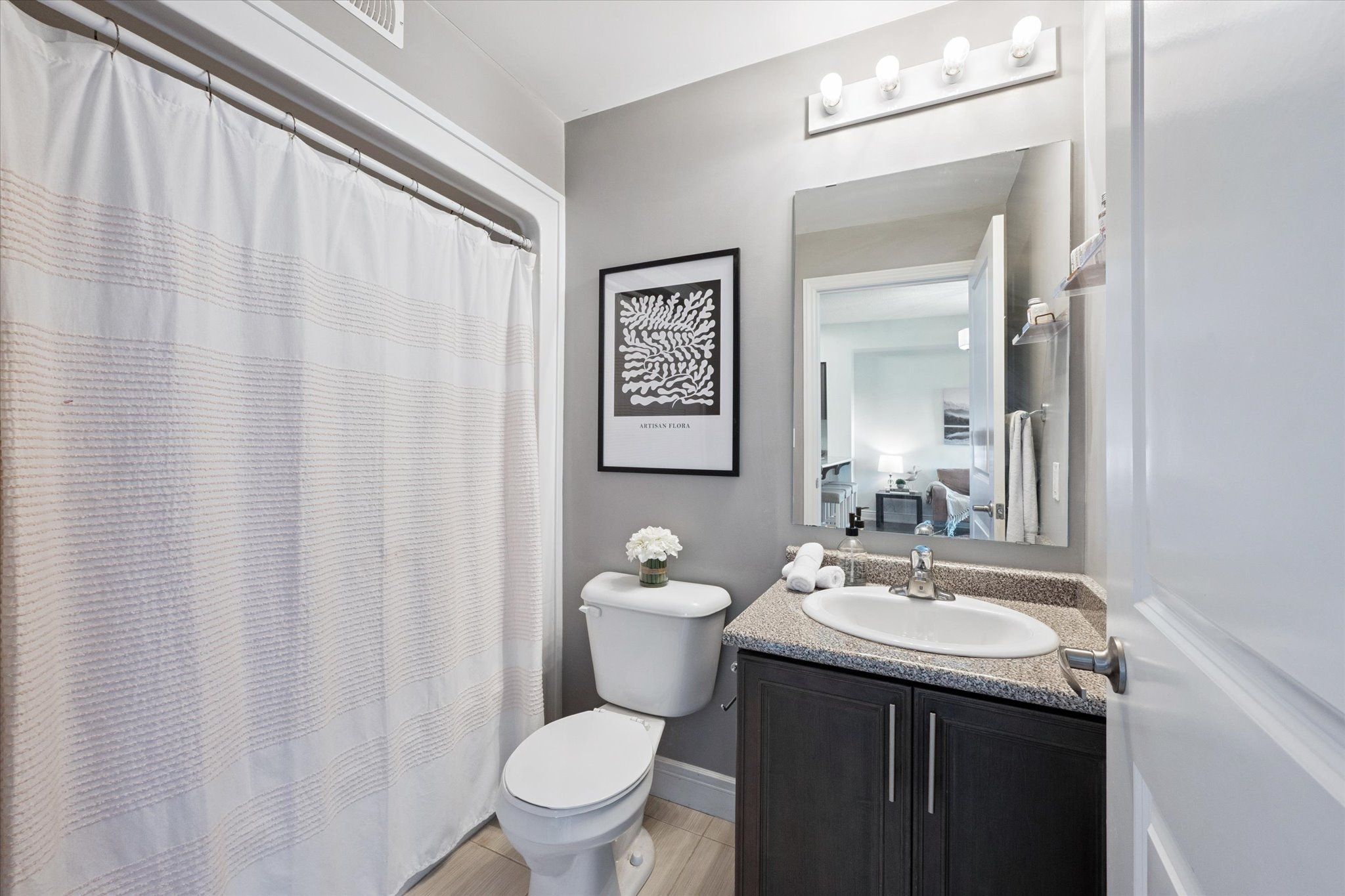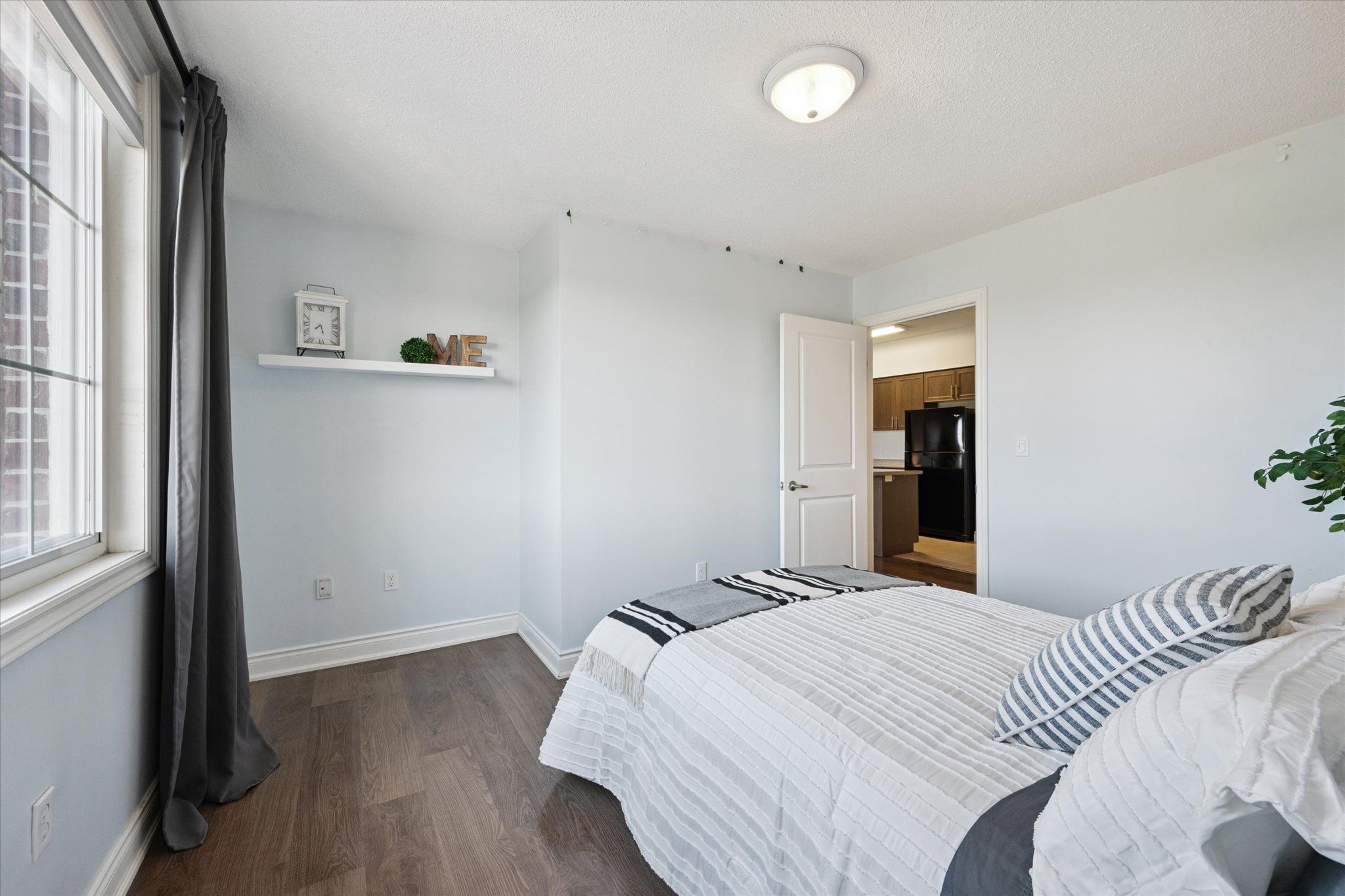 • Spacious bedroom with a walk-in closet for added storage.