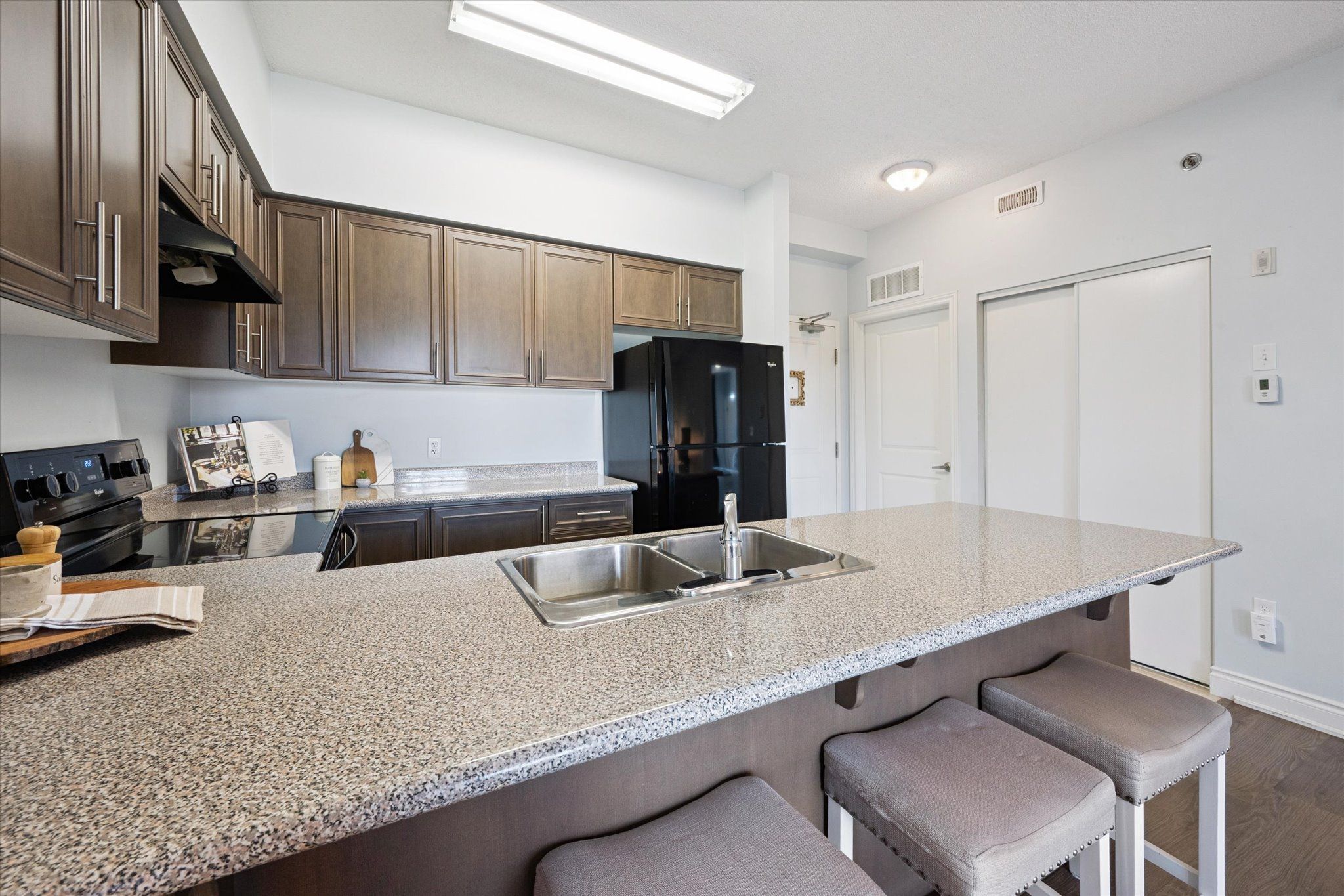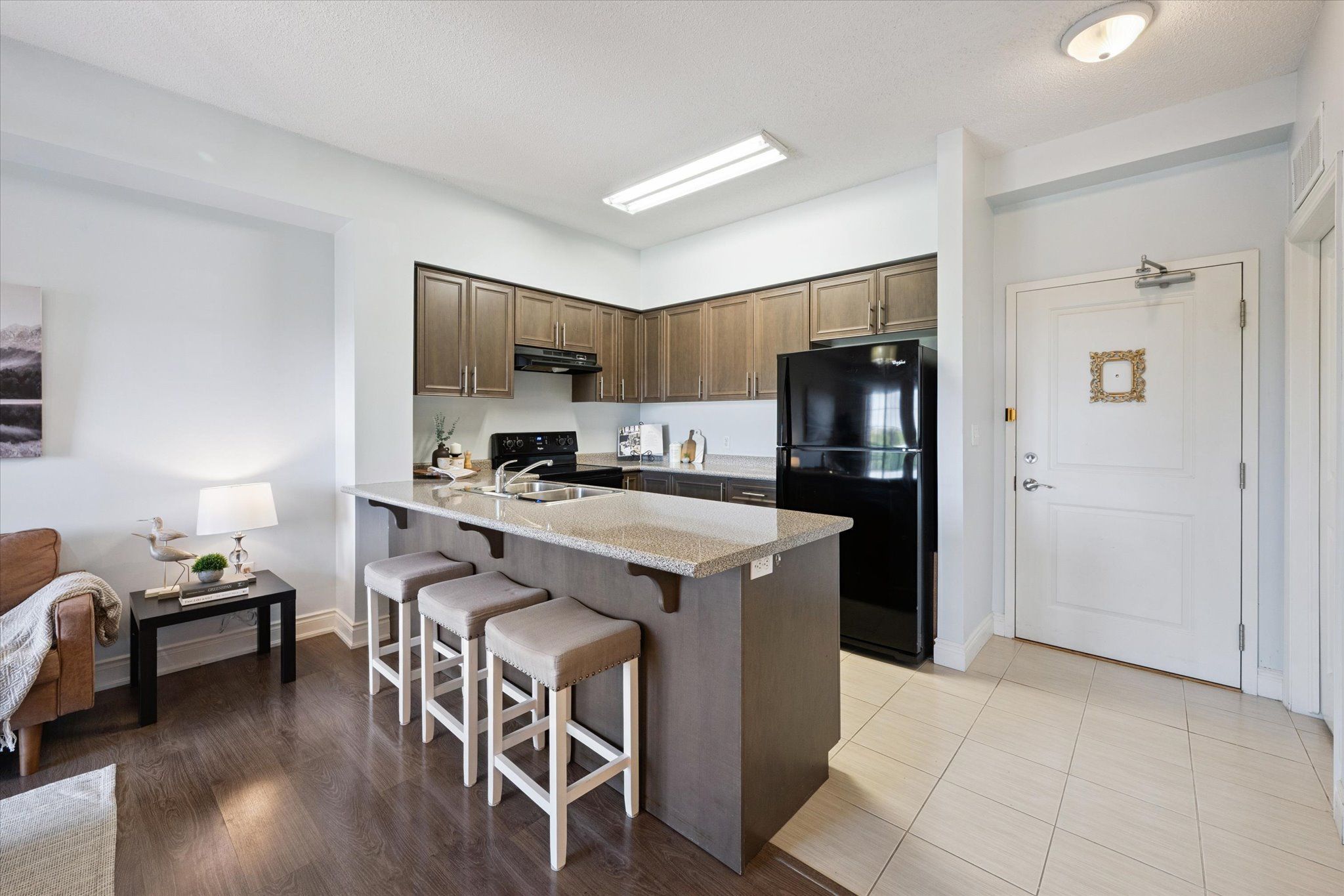 Welcome to this beautifully maintained top-floor 1-bedroom condo in guelph's highly desirable south end. Nestled in a quiet, well-kept building, this bright and inviting unit offers the perfect blend of comfort and convenience. Step inside to a carpet-free interior featuring a functional open-concept layout, ideal for both everyday living and entertaining. The spacious bedroom includes a walk-in closet, providing ample storage, while large windows fill the space with natural light. Enjoy the added benefits of a dedicated parking space and a private locker for extra storage. Whether you're a first-time buyer, downsizer, or investor, this move-in-ready condo is an excellent opportunity in a sought-after location close to amenities, shopping, transit, and more.