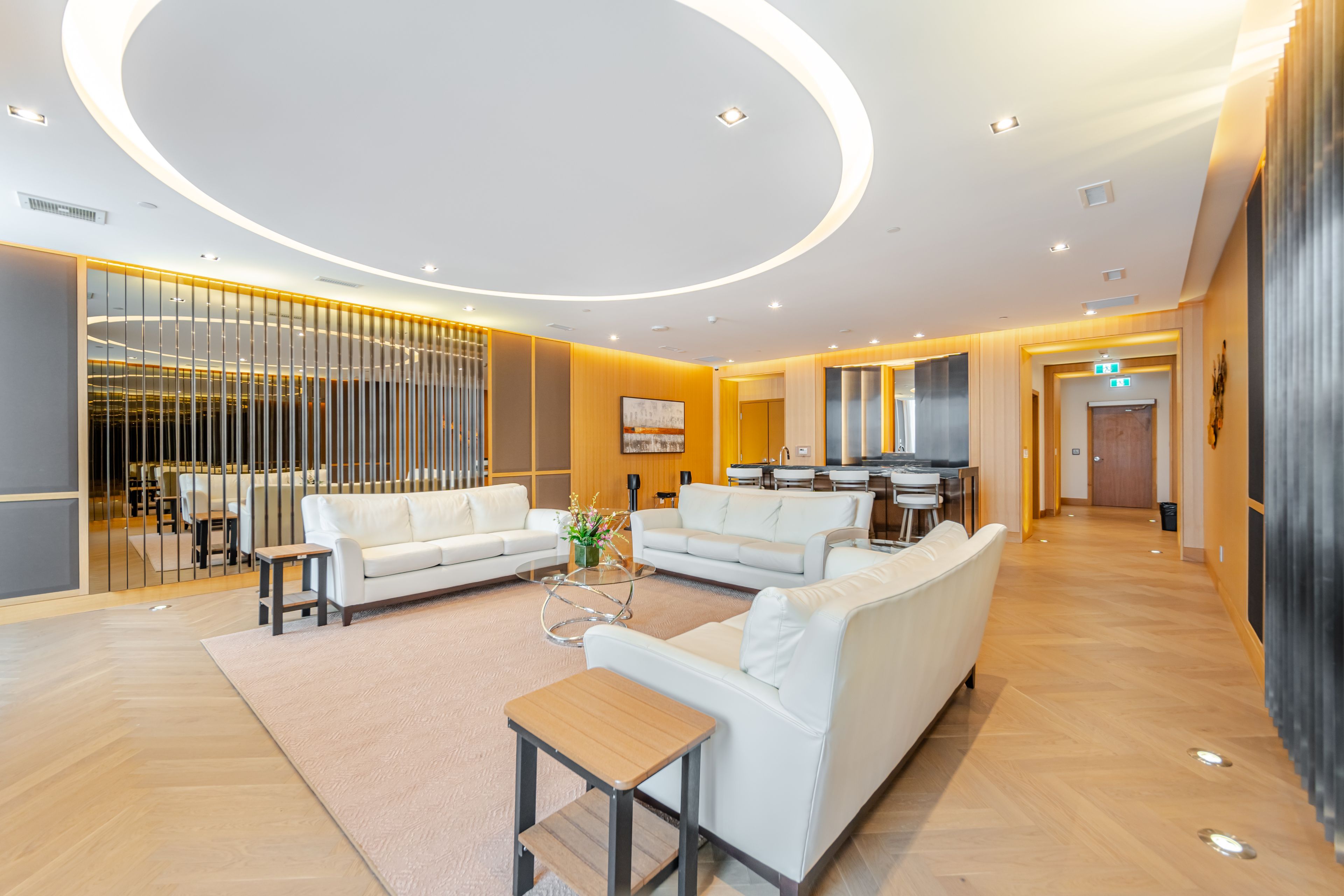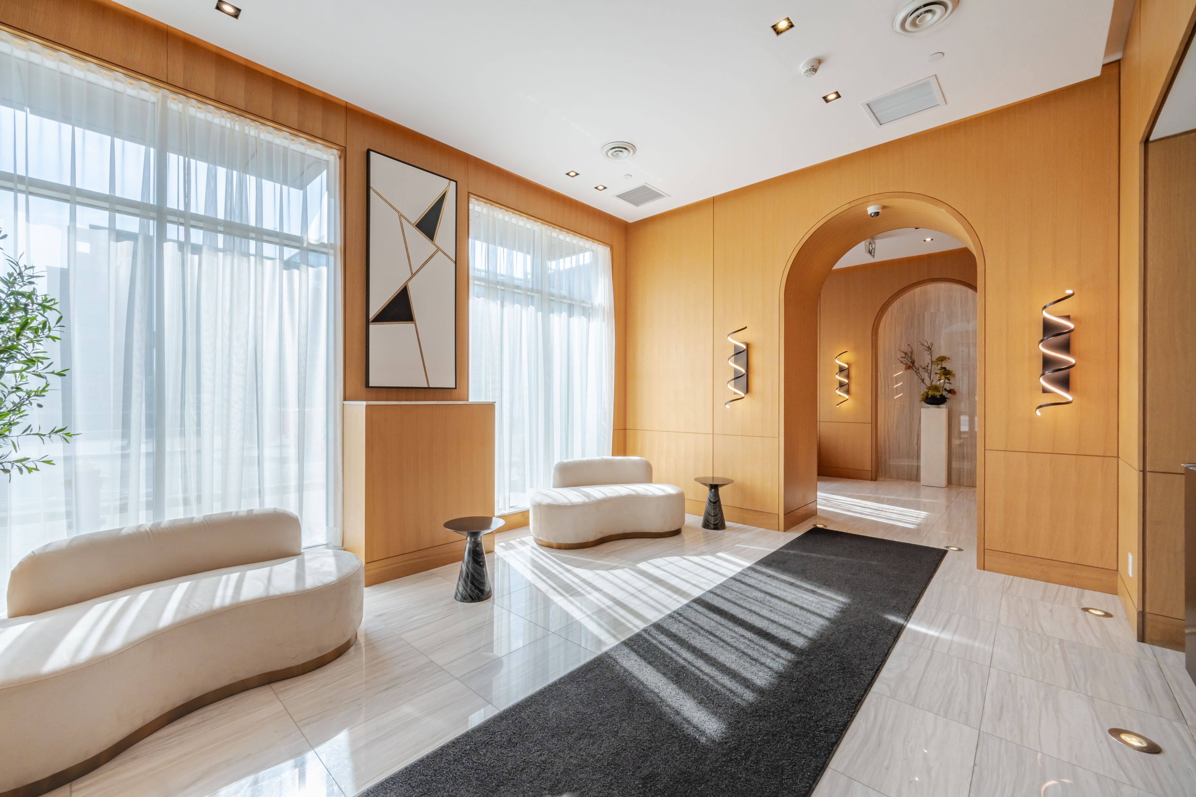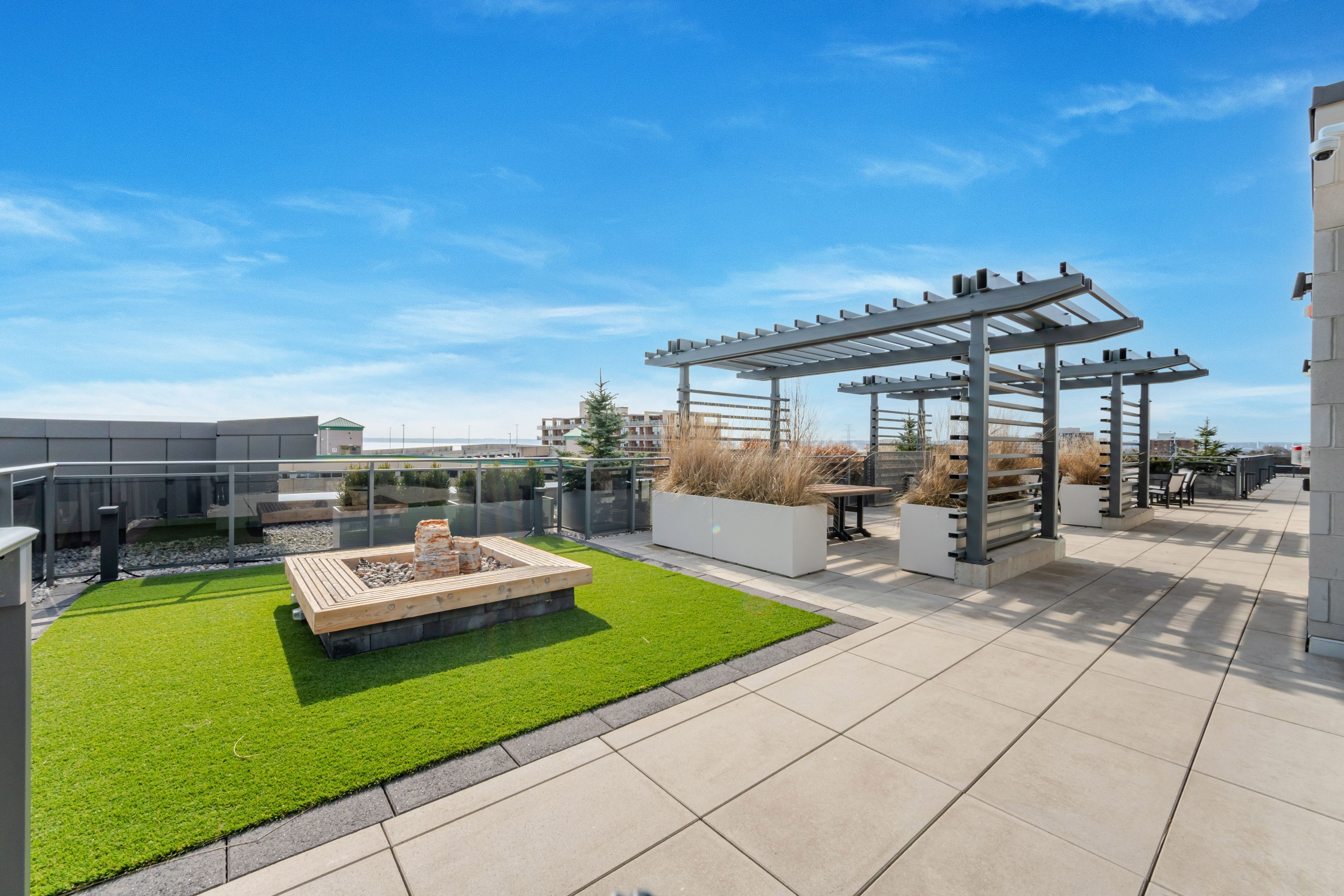 • Amenities include concierge service, gym, and rooftop patio with views.
