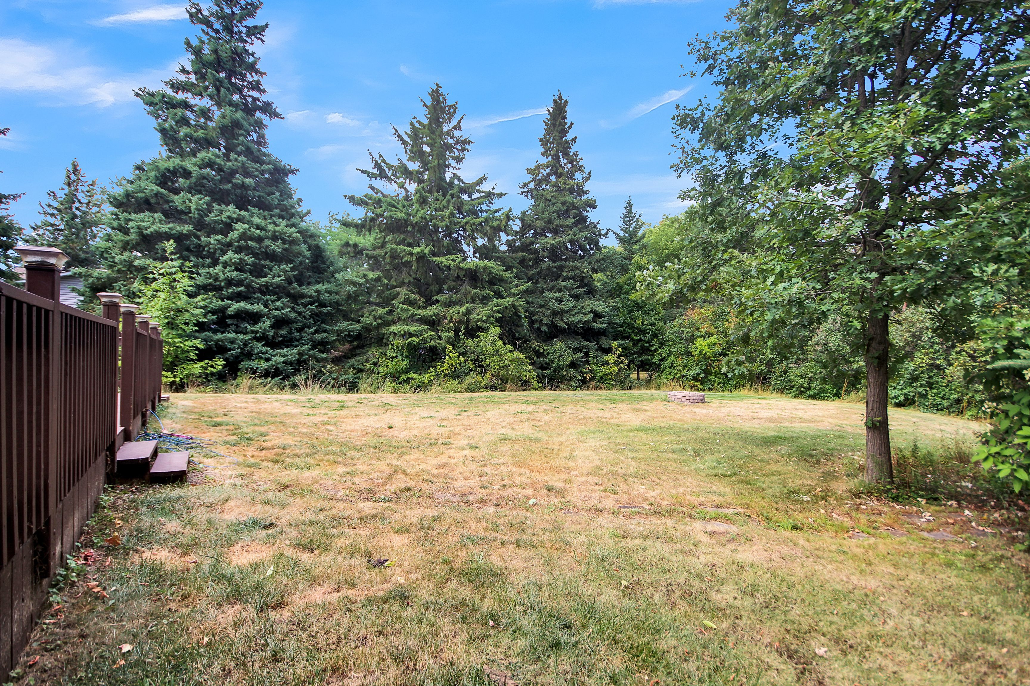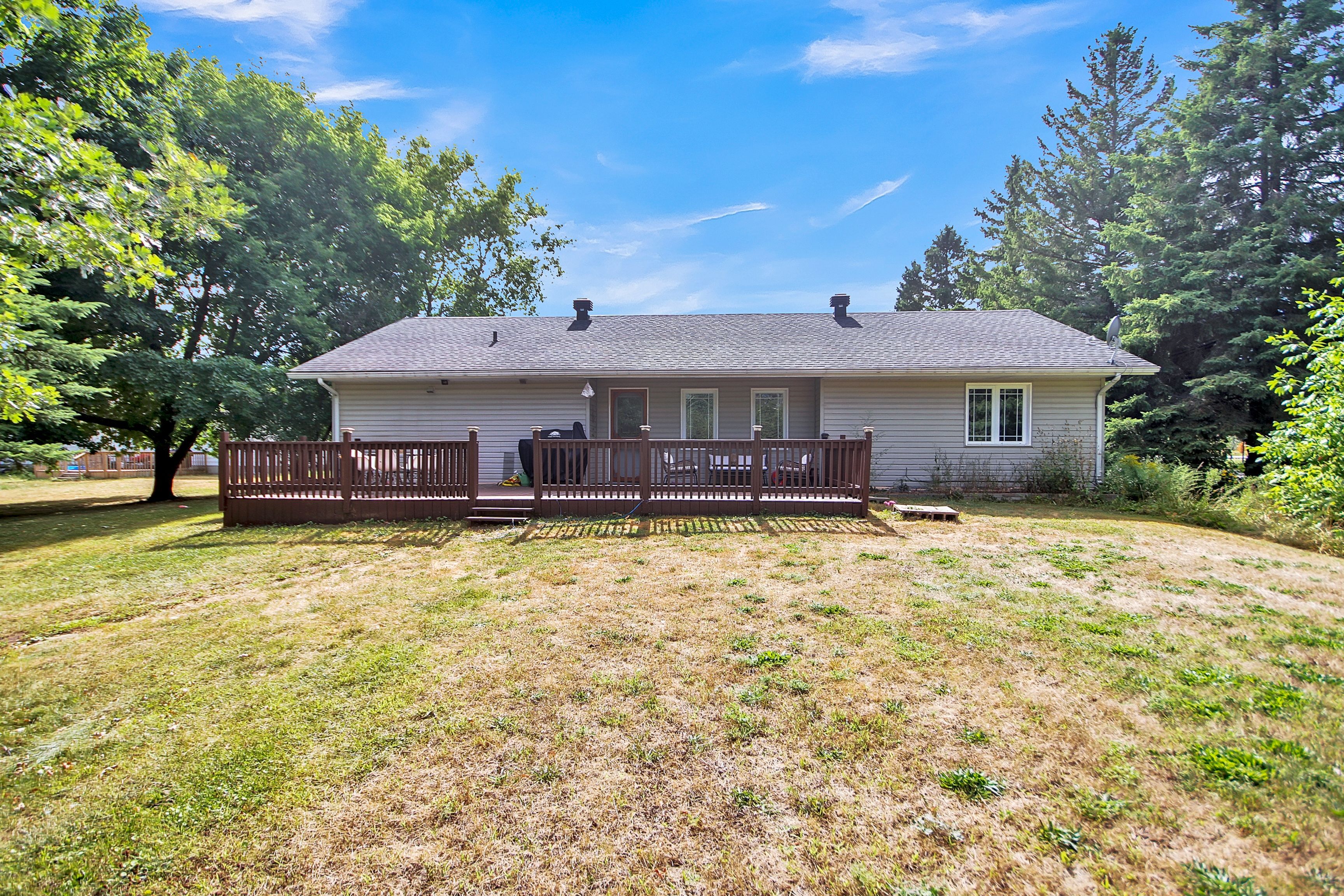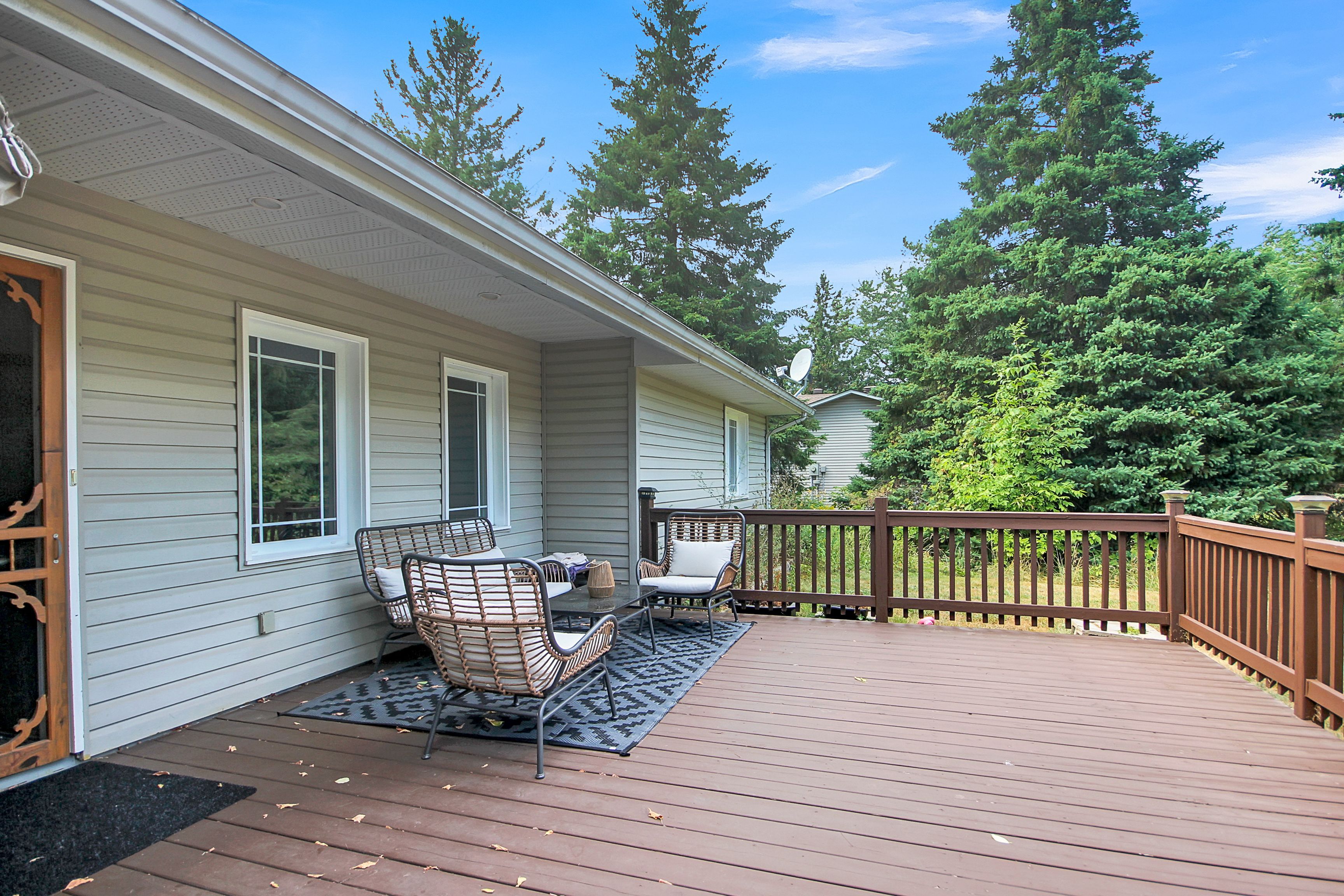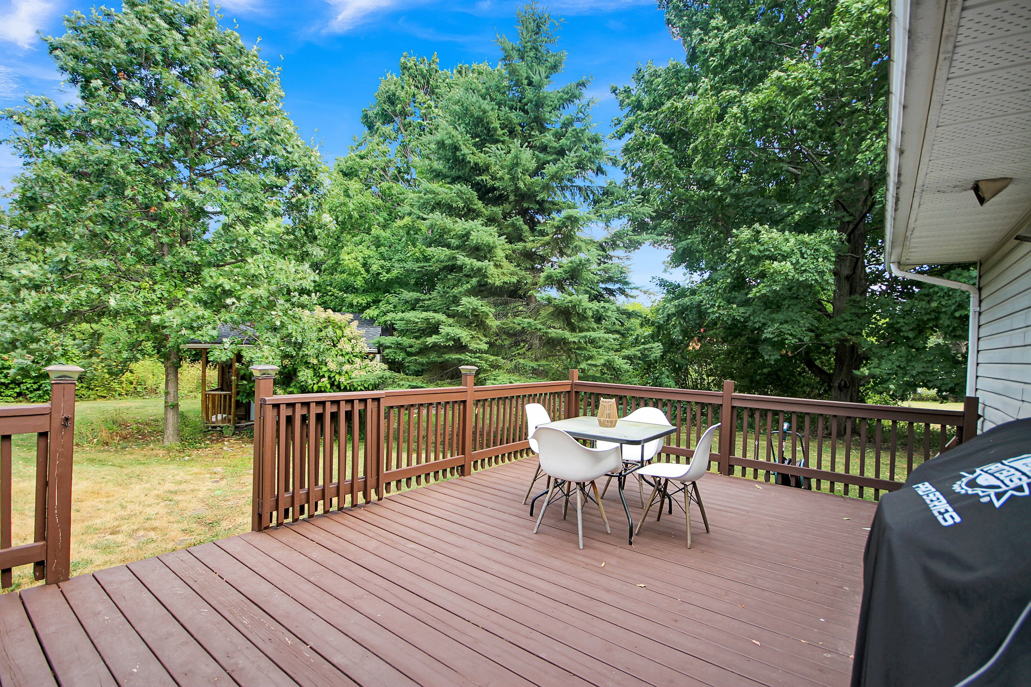 • Large private backyard with a deck, ideal for outdoor activities.