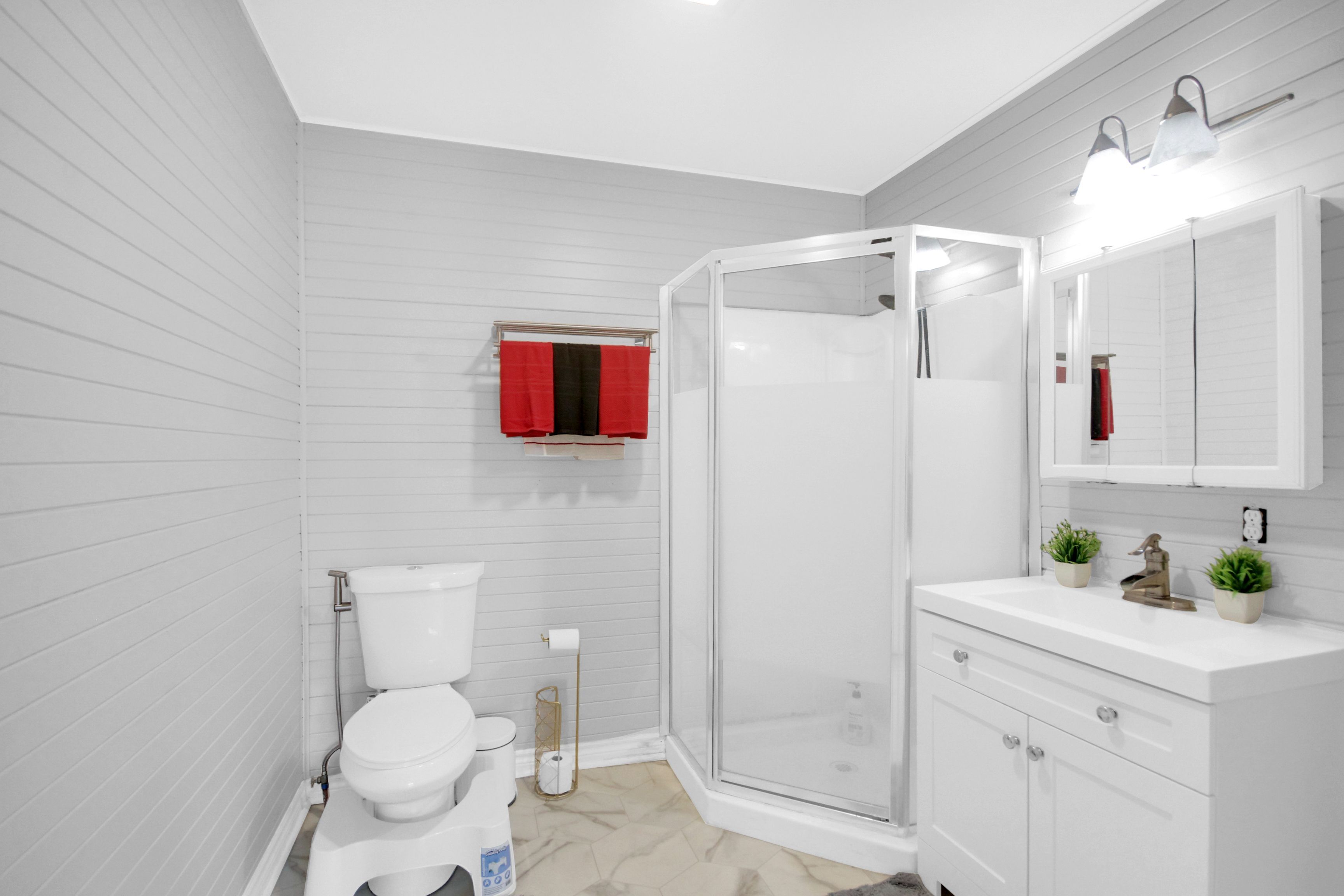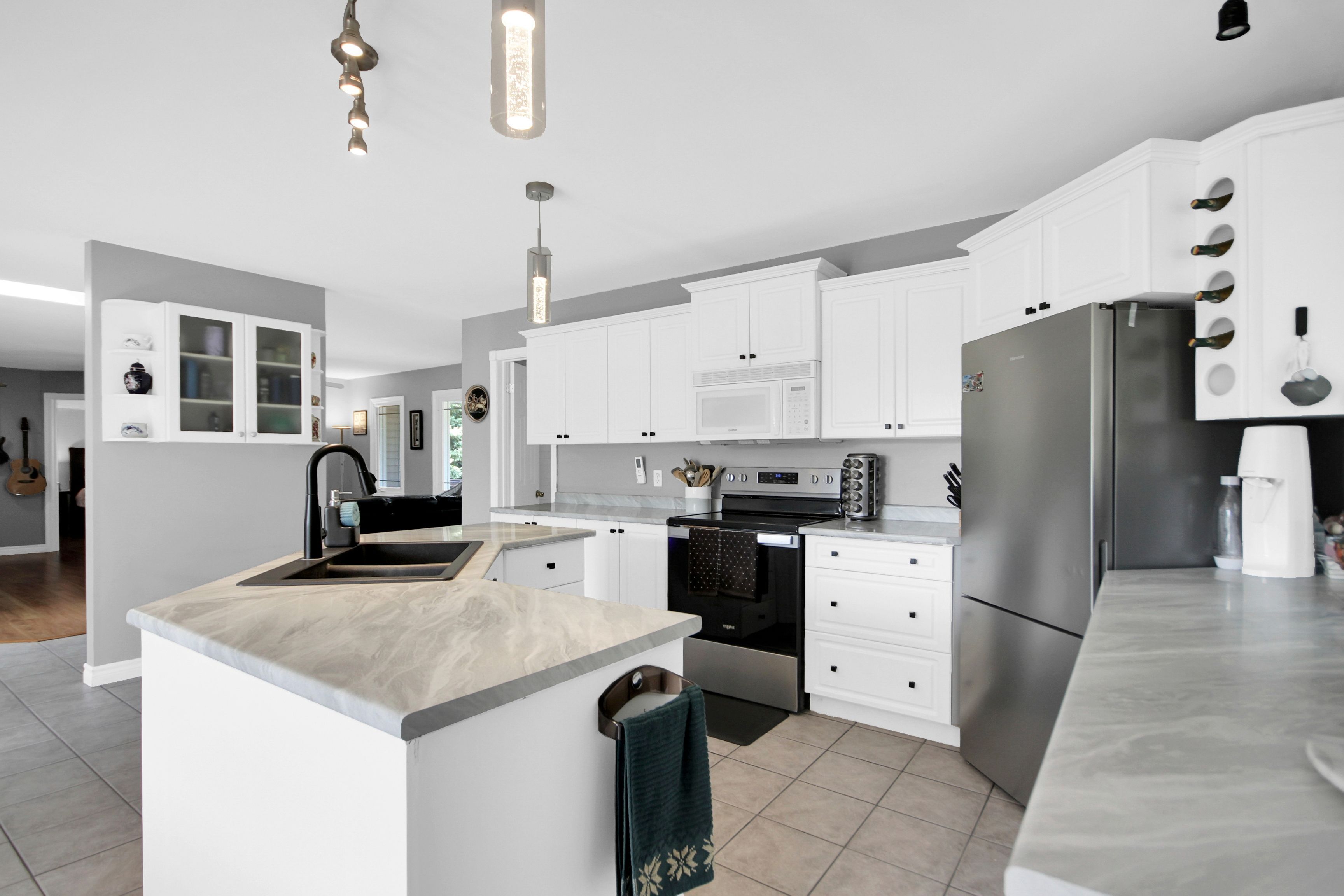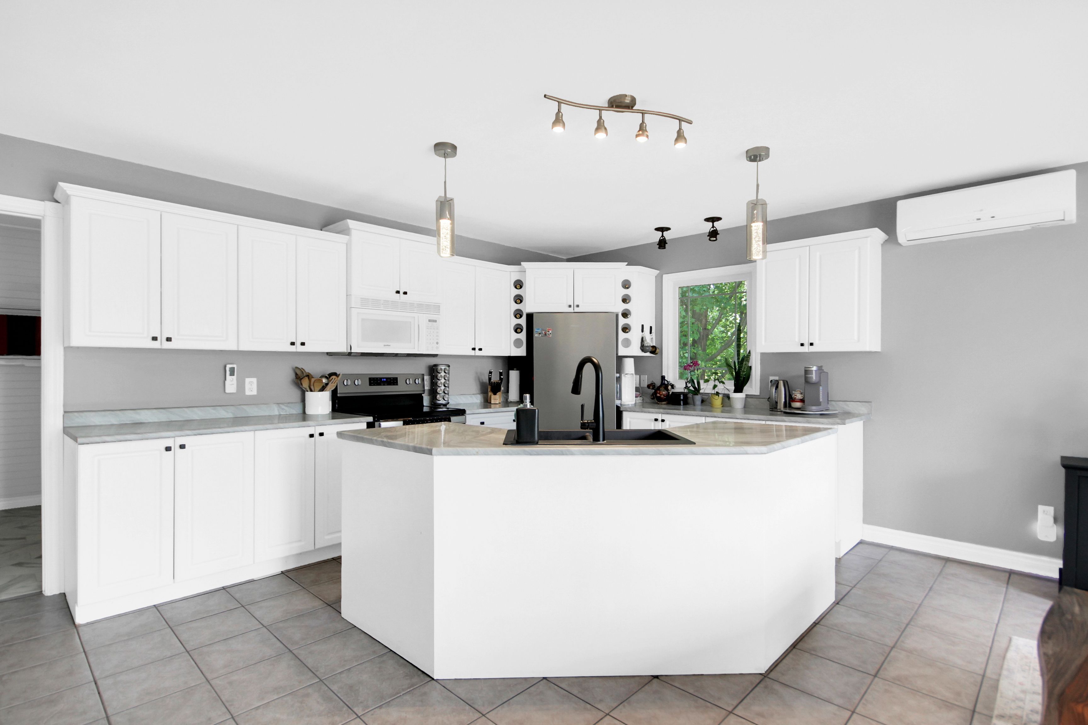 • Oversized garage with heated floors and extra storage space.