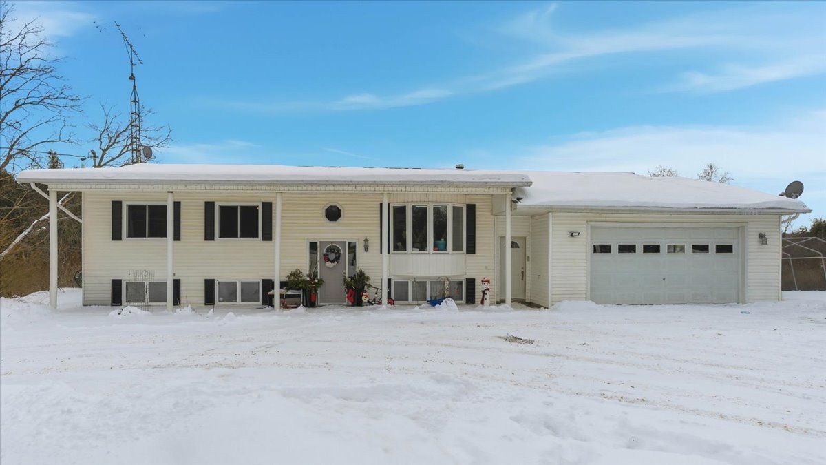 Set on a picturesque country lot, this raised bungalow at 1442 quin-mo-lac road offers comfortable rural living just outside the town of tweed. The home features a generous layout with seven bedrooms, making it well-suited for larger families, home-based living, or those seeking extra space. The main living areas are bright and functional, with a formal dining room, a well-equipped kitchen, a cozy living room and bonus indoor man-cave! Heating is provided by propane forced air and 2 wood stoves for flexibility, complemented by a metal roof and concrete foundation. The attached garage adds convenience and ample storage. Outside, enjoy landscaped grounds, established gardens, an above-ground pool (2022), and a covered deck with hot tub (2022). A peaceful creek borders part of the property, enhancing the natural setting.