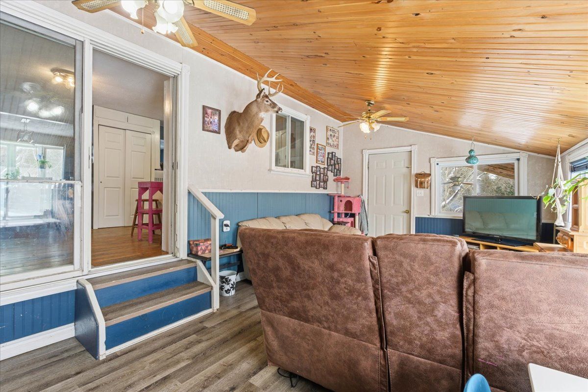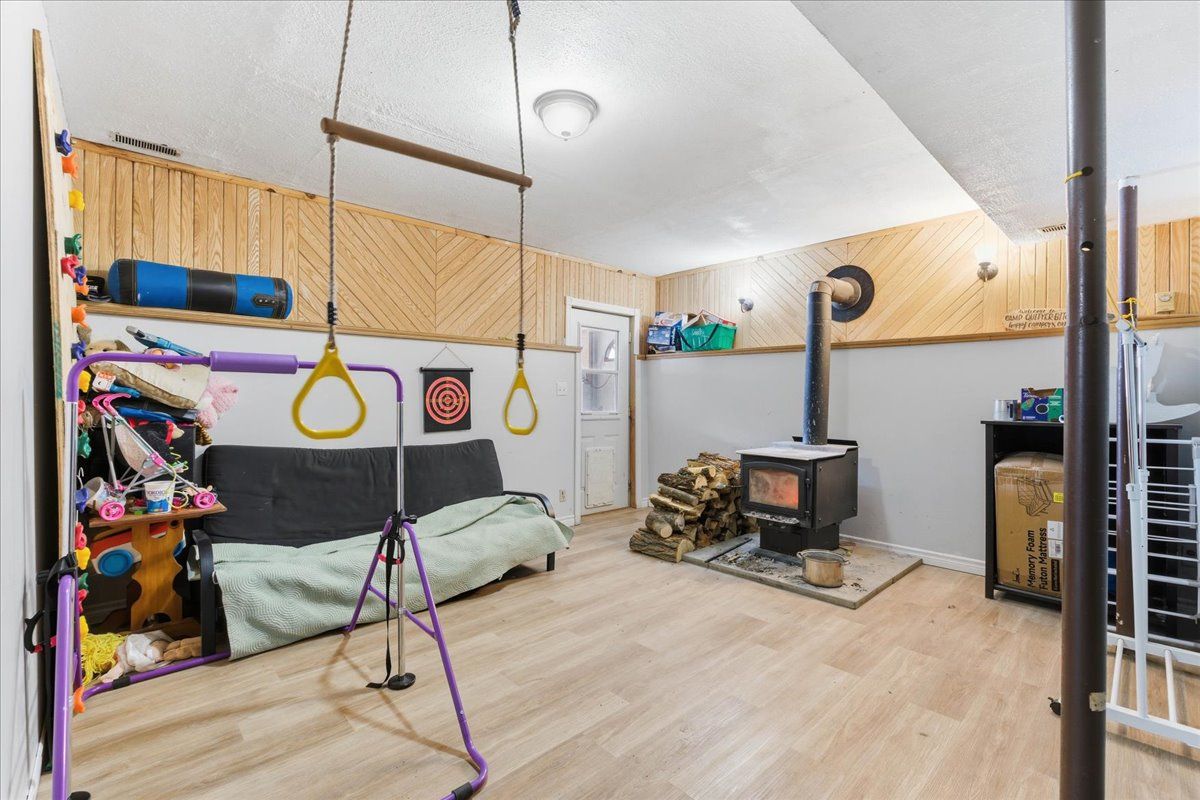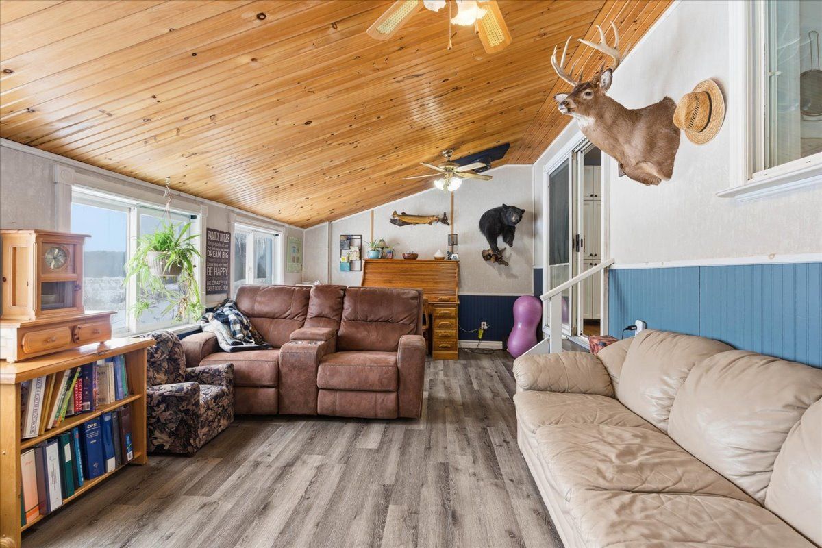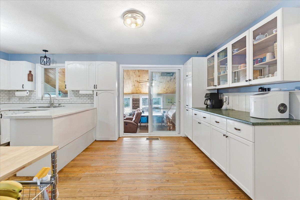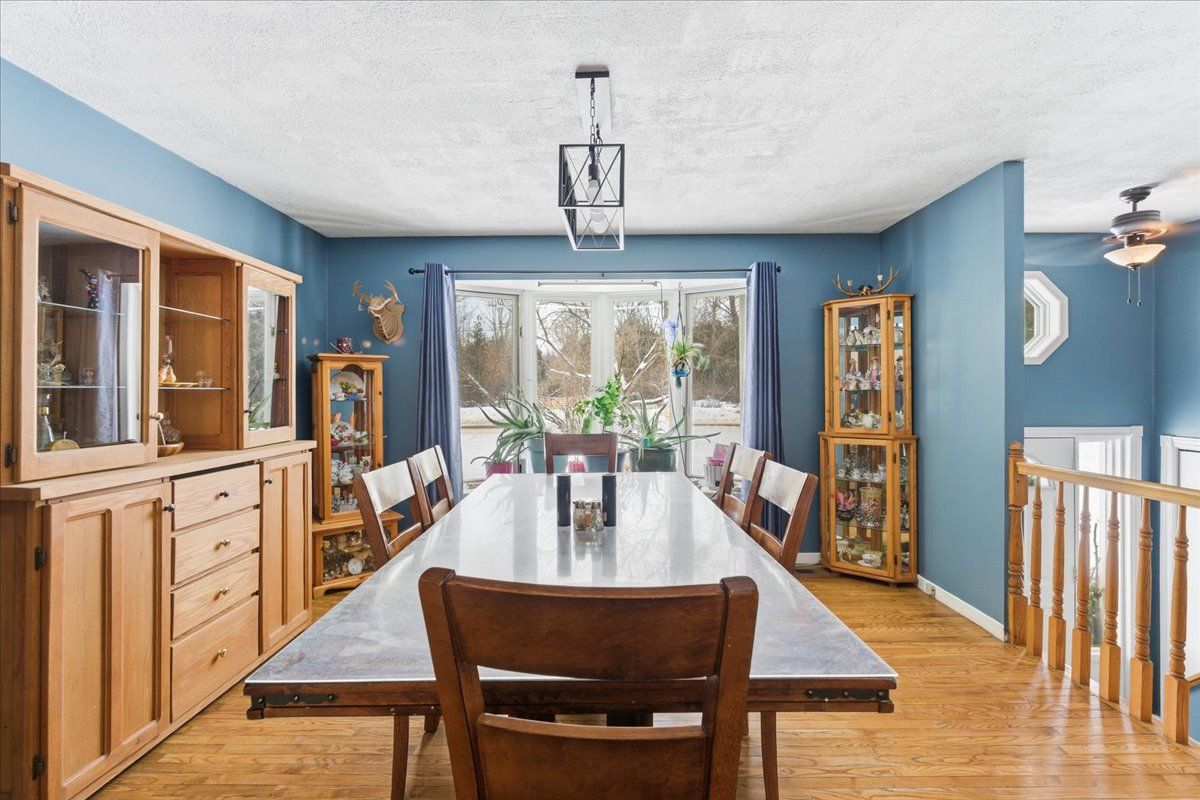 Set on a picturesque country lot, this raised bungalow at 1442 quin-mo-lac road offers comfortable rural living just outside the town of tweed. The home features a generous layout with seven bedrooms, making it well-suited for larger families, home-based living, or those seeking extra space. The main living areas are bright and functional, with a formal dining room, a well-equipped kitchen, a cozy living room and bonus indoor man-cave! Heating is provided by propane forced air and 2 wood stoves for flexibility ,complemented by a metal roof and concrete foundation. The attached garage adds convenience and ample storage. Outside, enjoy landscaped grounds, established gardens, an above-ground pool (2022), and a covered deck with hot tub (2022). A peaceful creek borders part of the property, enhancing the natural setting.