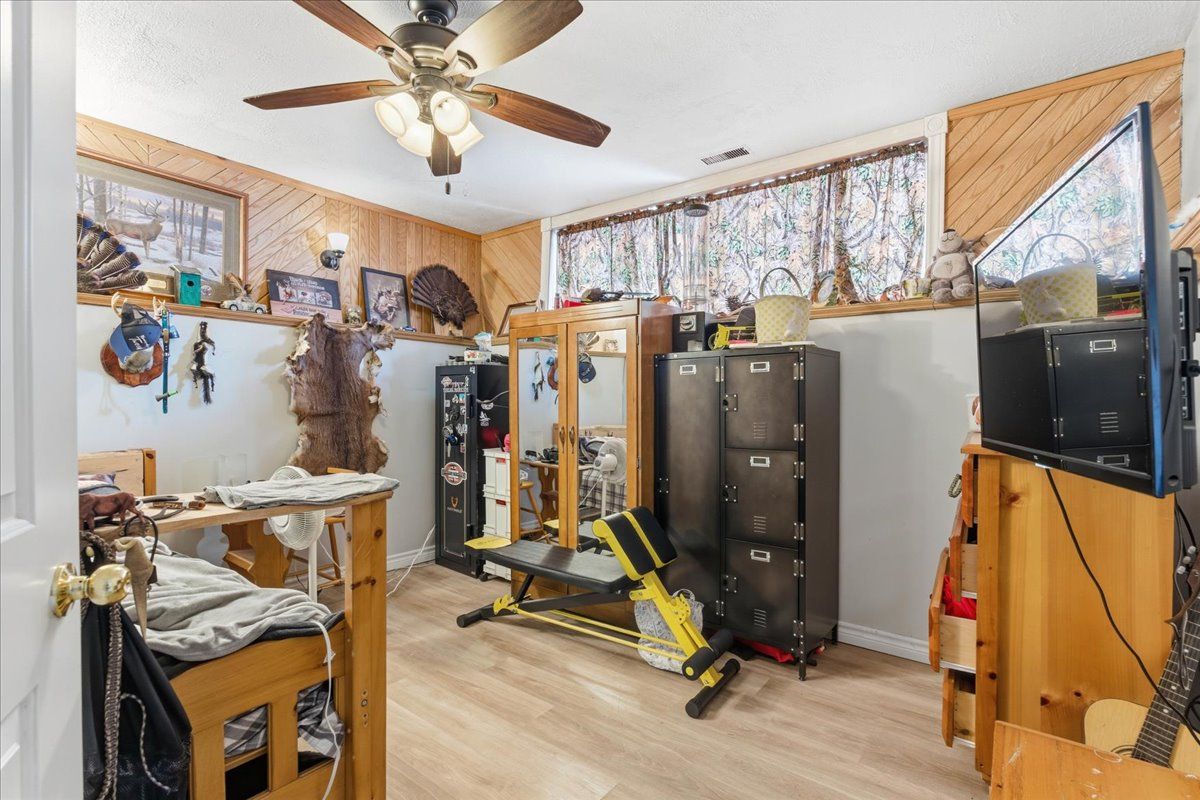 • Indoor man-cave offers a unique bonus space for relaxation and entertainment.