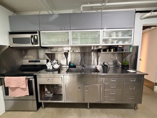 Studio loft for lease in toronto. Exceptional 2,544 sq ft industrial-style loft space ideally suited for office, creative studio, or boutique retail use. Featuring dramatic 18' ceilings with exposed concrete joists and ductwork, this striking space delivers an authentic loft aesthetic with sophisticated urban character. The south-facing unit is filled with natural light through oversized industrial windows and features a juliette balcony. The open-concept main level offers versatile space ideal for workstations, showroom displays, or client-facing retail layouts, complemented by a sleek stainless steel eat-in kitchen. The expanded second level includes three spacious private rooms perfect for offices, meeting rooms, or studio spaces, along with a four-piece bathroom overlooking the main floor through a dramatic floor-to-ceiling glass partition. Additional highlights include in-suite laundry, storage, and two dedicated parking spaces. Situated in a vibrant, well-connected toronto location with convenient access to transit and major routes. Beautifully designed space from top to bottom. An impressive setting to welcome clients and customers. Showroom has a proven history of strong sales volume, an outstanding opportunity for businesses seeking a distinctive, high-impact space.