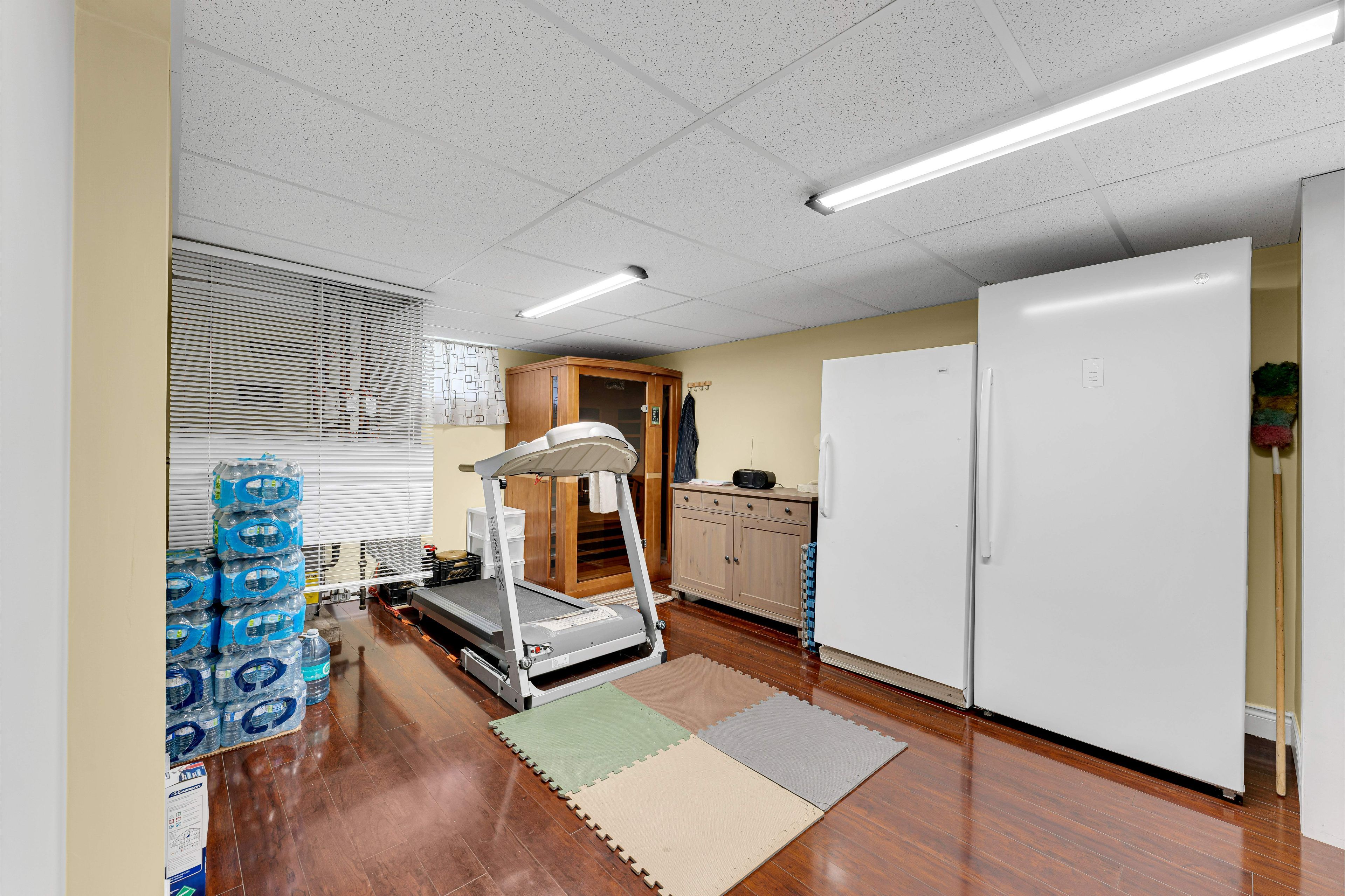 • Fully finished basement with gym area, sauna, and extra storage space.