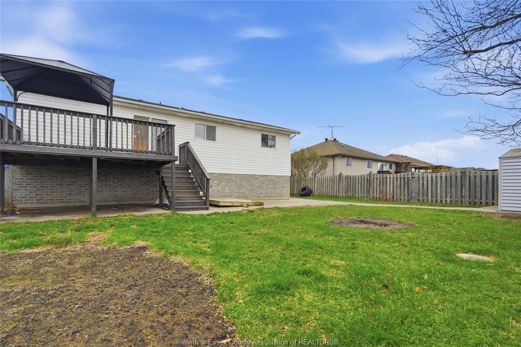 • Fully fenced backyard with a deck for outdoor enjoyment.