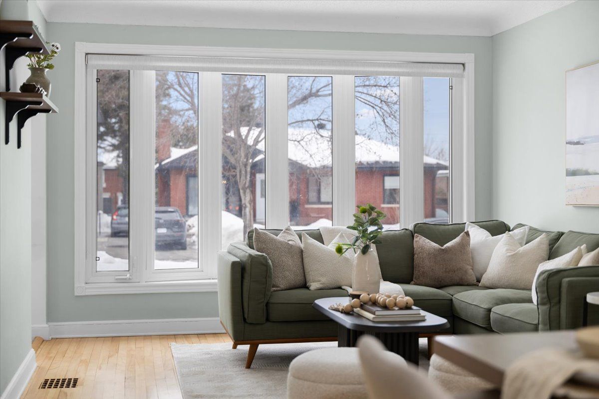 Tucked away on a quiet street in carlington, this 1 1/2 storey detached home sits on a generous lot with mature greenery in a fantastic neighbourhood! Curb appeal shines with new concrete front steps and walkway (2024) and updated windows and roof (2015). Inside, warm hardwood flows through bright living and dining areas, with a south facing patio door letting in plenty of natural light. The kitchen offers ample prep space and storage, while the flexible main floor space works perfectly as a home office or guest bedroom. Upstairs features two additional bedrooms and a renovated main bathroom, and the finished lower level adds a recreation area, fourth bedroom and full bathroom. Key updates include a 100-amp breaker panel (2023), new r60 attic insulation (2023), new washer/dryer (2023) and a new dishwasher (2024). Outside, the private patio and backyard are ideal for relaxing or entertaining, and the detached garage provides additional parking or a workshop space. With easy access to bike paths, parks, and the experimental farm, this home truly has it all!