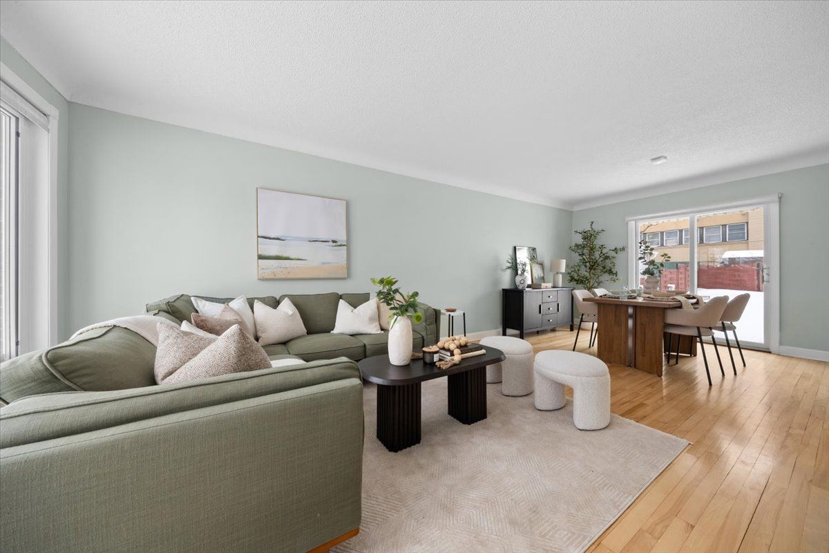 • Bright living and dining areas with warm hardwood flooring throughout.