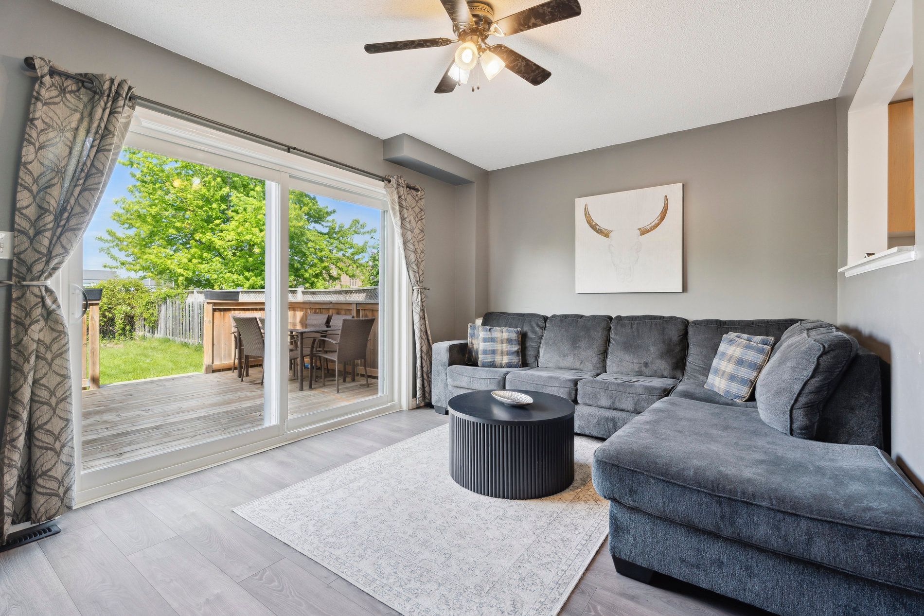 Attention first-time home buyers! Motivated seller ~~~this charming freehold townhome is an incredible opportunity to step into the real estate market. Ideally located just minutes from shopping, restaurants, schools, and beautiful lake simcoe perfect for summer beach days! This bright and well-maintained home offers 2 spacious bedrooms in an amazing family friendly neighborhood. The kitchen overlooks the living room, which is filled with natural light thanks to a new massive oversized sliding glass door that leads to the backyard. Step outside to a fully permitted deck , a fantastic space for entertaining with no rear neighbors, offering exceptional privacy. The unfinished basement presents a blank canvas, ready for your personal touch and design ideas. The garage has a pass through door to the backyard making lawn maintenance a breeze. Don't miss out on this amazing starter home in a prime location!