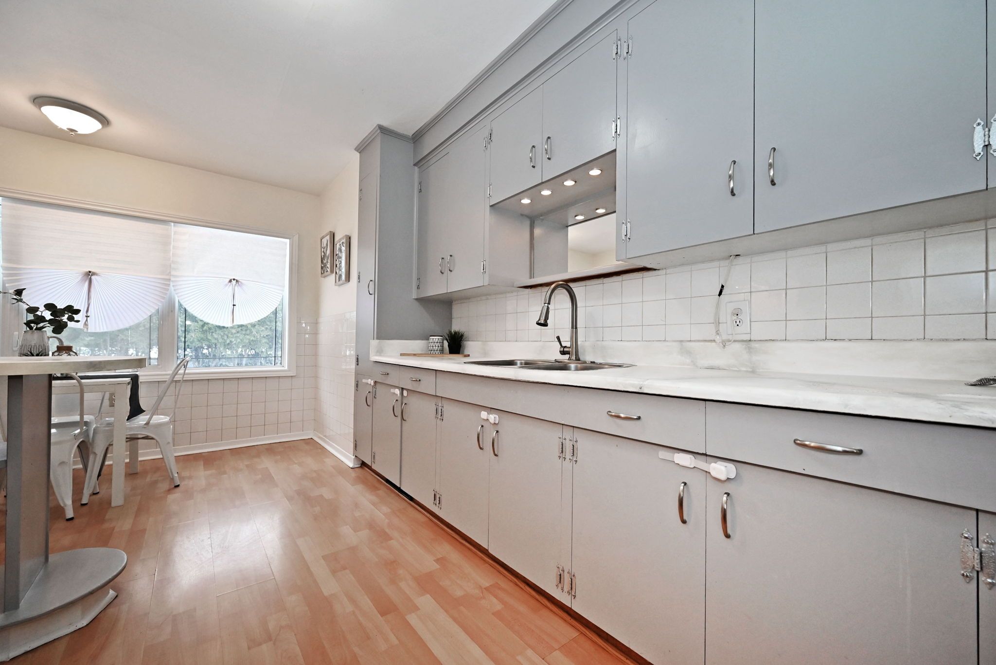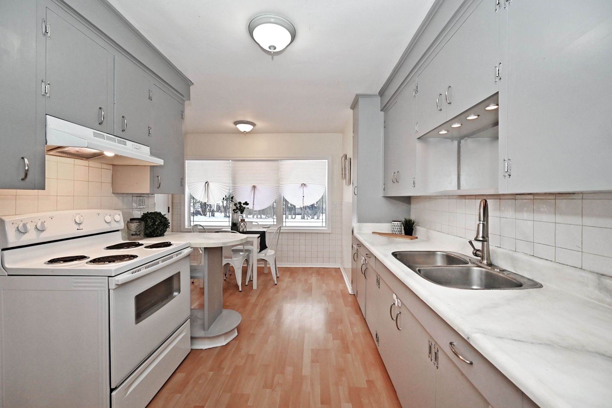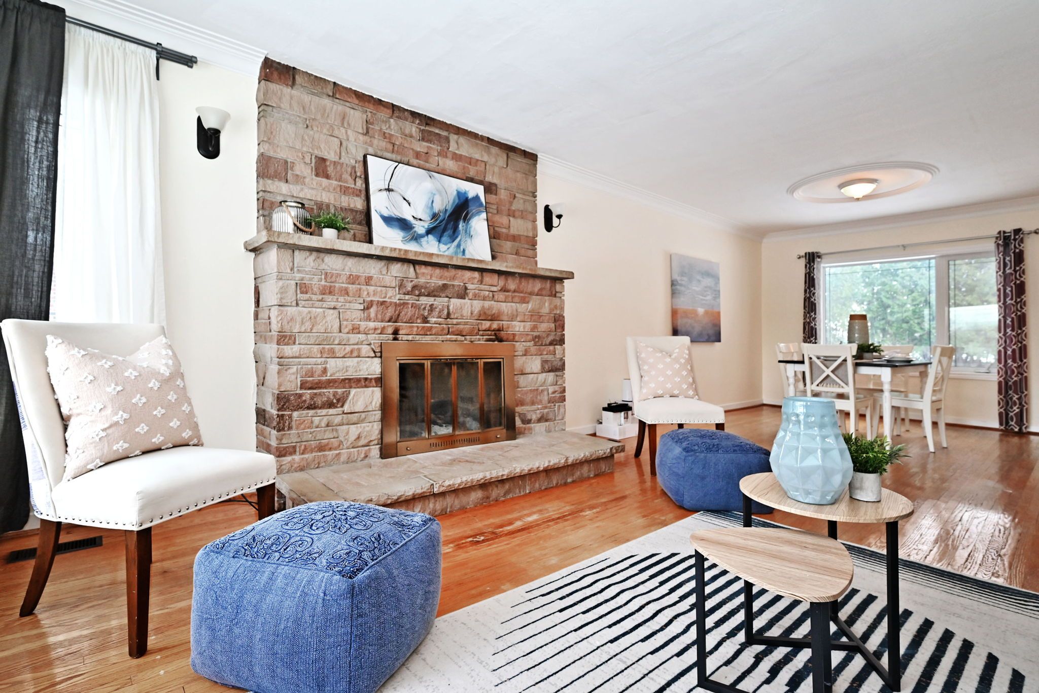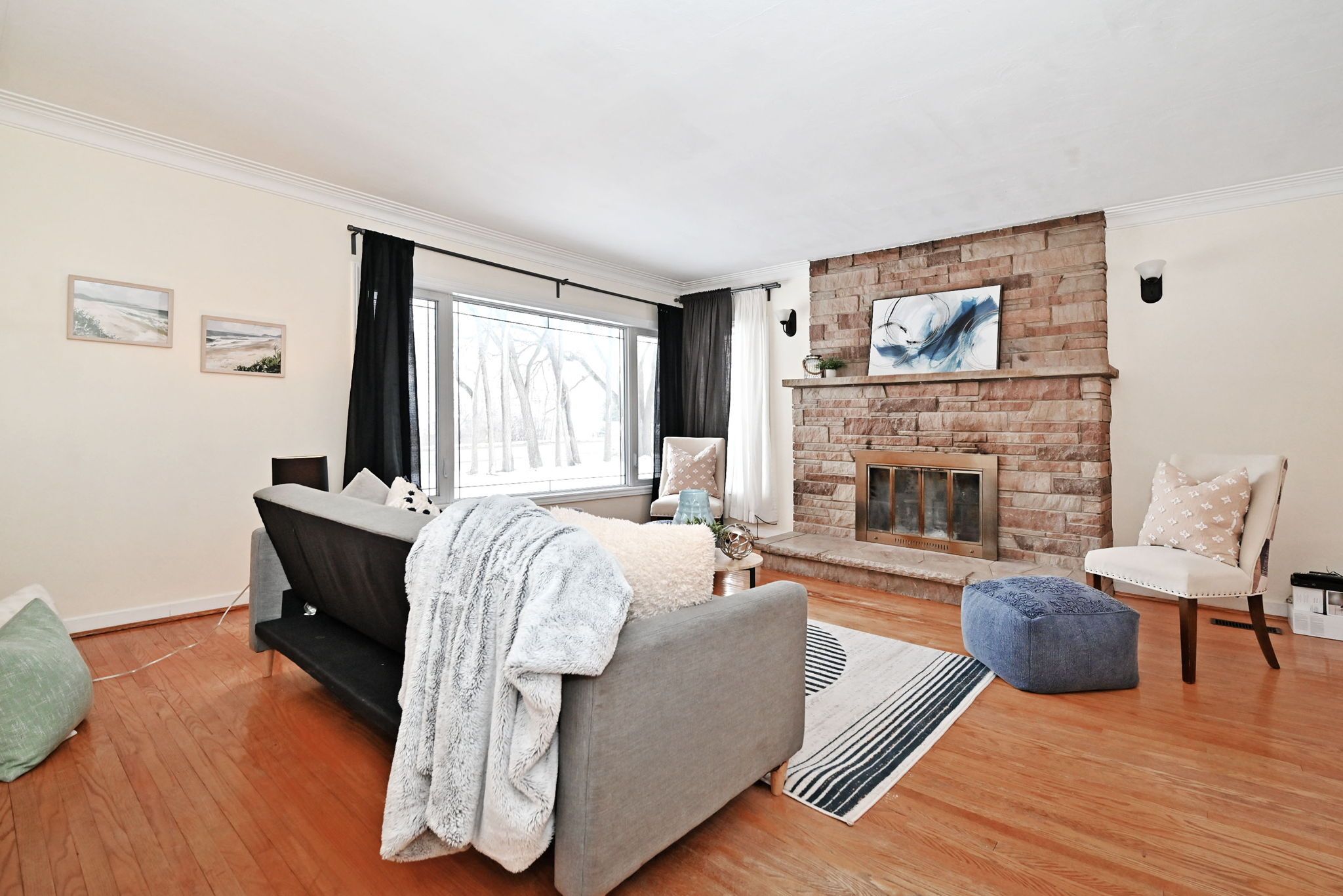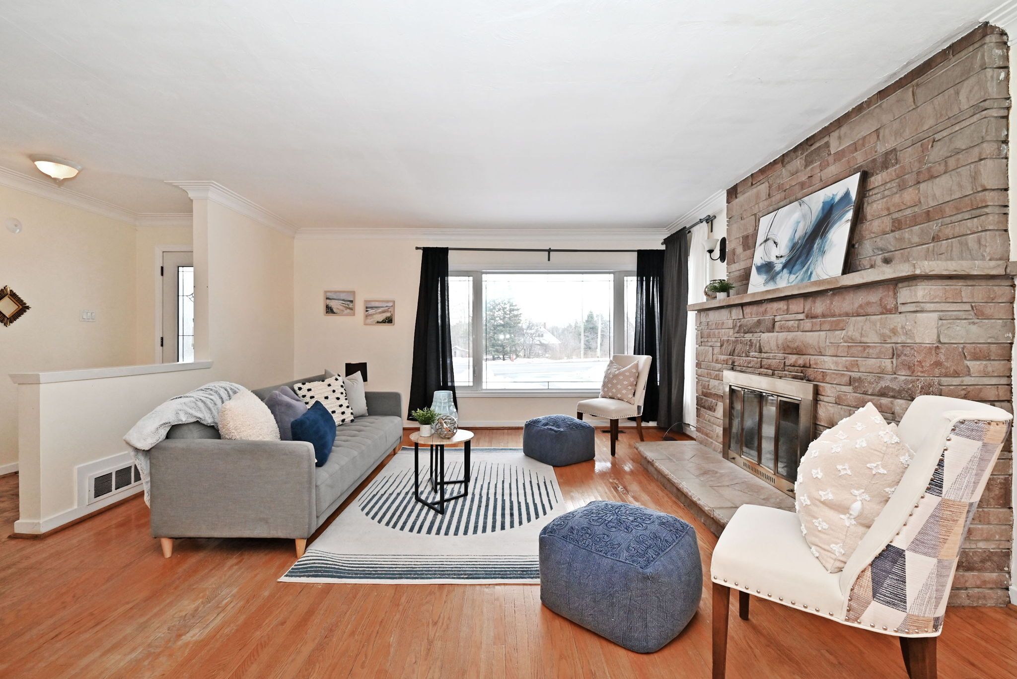 • Strip hardwood flooring throughout adds a classic touch.