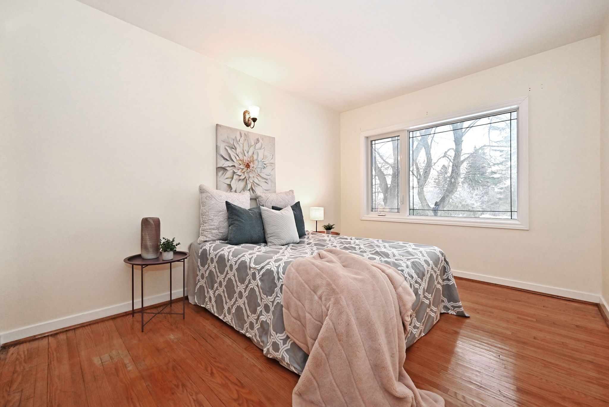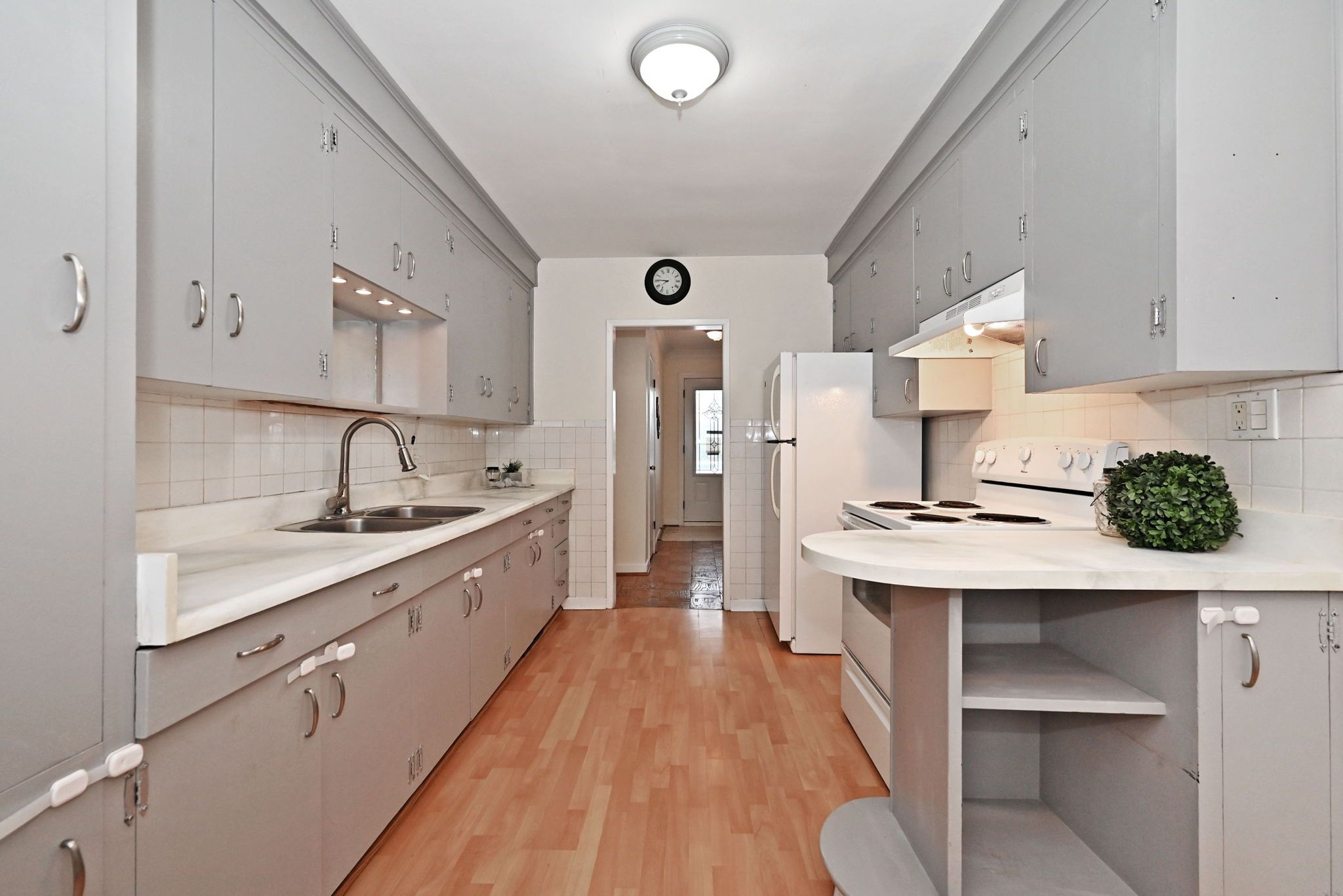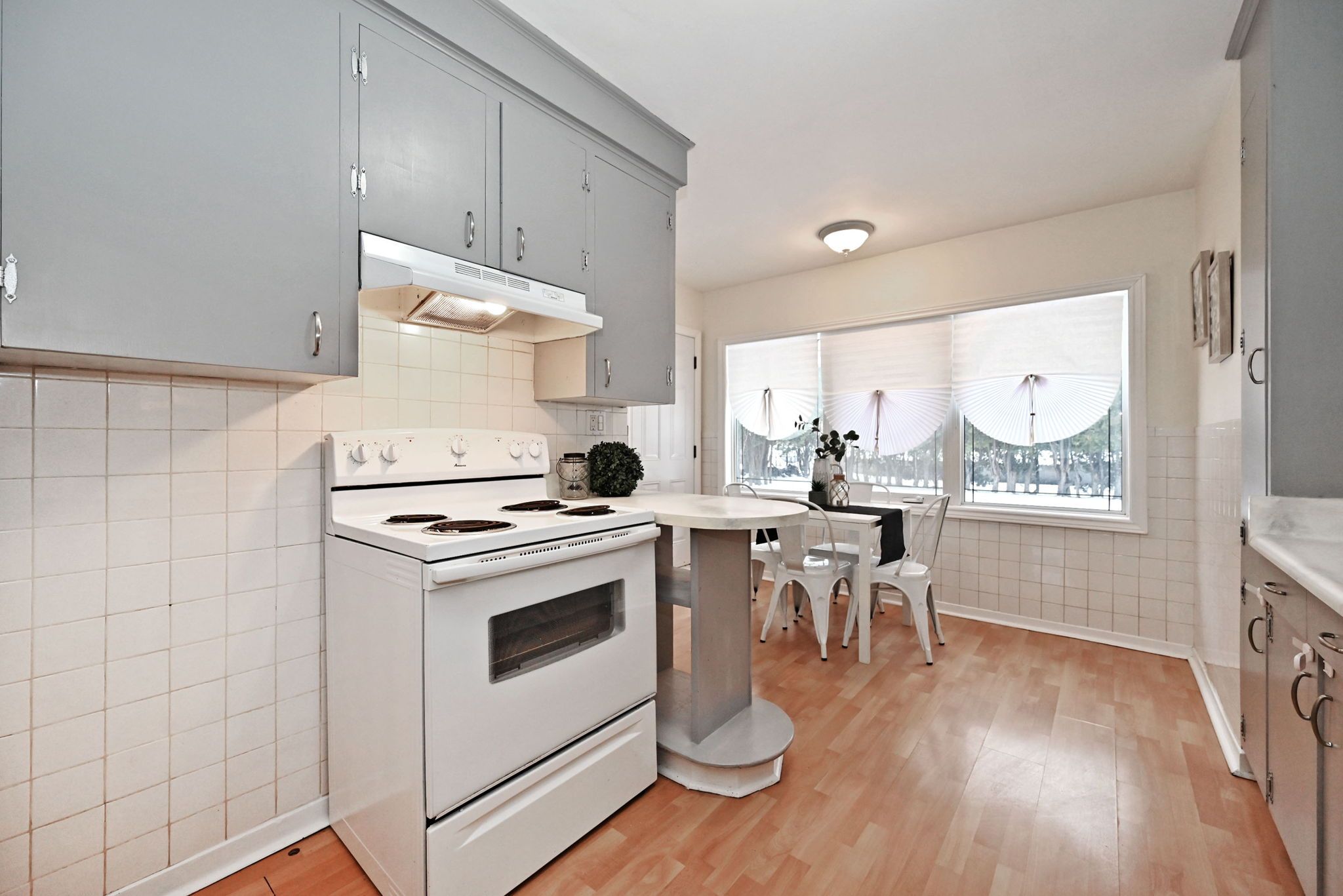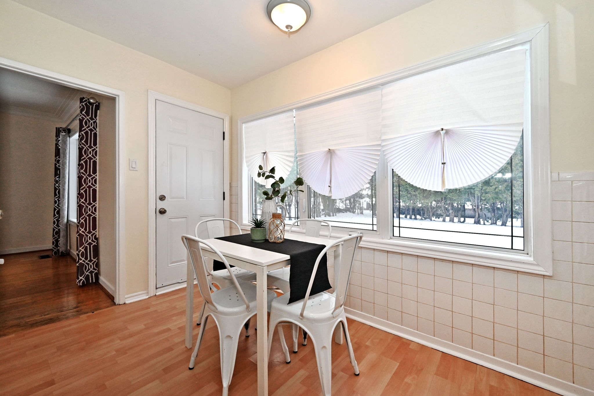 • Strip hardwood flooring throughout adds a classic touch.