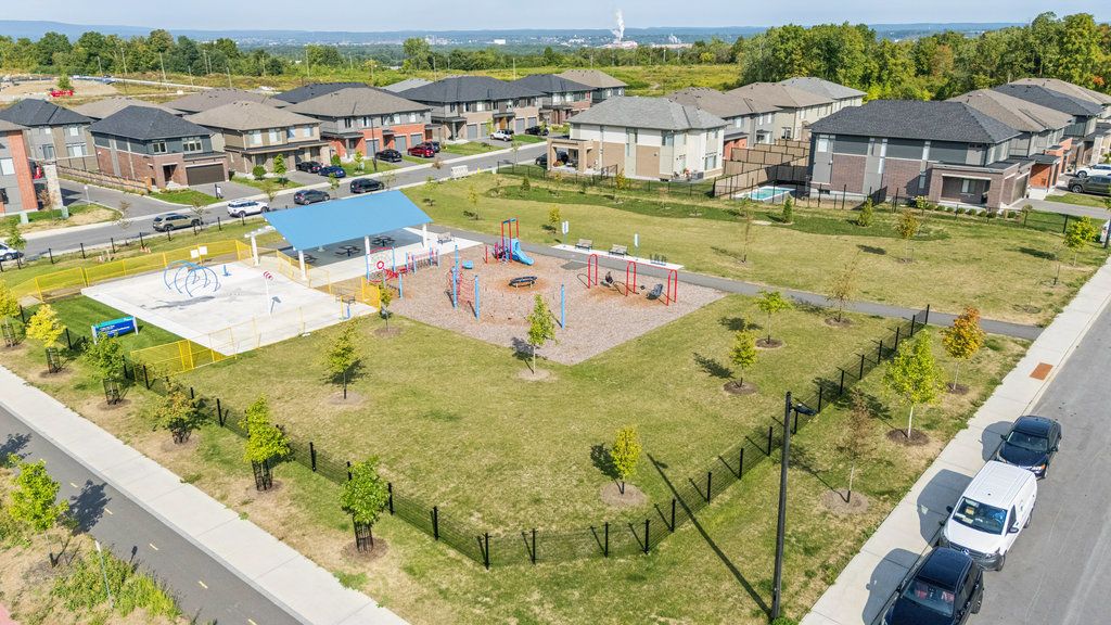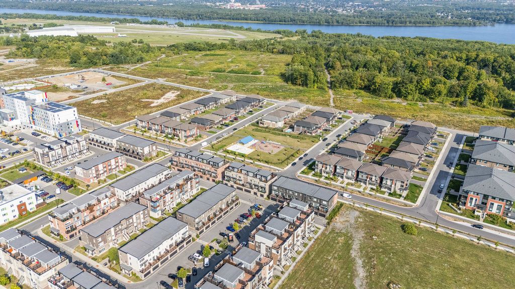 This executive townhome is the largest on offer and will impress you at every turn. 4 bedrooms, 3. 5 bathrooms, 2 car garage and spectacular 3rd floor terraces. Perfect main floor living w/ the kitchen at the heart of the home, quartz waterfall island, gorgeous backsplash, designer lights and ss appliances. Modern, yet comfortable. Spacious dining area w/ a view to the park across the street and a living room w/ access to a south facing balcony. Upstairs features the primary bedroom w/ walk-in closet and ensuite, two more bedrooms, full bath and 2nd floor laundry. The 3rd floor rooftop terrace w/ views to the gatineau hills and park across the street is the perfect urban oasis. Downstairs is a 4th bedroom that can be a family room, gym or home office, full bath and access to the 2 car garage. Snow and lawn care taken care via condo fee. 200 amp service. Come see this home today!