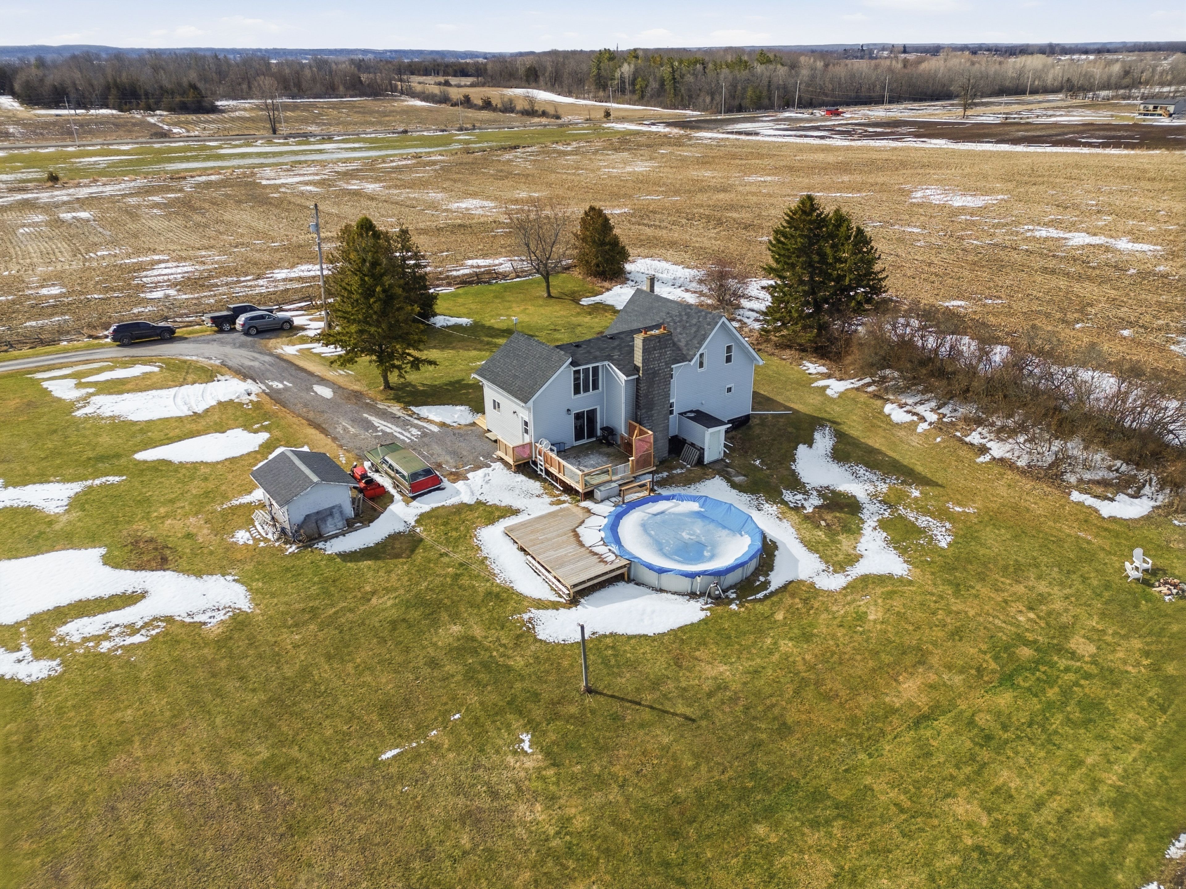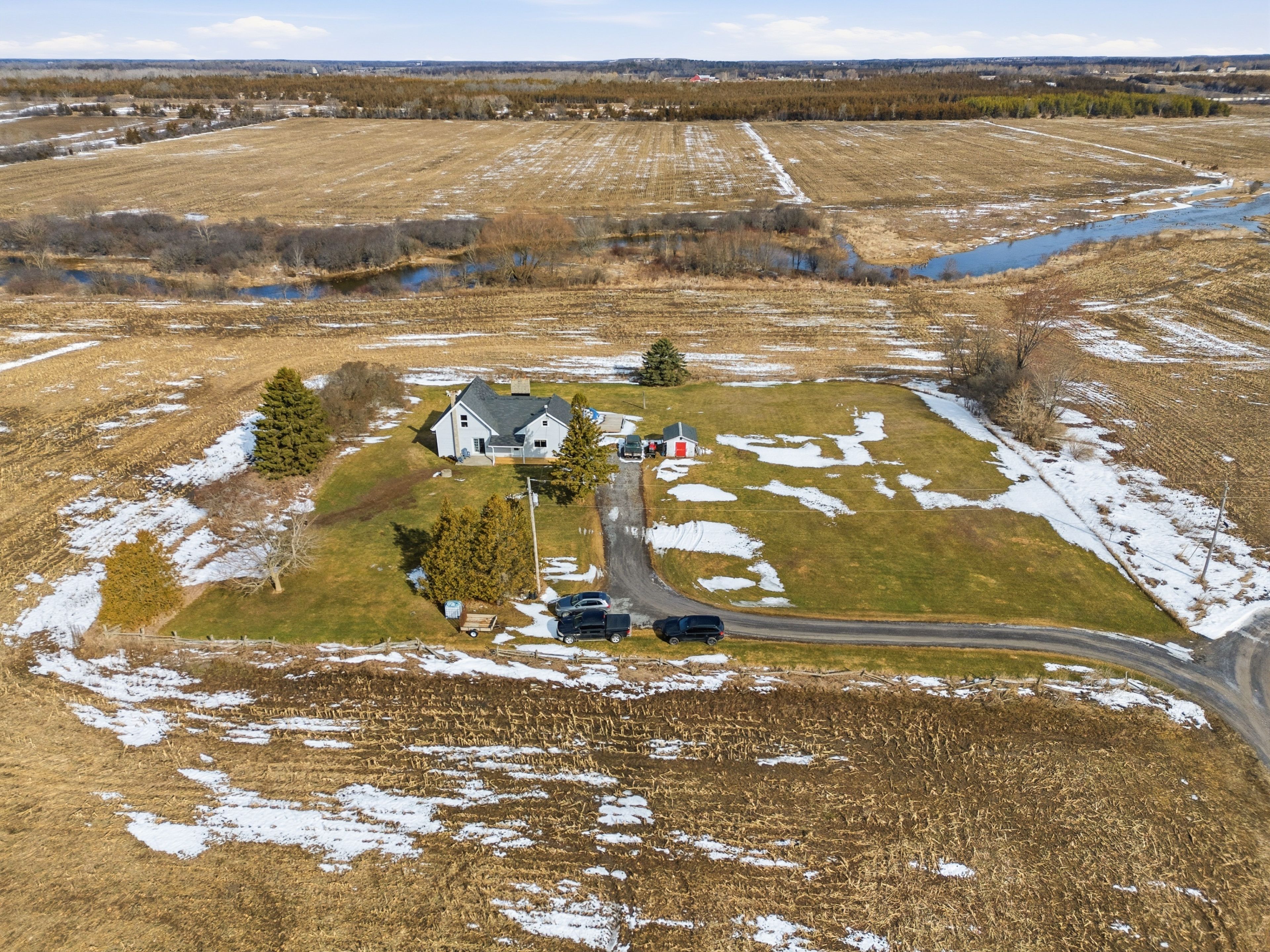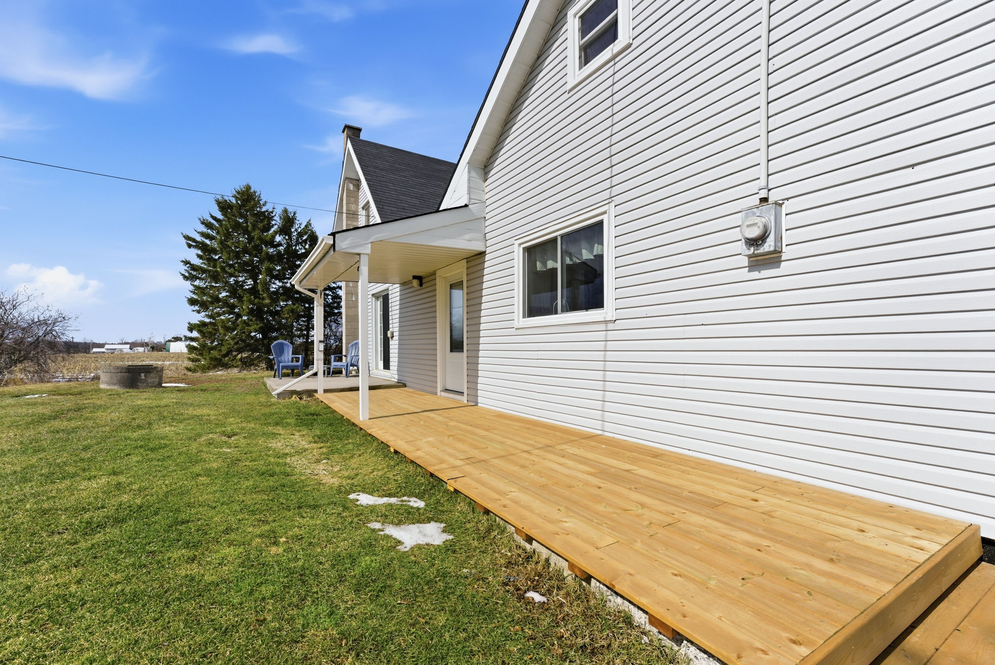Welcome to this beautifully updated farmhouse that perfectly blends timeless charm with modern convenience. This inviting 3-bedroom, 1. 5-bath home has been thoughtfully renovated throughout, offering a move-in-ready opportunity in a peaceful setting. The main floor features a bright and functional layout, highlighted by a stunning new kitchen with updated finishes and plenty of space for cooking and gathering. Convenient main floor laundry and full bathroom add to the home's practicality for everyday living. Upstairs, you'll find three comfortable bedrooms and half bathroom, plus a bonus living space, creating a cozy and private retreat for family or guests. Step outside to enjoy your own private yard-perfect for relaxing, entertaining, or soaking up the summer sun by the pool. Surrounded by mature greenery, fields, and views of the creek, this outdoor space offers both tranquility and privacy. Whether you're looking for country charm with modern updates or a serene place to call home, this farmhouse delivers the best of both worlds, while being located only minutes from town, and the 401.