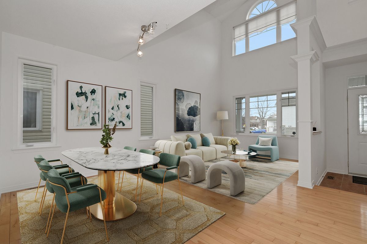 Discover this stunning 4 bedroom, 4 bathroom home in a highly sought-after stittsville community, ideally located near parks, schools, shopping, and scenic trails. Step inside to an impressive open to above living room filled with natural light, soaring ceilings, and elegant hardwood flooring throughout. A stylish butler's station connects seamlessly to the gourmet kitchen, complete with granite countertops, stainless steel appliances, ample cabinetry, double sinks, and a large island with breakfast seating. Patio doors lead to a beautifully landscaped backyard featuring a spacious multi-level deck-perfect for entertaining. The inviting family room offers a cozy gas fireplace, creating the ideal space to relax. A convenient powder room and well-designed laundry area with custom storage complete the main level. Upstairs, a versatile loft provides the perfect home office or lounge space. The primary suite features a walk-in closet and a spa-like ensuite, complemented by two additional bedrooms and a full bathroom. The fully finished basement is an entertainer's dream with a large recreation area, stone-accented fireplace, wet bar with wine fridge, and plush carpeting. A fourth bedroom with walk-in closet and adjacent full bathroom adds excellent flexibility for guests or extended family. Outside, enjoy a private, fully fenced yard with a landscaped setting and multi-level deck designed for outdoor living. A perfect blend of elegance, comfort, and functionality-this home is truly move-in ready. Some photos have been virtually staged.