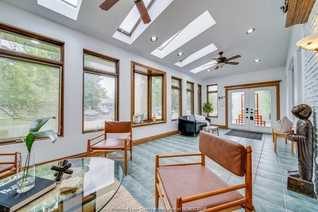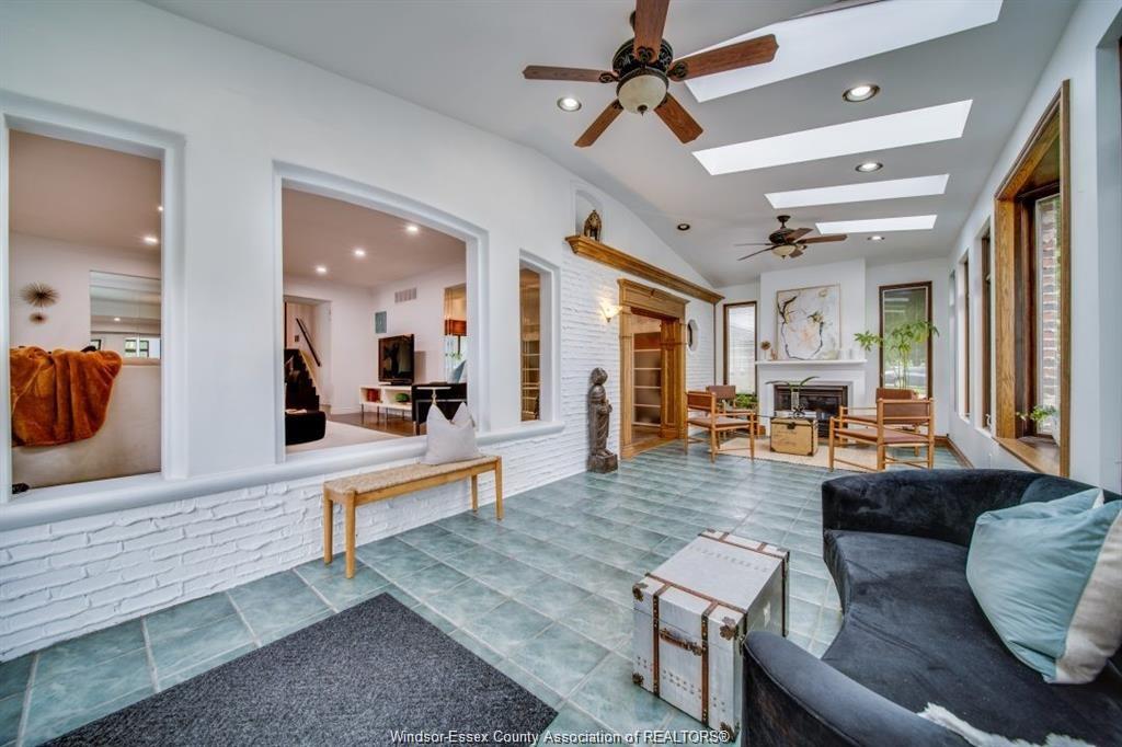 Enjoy this impressive tecumseh home situated near riverside drive. You're close to 4 local parks, several schools, and all amenities. This 4-level back split stands out with special additions providing approx 3800 sq ft of living space: a sunroom with fireplace and heated floors, a solarium connected to the kitchen, and a main bedroom featuring a fireplace and juliet balcony. The home offers 4 finished levels containing 3 bedrooms (primary bedroom currently 2 beds converted into 1) and 2 full bathrooms. A walk-out entrance leads to your private backyard retreat, which includes a pool, various entertaining areas, and plenty of lawn space. *interior photos from previous listing, minor changes may have occurred *.