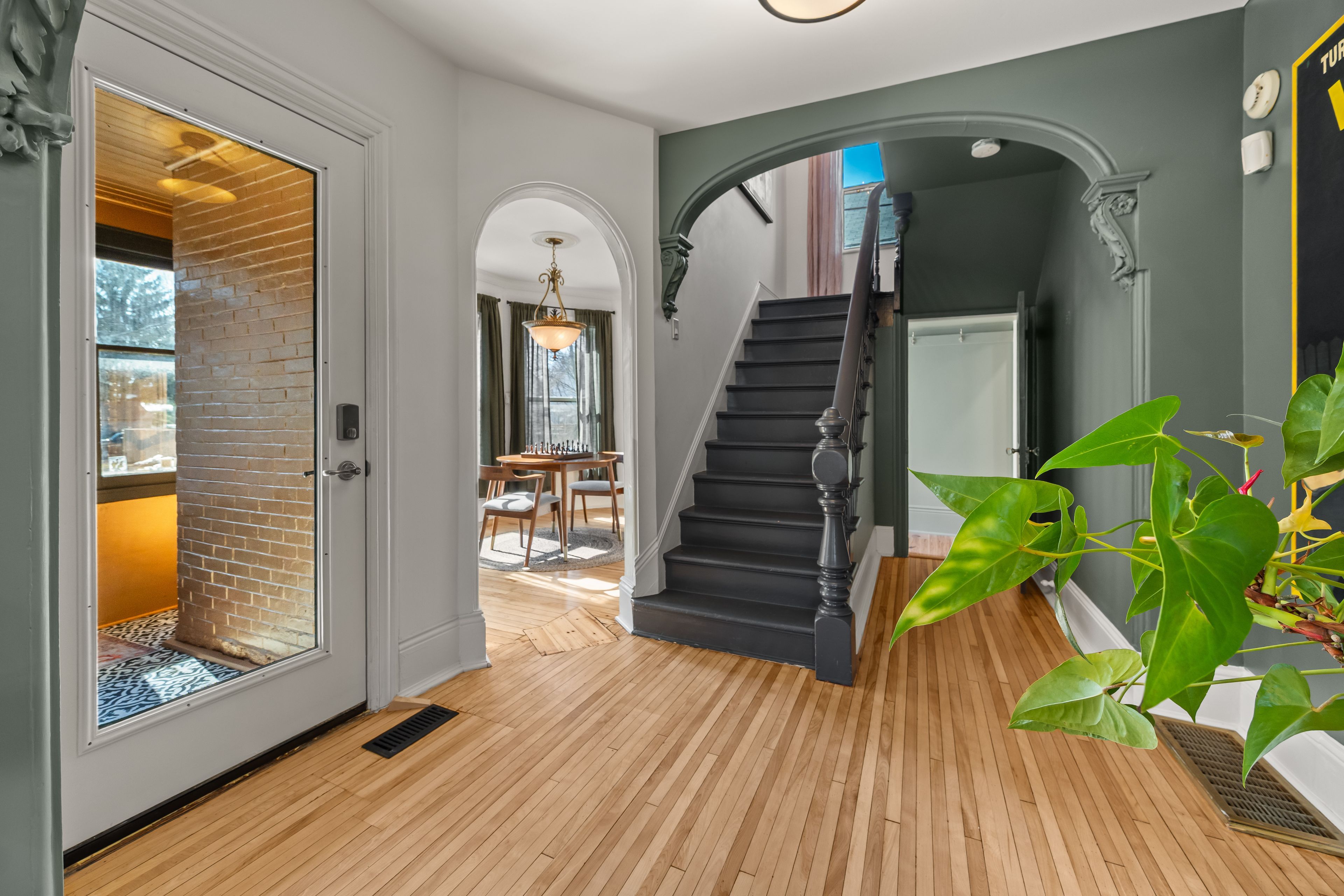 This isn't your average victorian. Built in the early 1900s and reimagined with a bold, artistic lens, this five-bedroom home is full of character, creativity and soul. Thoughtfully updated while preserving it's historic roots, it offers formal living and dining rooms, large open concept kitchen and family room and two fireplaces that anchor the home with warmth. The lofted ceiling in the third floor is a must see and the finished family room in the basement with fireplace is a great unexpected bonus space. The enclosed front porches invites slow mornings, while the backyard and large deck create space to unwind. Out back a large detached triple-car garage with an artist studio opens the door to endless possibilities. Steps to schools, shops, restaurants, the river and everyday essentials - this is a home for someone who wants more than just a place to live. It's a home with a story. Maybe it's yours next.