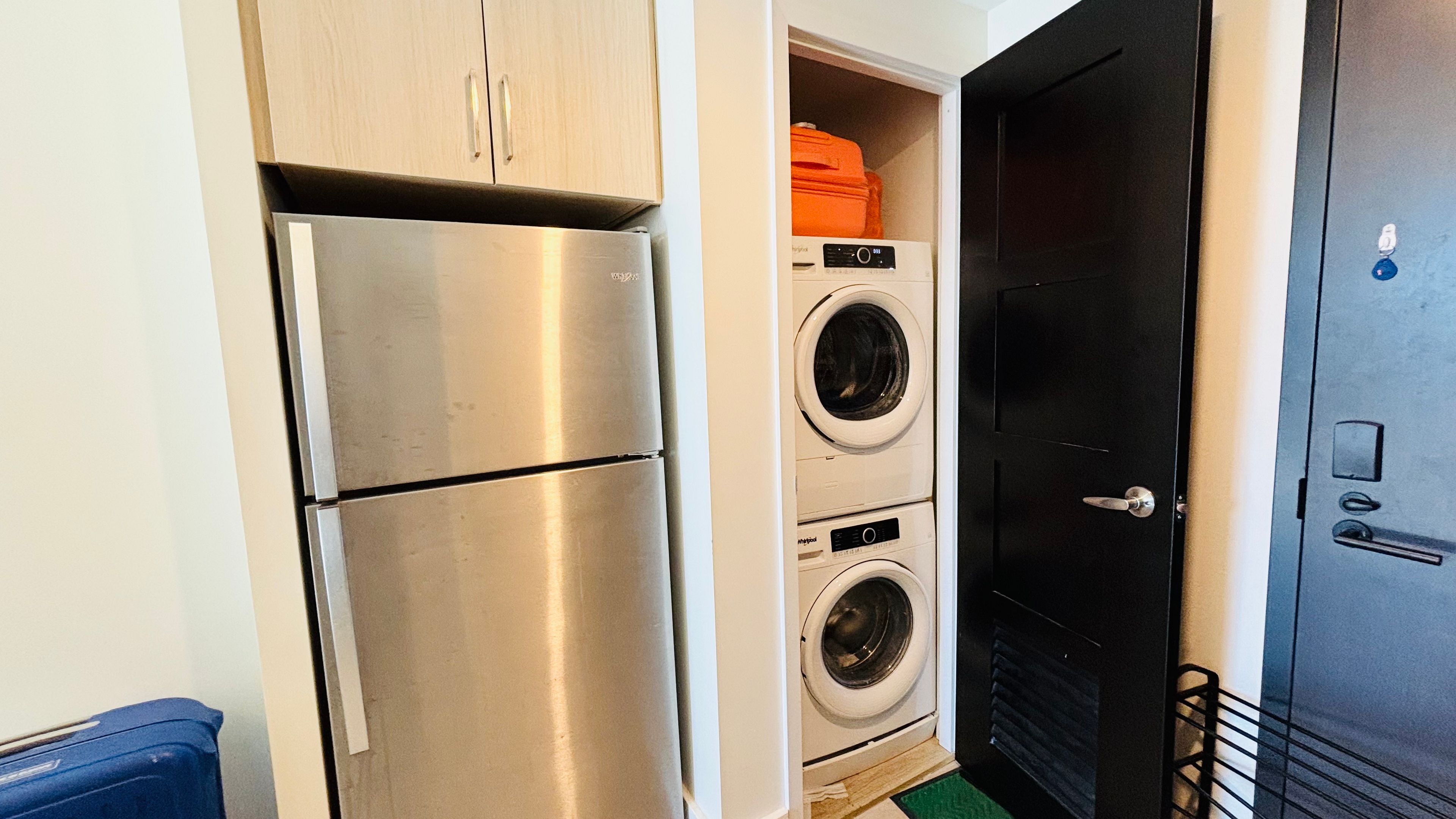 • Modern kitchen with stainless steel appliances and open-concept layout.