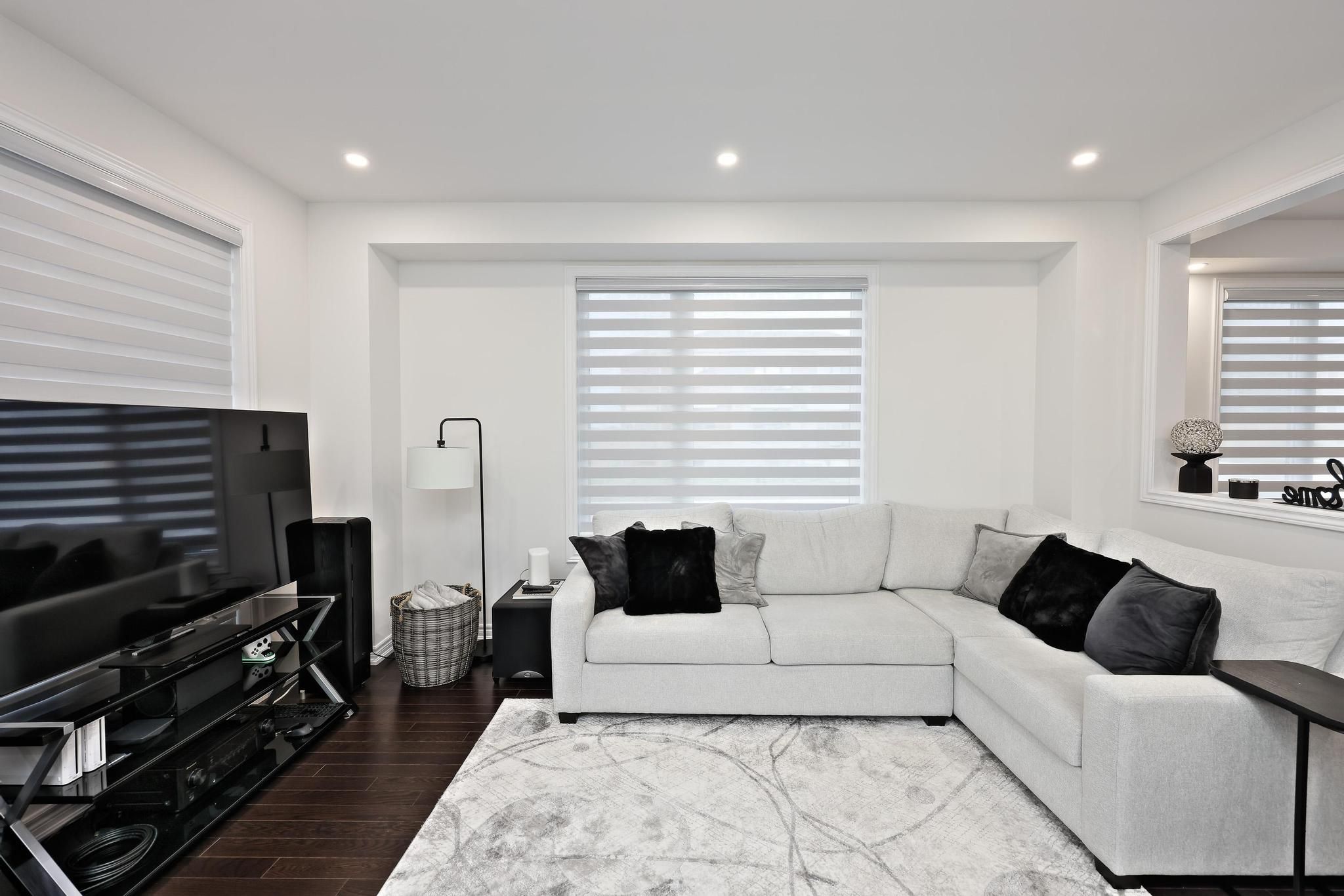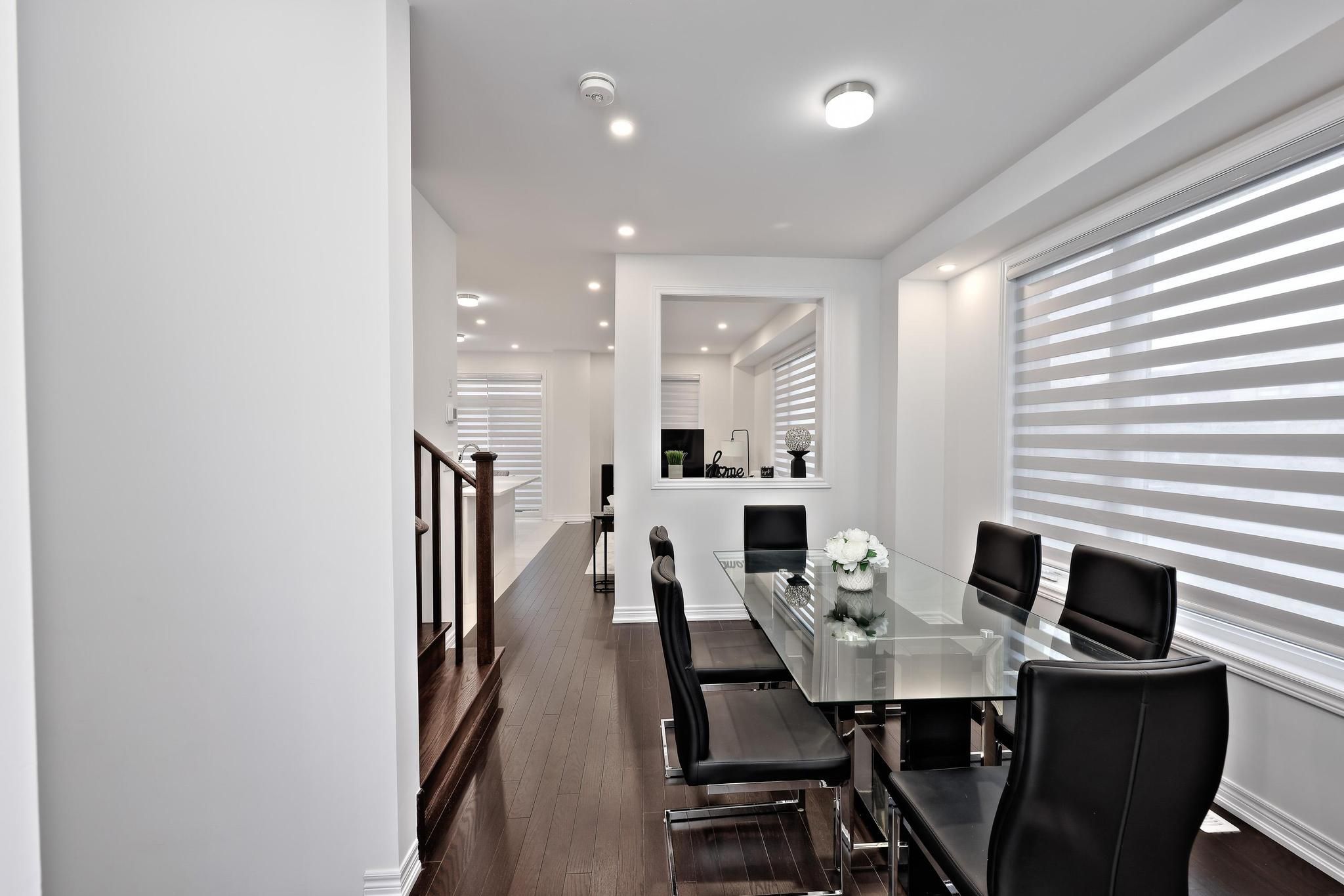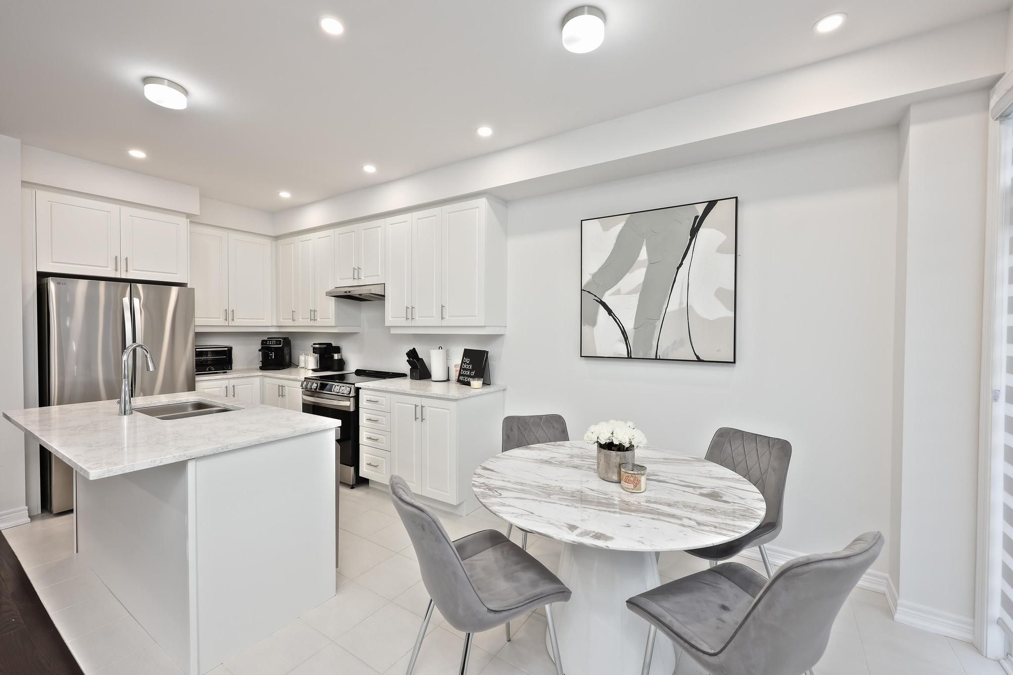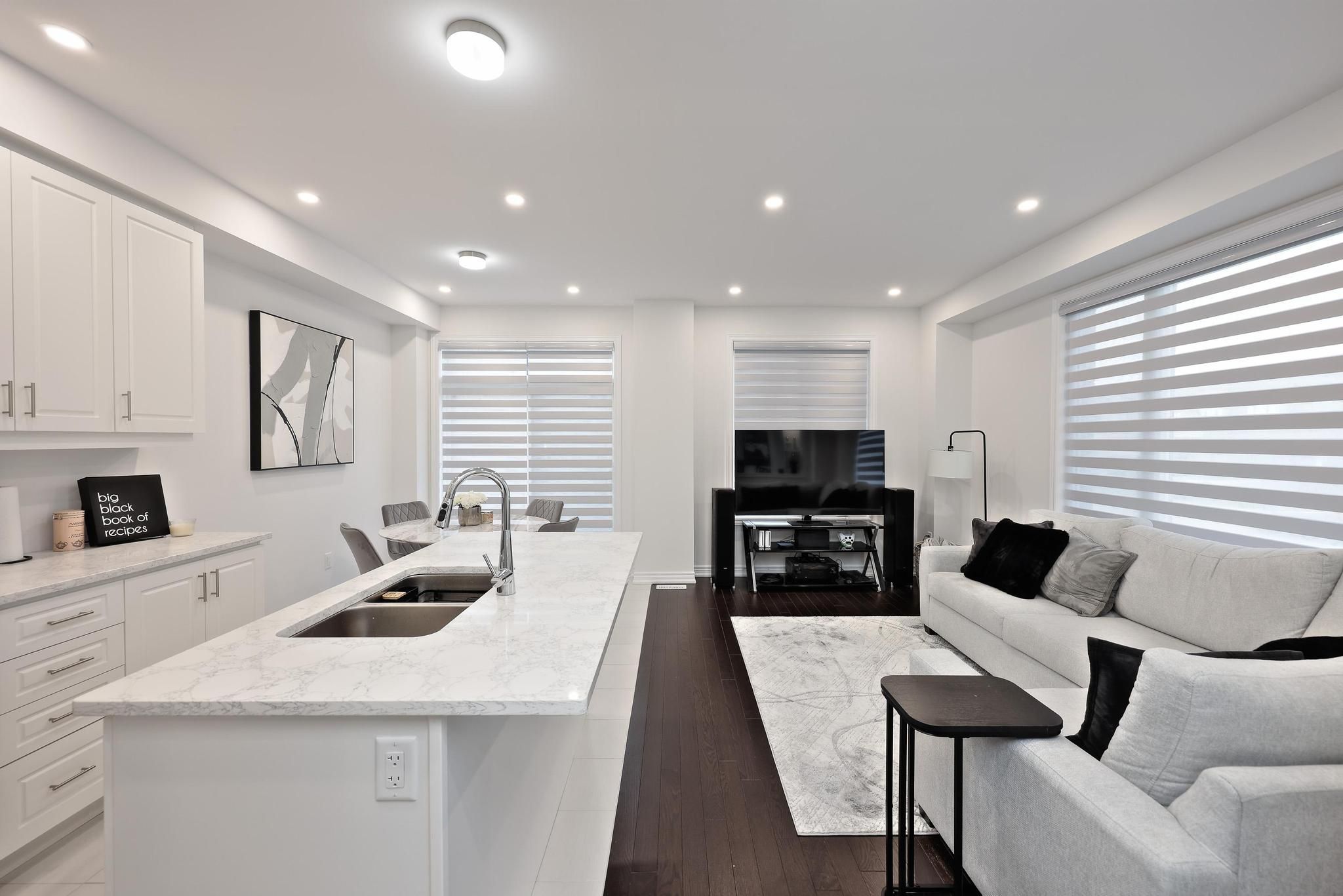 Welcome to 145 fenchurch manor, an exquisite end-unit townhouse nestled on a prime corner lot in barrie. This beautifully upgraded home features stunning stone detailing and modern grey brick, enhancing its curb appeal. With an abundance of oversized windows, the interior is flooded with natural light, highlighting the elegant dark hardwood floors throughout. Step inside to discover a thoughtfully designed open-concept floor plan that seamlessly integrates the kitchen, breakfast area, living room, and dining room perfect for both relaxation and entertaining. The main floor boasts 9-foot smooth ceilings and stylish pot lights, creating a contemporary ambiance. The upgraded kitchen is a chef's dream, featuring a upgraded quartz countertop and island with an extended breakfast bar, complemented by brand new lg stainless steel appliances & under mount lighting. The inviting eating area flows seamlessly to a spacious backyard, perfect for outdoor gatherings. Upstairs, youll find three generously sized bedrooms, along with convenient second-floor laundry. The primary suite is a luxurious retreat, featuring a 3-piece ensuite bath with an upgraded raised-height quartz countertop, a sleek tiled glass shower, and a walk-in closet with picturesque windows that offer lovely views. The second bedroom is versatile, easily serving as a guest room or home office, while the third bedroom comfortably accommodates a queen-size bed and includes a walk-in closet. The modern 4-piece second-floor bathroom boasts stylish black tiles and a soothing waterfall shower head, adding a touch of sophistication. Location couldn't be better just minutes from downtown barrie's waterfront, you'll have access to a wealth of dining, shopping, and other amenities. Families will appreciate the proximity to several schools, friday harbour, and easy access to highway 400. Dont miss this opportunity to own a stunning townhouse in one of barries most desirable areas! Fence being installed soon!