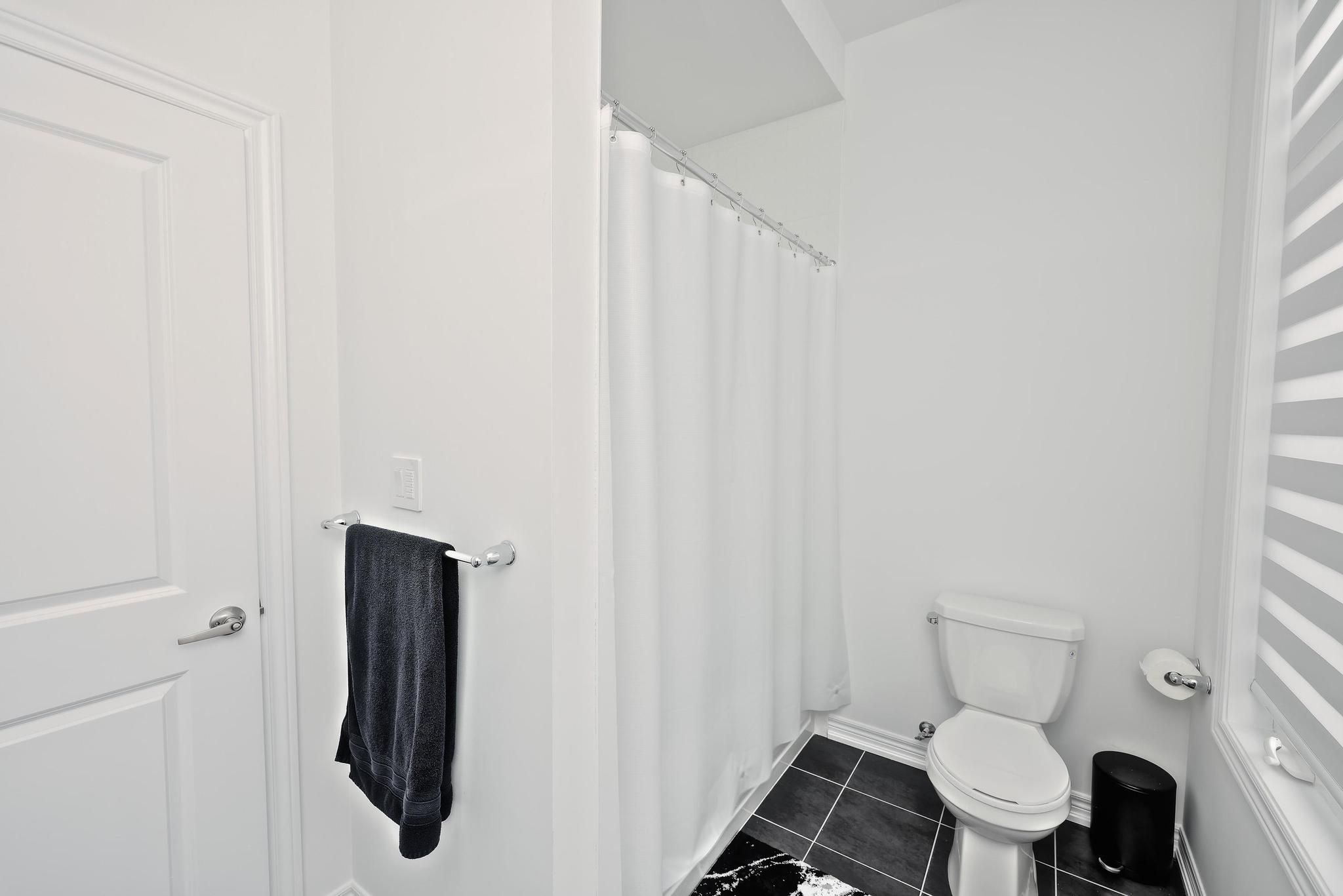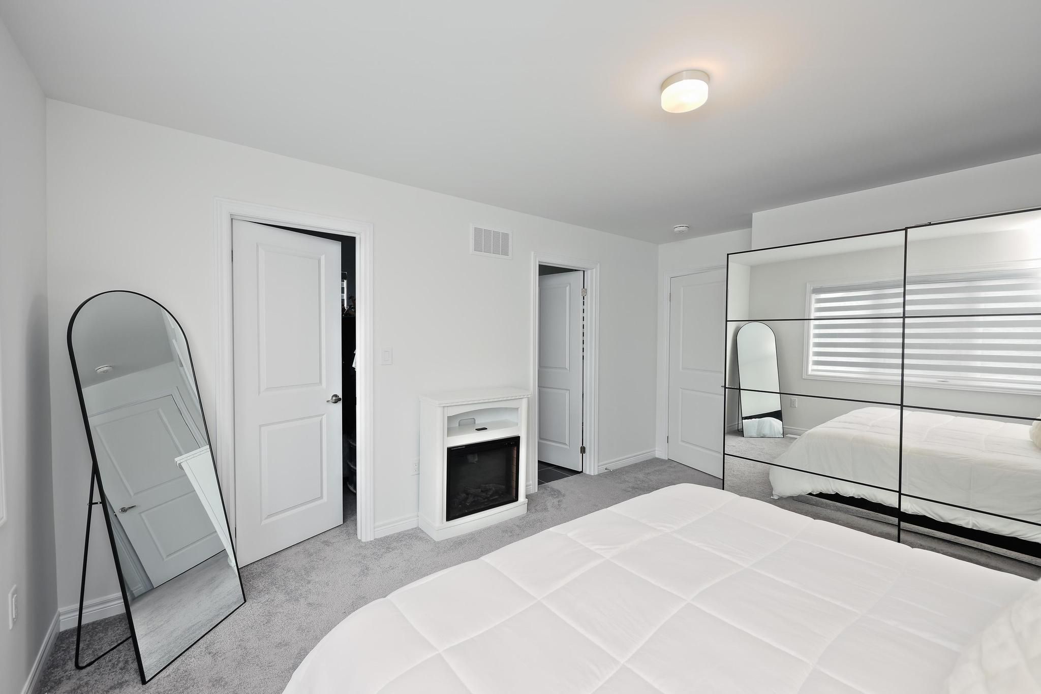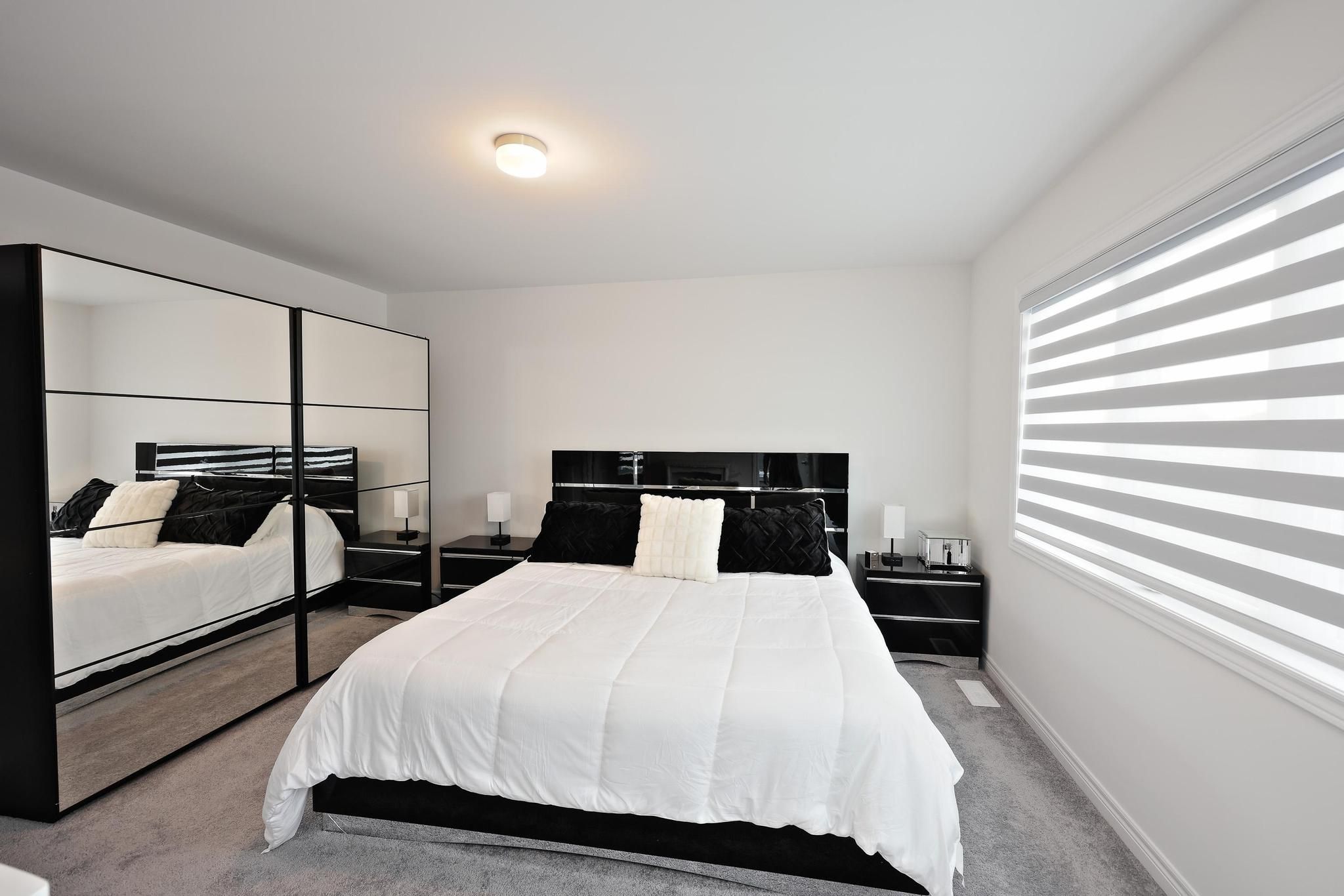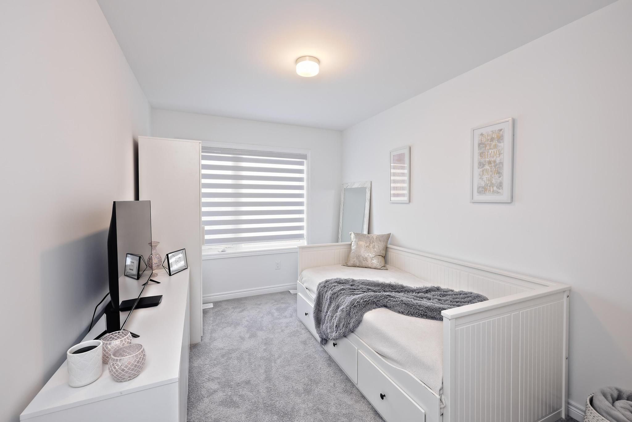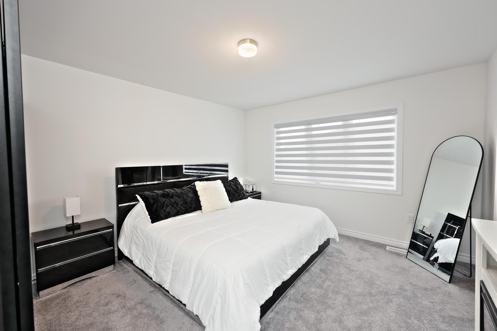 Welcome to 145 fenchurch manor, an exquisite end-unit townhouse nestled on a prime corner lot in barrie. This beautifully upgraded home features stunning stone detailing and modern grey brick, enhancing its curb appeal. With an abundance of oversized windows, the interior is flooded with natural light, highlighting the elegant dark hardwood floors throughout. Step inside to discover a thoughtfully designed open-concept floor plan that seamlessly integrates the kitchen, breakfast area, living room, and dining room perfect for both relaxation and entertaining. The main floor boasts 9-foot smooth ceilings and stylish pot lights, creating a contemporary ambiance. The upgraded kitchen is a chef's dream, featuring a upgraded quartz countertop and island with an extended breakfast bar, complemented by brand new lg stainless steel appliances & under mount lighting. The inviting eating area flows seamlessly to a spacious backyard, perfect for outdoor gatherings. Upstairs, youll find three generously sized bedrooms, along with convenient second-floor laundry. The primary suite is a luxurious retreat, featuring a 3-piece ensuite bath with an upgraded raised-height quartz countertop, a sleek tiled glass shower, and a walk-in closet with picturesque windows that offer lovely views. The second bedroom is versatile, easily serving as a guest room or home office, while the third bedroom comfortably accommodates a queen-size bed and includes a walk-in closet. The modern 4-piece second-floor bathroom boasts stylish black tiles and a soothing waterfall shower head, adding a touch of sophistication. Location couldn't be better just minutes from downtown barrie's waterfront, you'll have access to a wealth of dining, shopping, and other amenities. Families will appreciate the proximity to several schools, friday harbour, and easy access to highway 400. Dont miss this opportunity to own a stunning townhouse in one of barries most desirable areas! Fence being installed soon!
