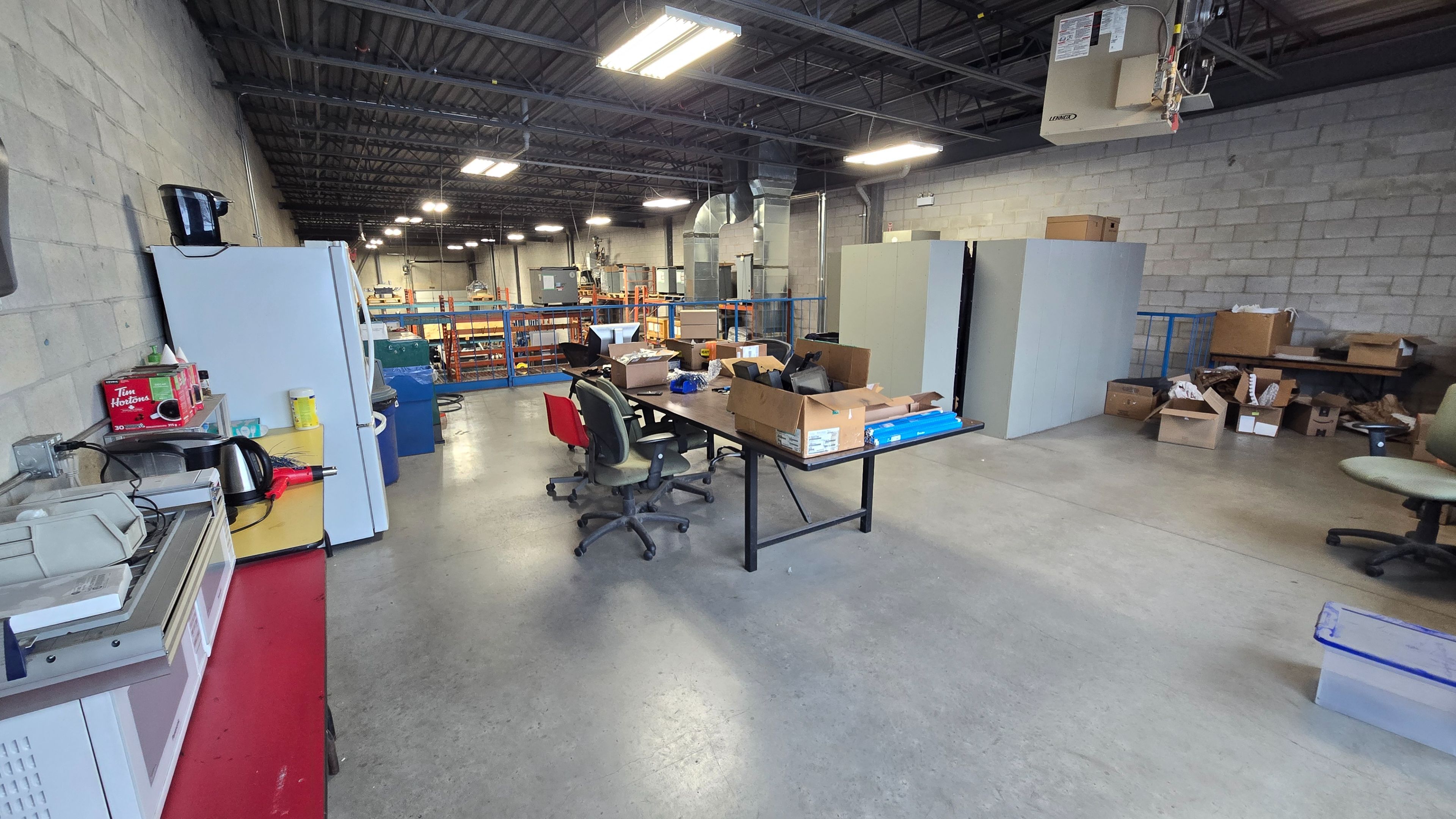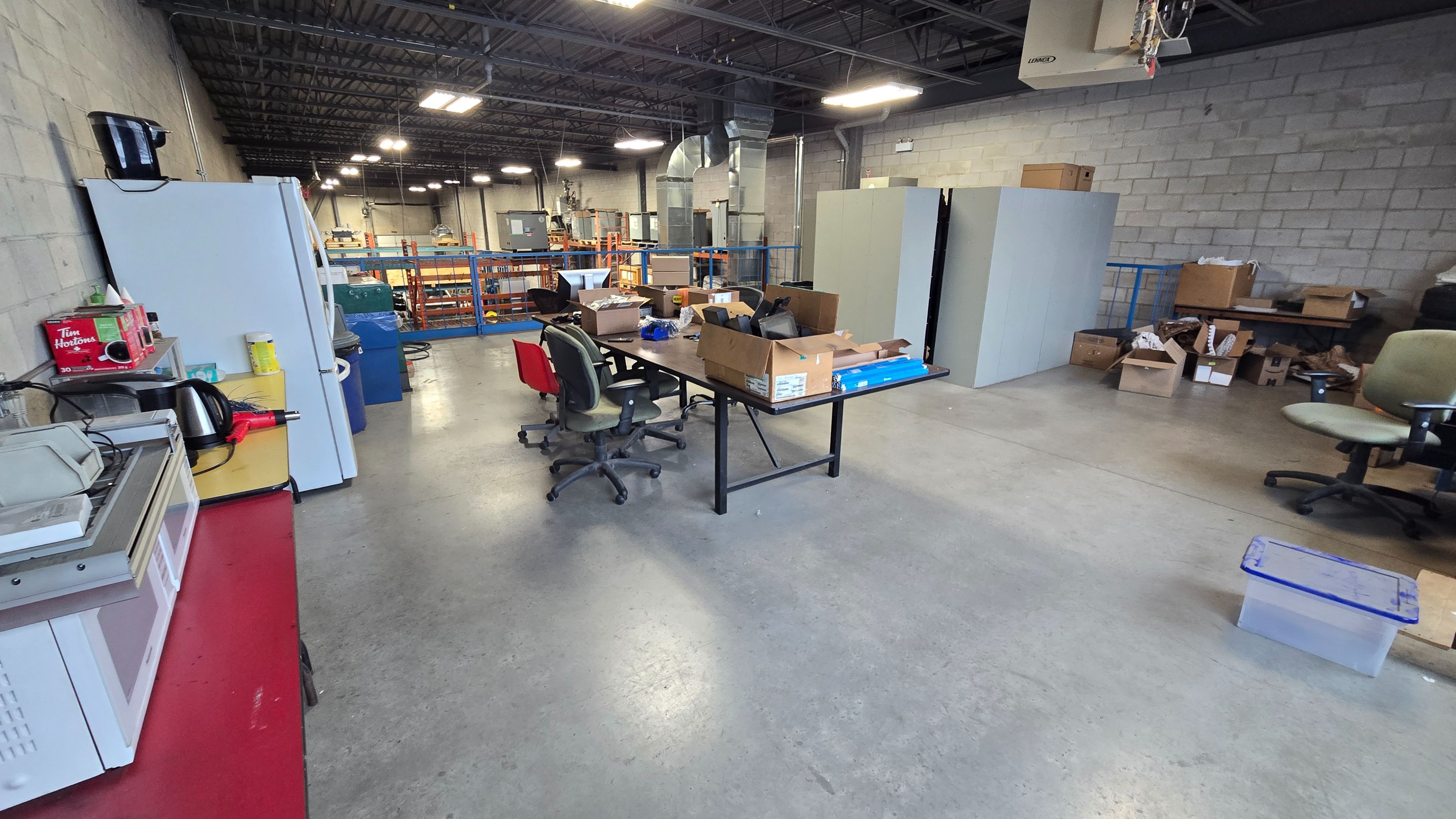 Amazing unit is a high traffic building. 25ft clear height. 5181 sq ft main floor with 1038 sq ft mezzanine . 1 drive in shipping door good shipping/transportation and ample on site parking. Air conditioned office area and 200 amp service. Zoning allows for many uses including; warehousing, light manufacturing, and distribution.