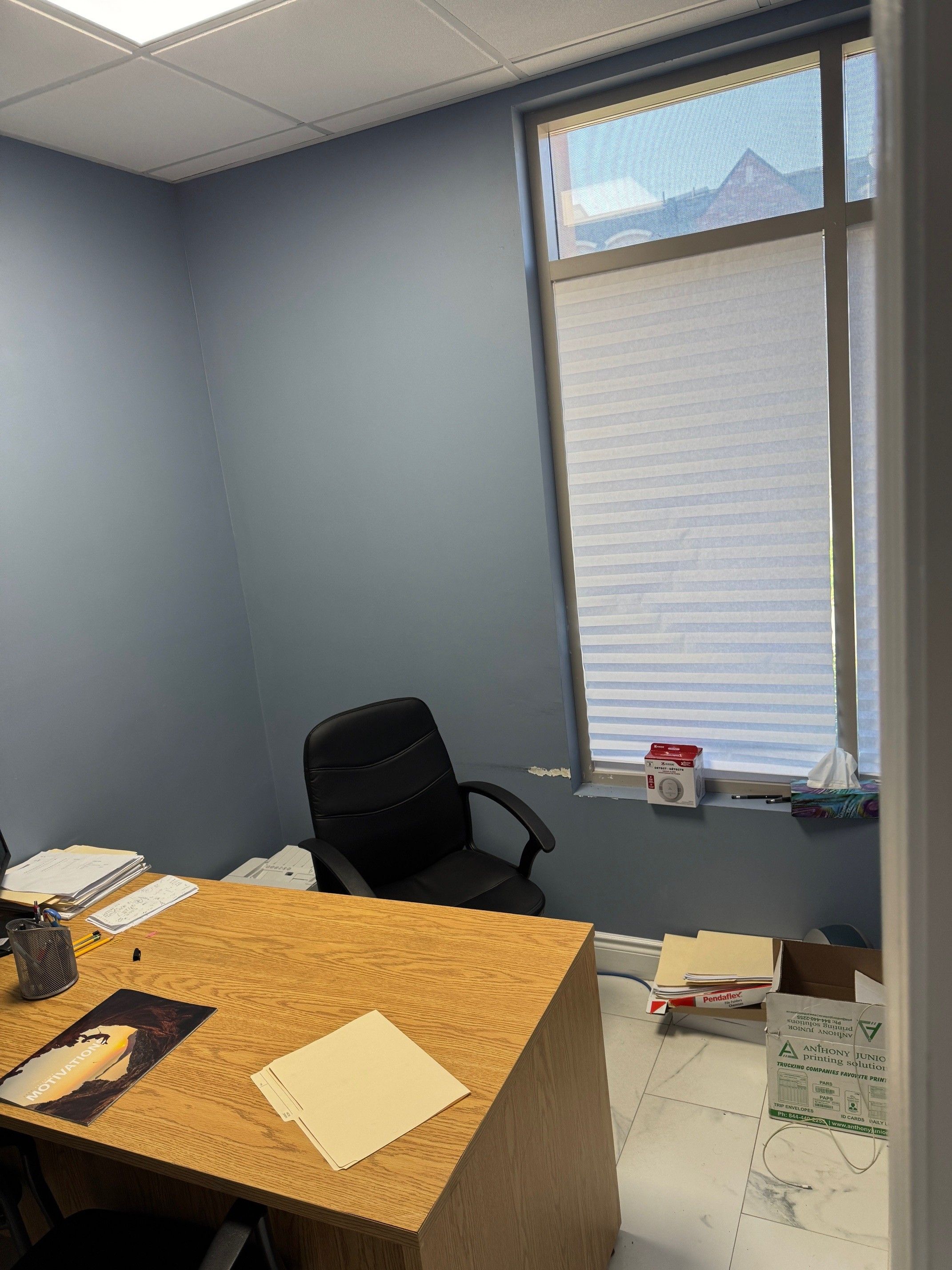 • Includes three private offices and a reception area.