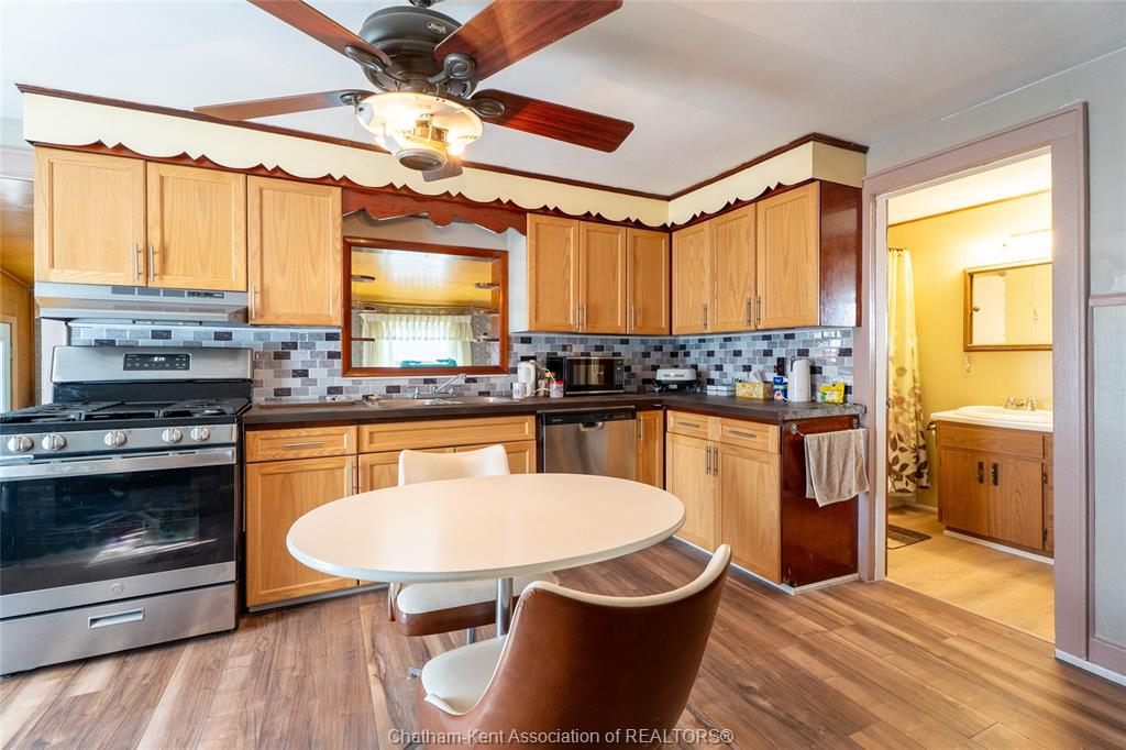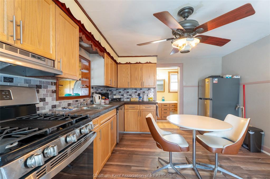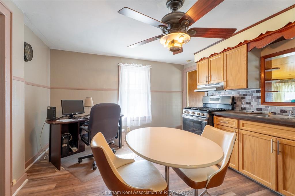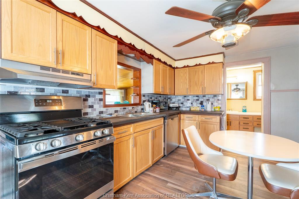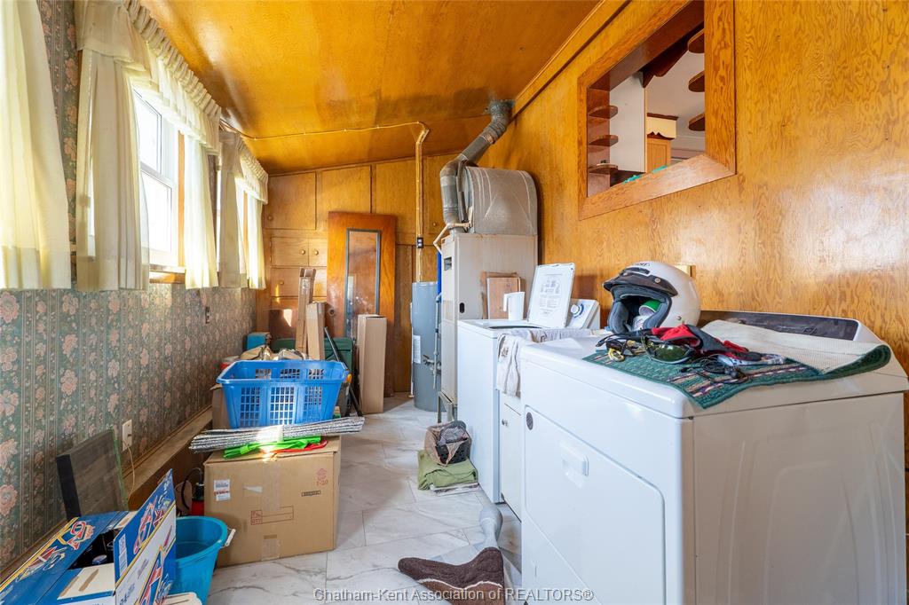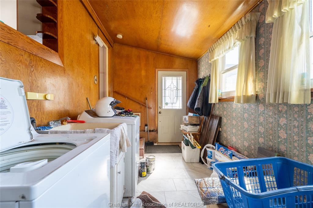 Charming and affordable 1 3/4-storey home on a spacious lot! This 2-bedroom, 1-bathroom home has seen many recent updates and is move-in ready. Recent improvements include a brand-new asphalt and cement driveway, new garage door and windows, all new flooring in the kitchen, bathroom, and mud room, as well updated kitchen cabinets, backsplash, and countertops. The bathroom has also been refreshed with a new tub, tub surround, and toilet. Additional upgrades include a brand-new gas dryer, new dishwasher, and fresh paint throughout. Features include updated windows (2013) and 100-amp breakers. The fully fenced yard is beautifully landscaped, a true gardener’s dream. The oversized lot offers plenty of outdoor space, complemented by a detached 1. 5-car garage with an attached carport and additional storage area, providing ample room for vehicles, tools, and hobbies. The above-ground pool with deck is currently in working order; however, it is being included in “as is” condition. All appliances are included for added. Located within walking distance to all amenities, as well as wallaceburg district secondary school and the scenic carothers park trail, this property offers both convenience and comfort in a great location.