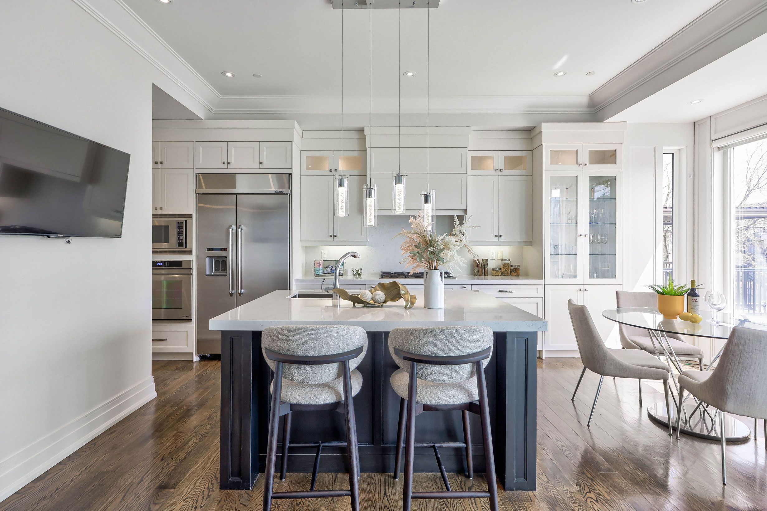 • Spacious chef's dream kitchen with high-end appliances and large island.