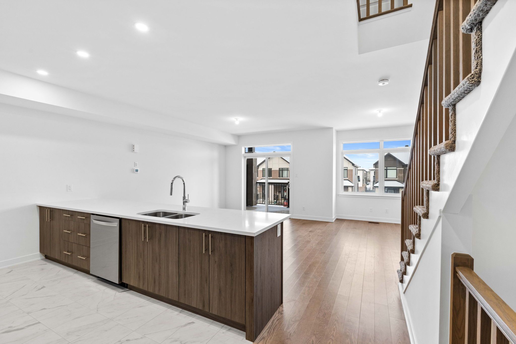 Welcome to 145 lemon leaf lane, an immaculate townhome that offers both style and comfort. With 2 spacious bedrooms and 3 bathrooms, this home has been thoughtfully designed to meet all your needs. Upon entering, you're greeted by a grand yet cozy foyer with a welcoming glass front door. On the main floor, the luxurious hardwood flooring seamlessly connects the kitchen, dining area, and living room, creating a harmonious open concept flow. Step out onto the charming balcony and enjoy the view. The third floor features two well-appointed bedrooms, including a primary suite with a walk-in closet and a stunning 3-piece ensuite bathroom. Conveniently located just a short walk from leitrim park, shops, and restaurants - this townhome is perfect for a variety of lifestyles.