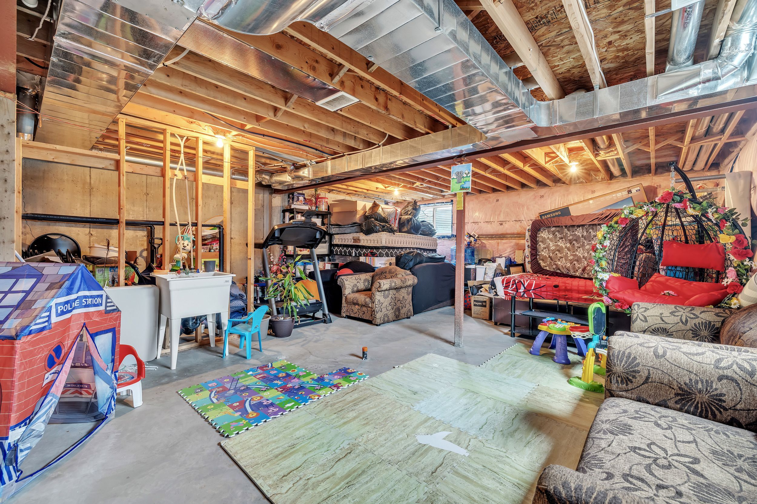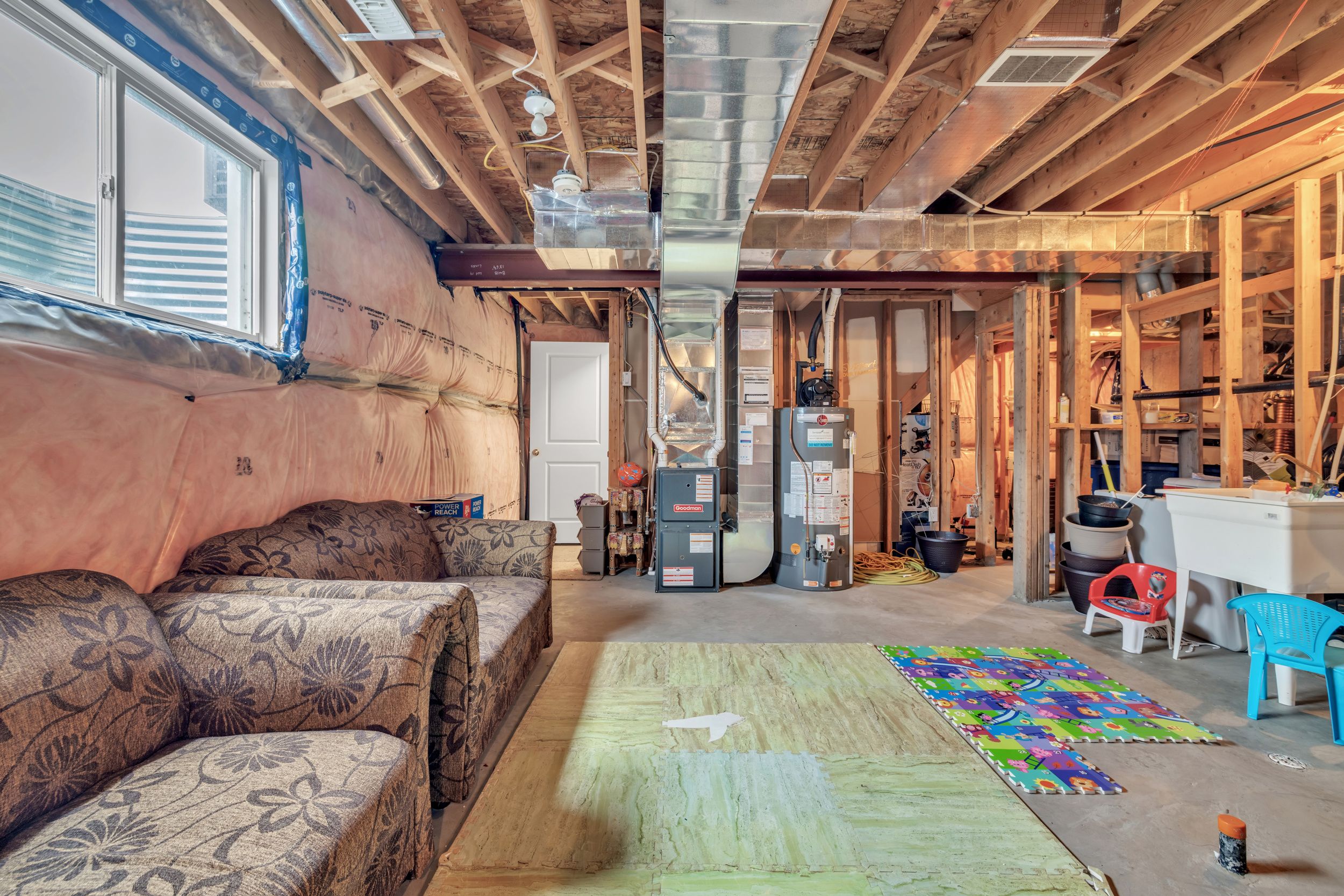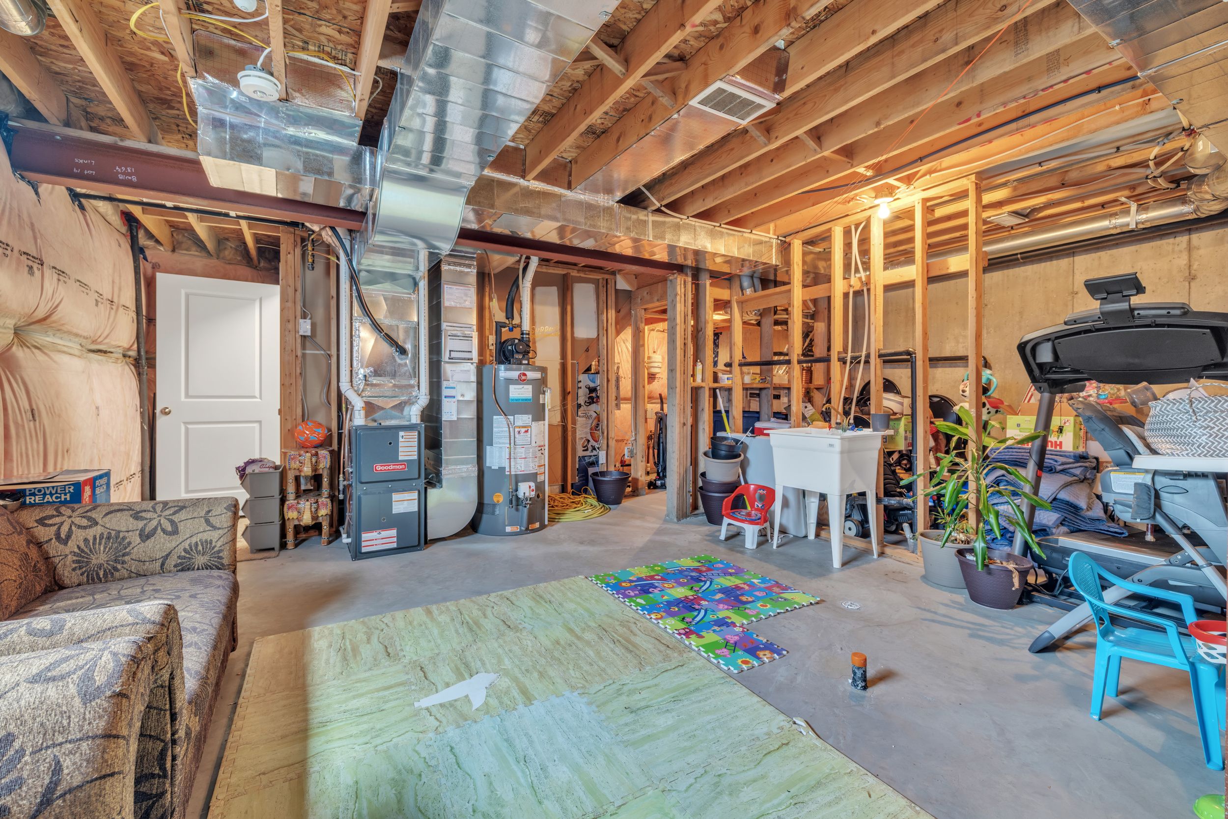 • Unfinished basement ready for custom development to fit your needs.