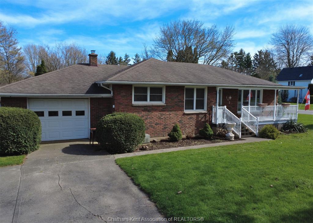 There are locations in small town ontario that hit the mark. Long time residents, high demand when properties come up for sale. 145 main street is this type of property. Large lot with 87 frontage x 140 depth at main and desirable hillsdale. An attractive brick ranch with the benefit of two driveways (one fronting main with garage and the other from hillsdale with the attached carport and brick driveway). Inviting front porch takes advantage of the afternoon sun. 3 bedrooms with hardwood flooring, 3 pc walk-in shower, oak kitchen, separate dining room open to the front living room. Full basement for future finish potential mostly open concept, 2pc bath, laundry and utility rooms. 1209 square feet is a perfect size for retiree's and ridgetown is a popular destination. Morning sun for the rear yard, partially fenced, mature trees for privacy and shade and storage shed. Home is also ideal for the convenient location for university students across the road. Immediate possession is available.