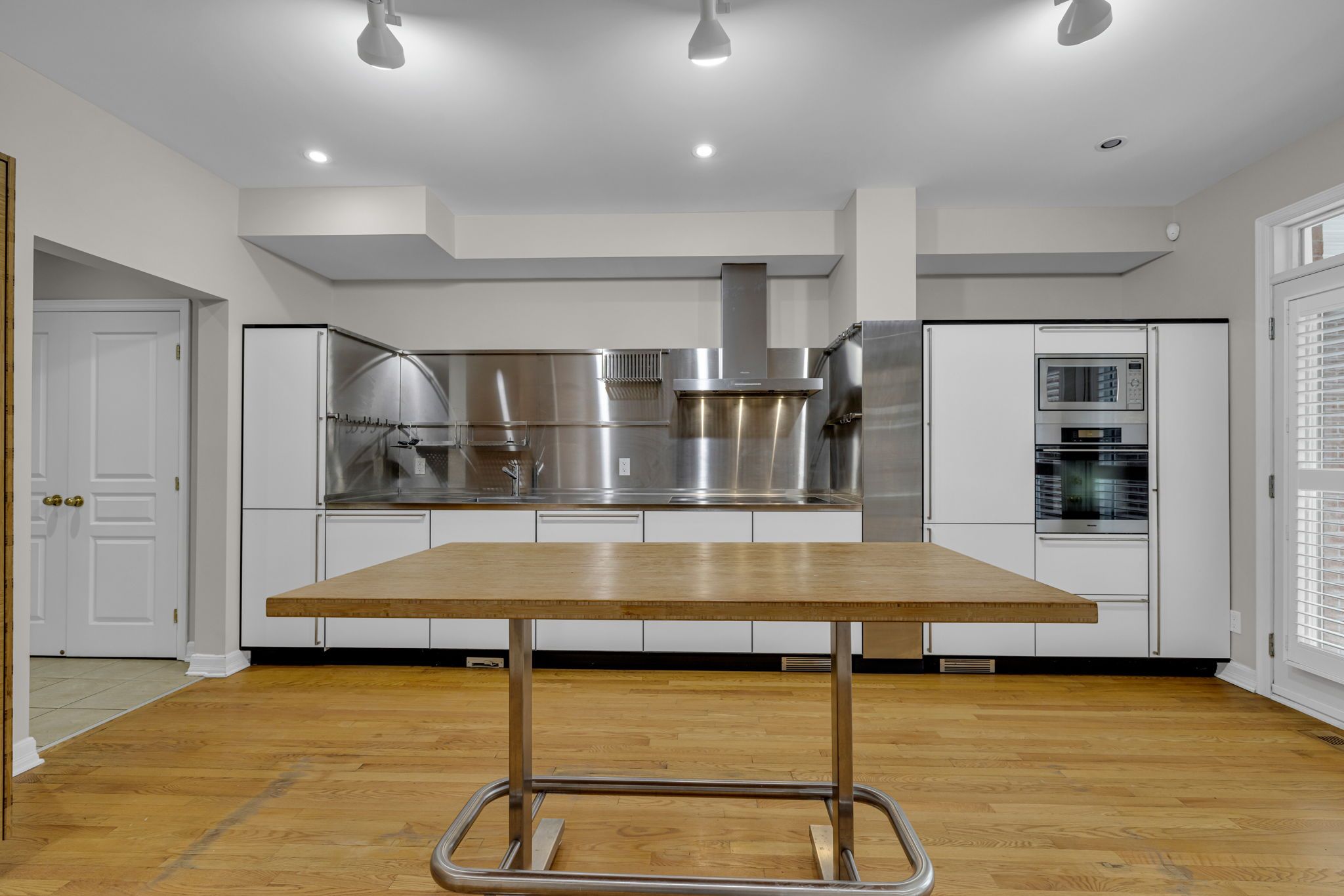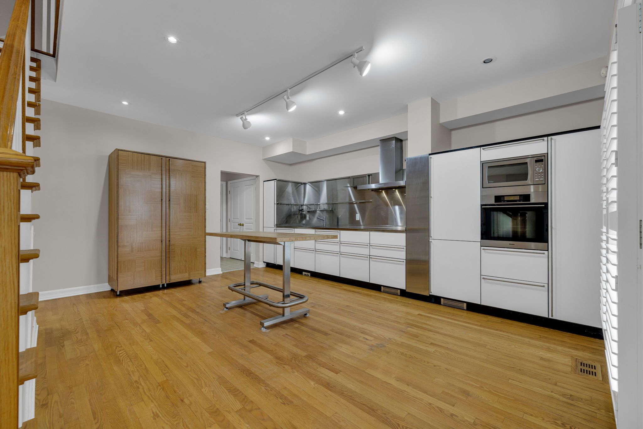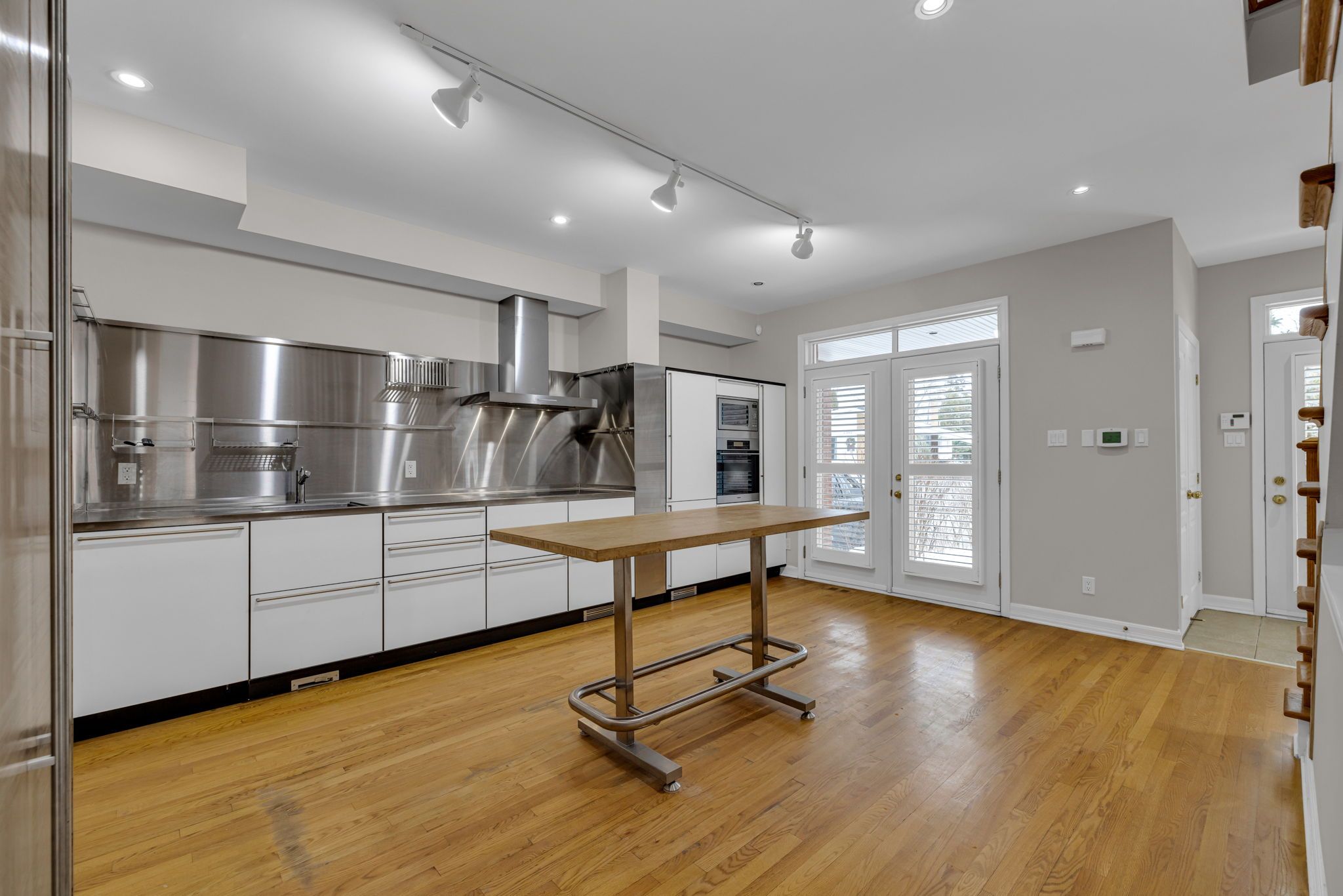 • Renovated kitchen with ample cabinetry and modern stainless steel finishes.